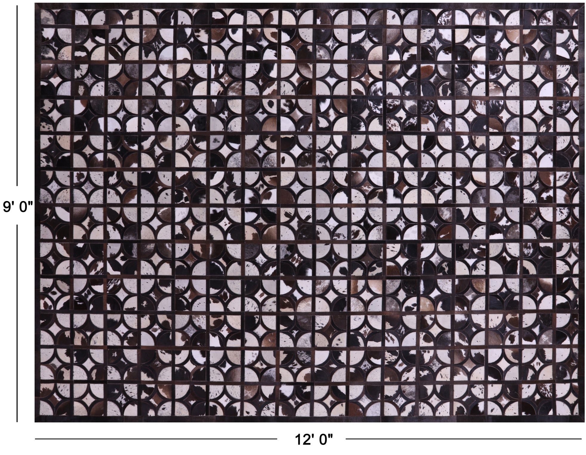 9' 0" X 12' 0" Brown & White Natural Cowhide Hand Stitched Rug - C5744