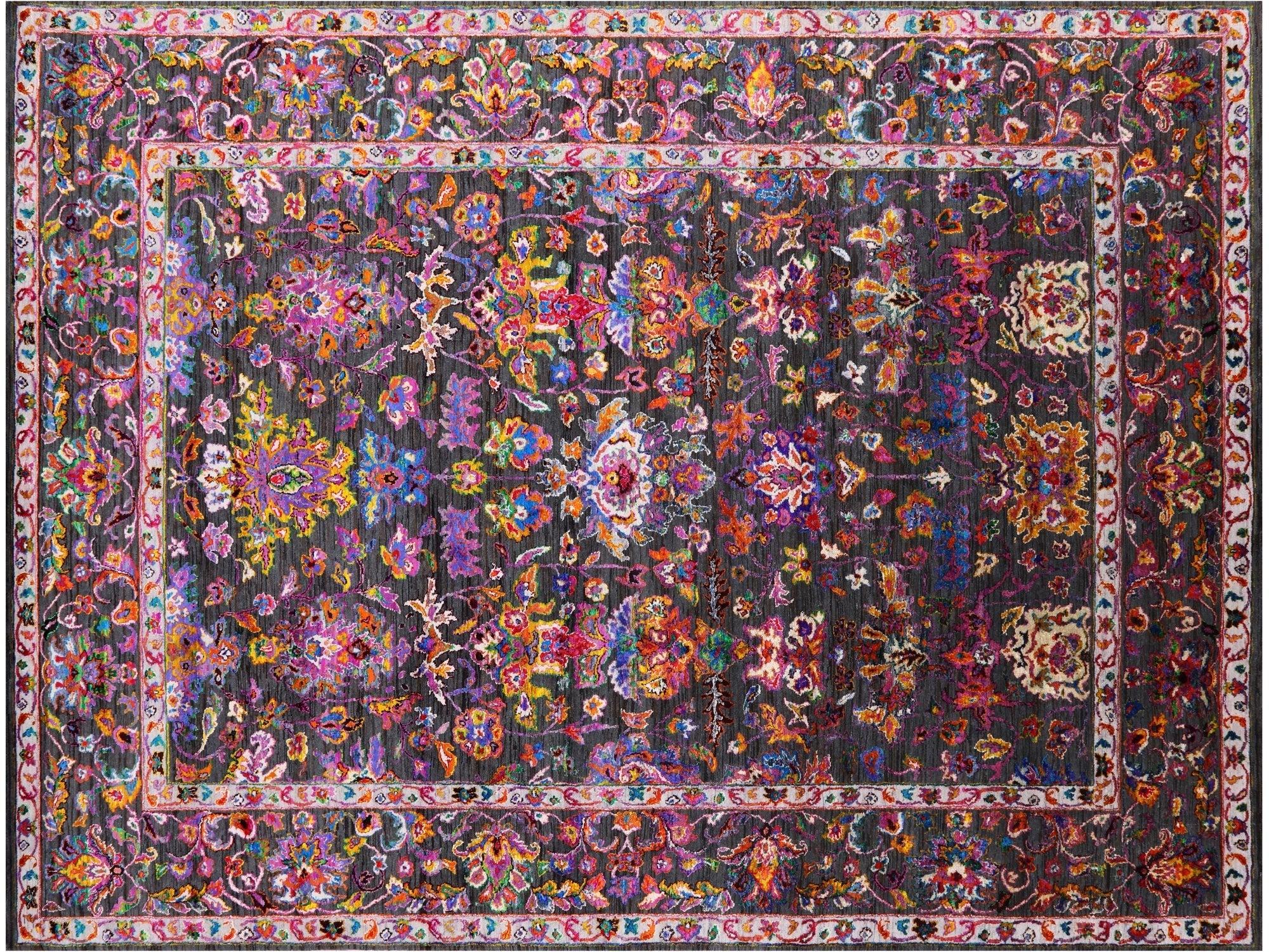 Grey 8' 10" X 11' 10" Wool & Silk Persian Tabriz Hand-Knotted Rug - Q13733