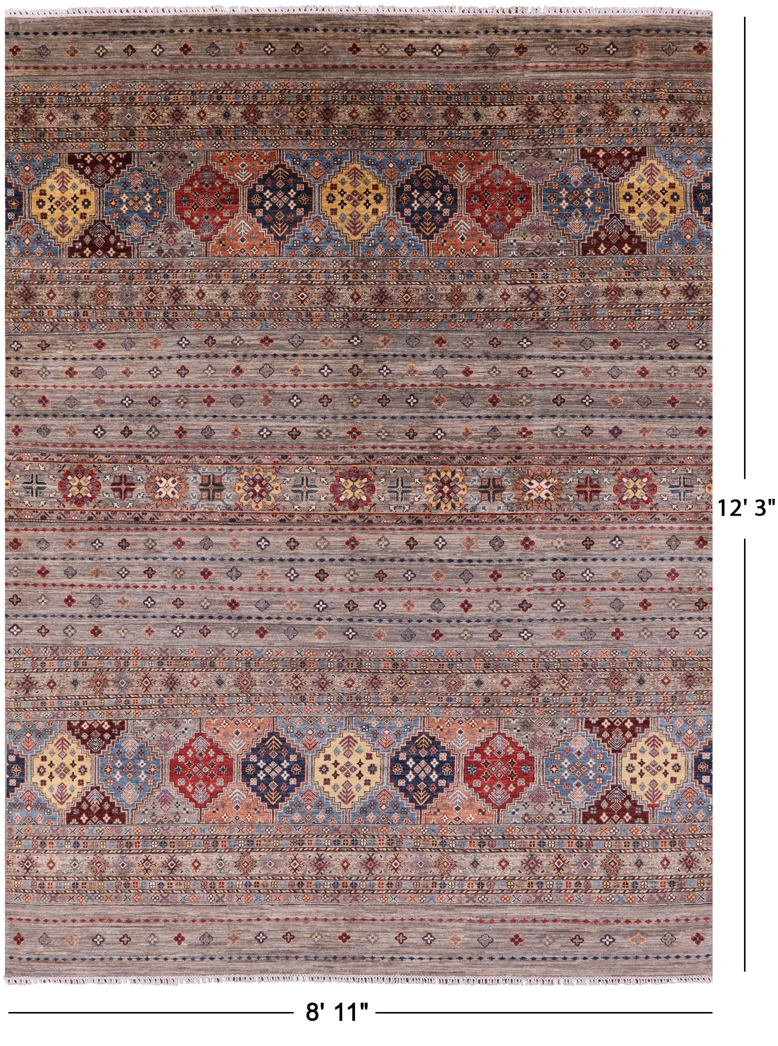8' 11" X 12' 3" Handmade Khorjin Super Kazak Wool Rug - Q11137 is backordered and will ship as soon as it is back in stock.