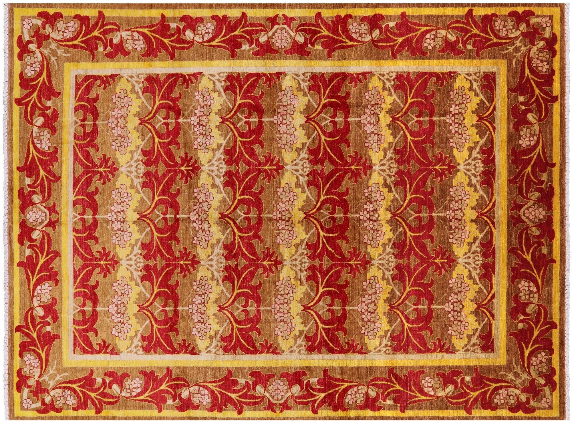 8' 10" X 11' 7" Handmade William Morris Wool Rug - Q1674