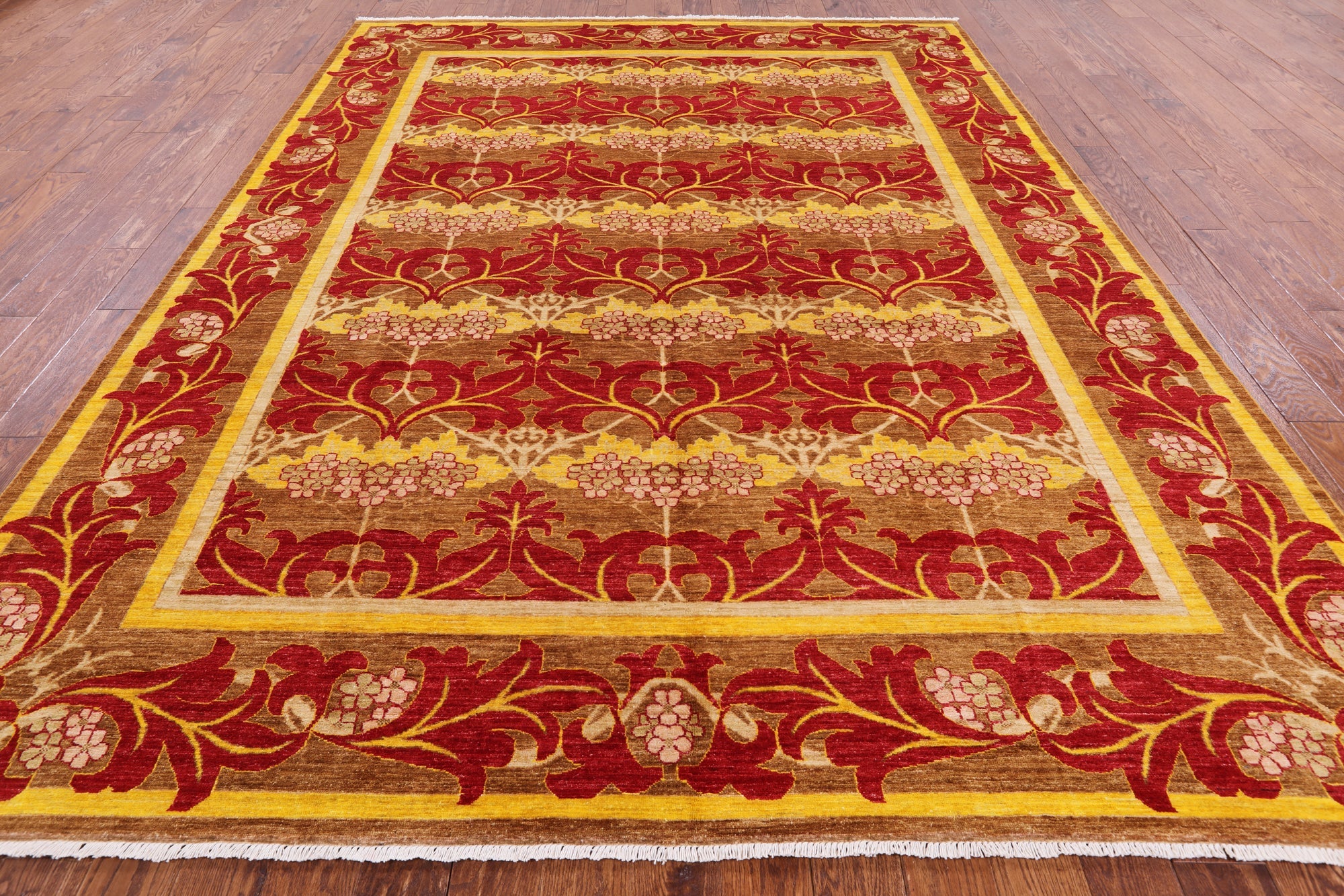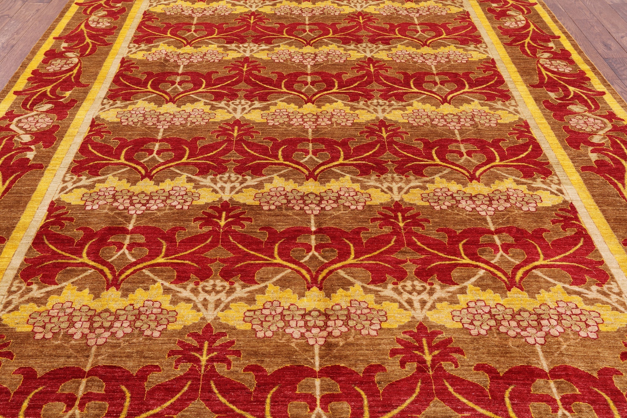 William Morris design are part of arts and crafts movement often including natural forms. These 19th and early 20th century designs are distinctive for their stylized natural forms, their symmetry and their vibrant colors. William Morris patterns are based on nature such thistles, ginkgo leaves, willow trees and flowers. These modern hand knotted rugs are woven with high quality wool, silk or both.