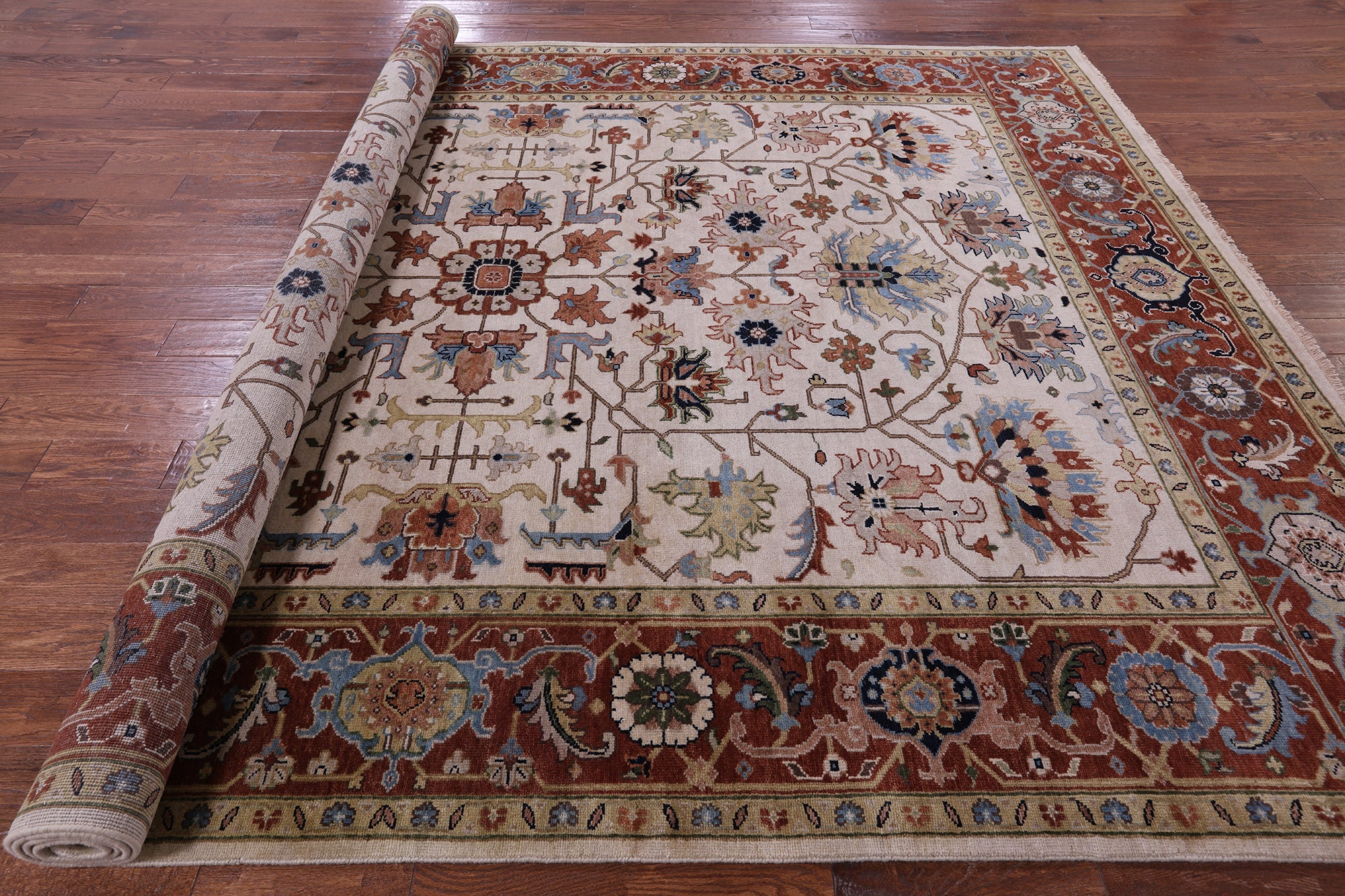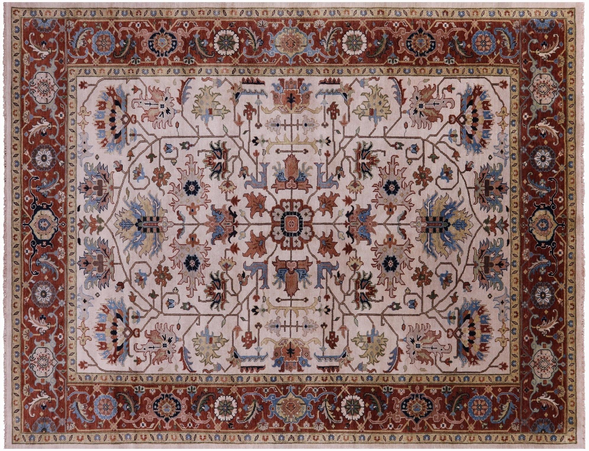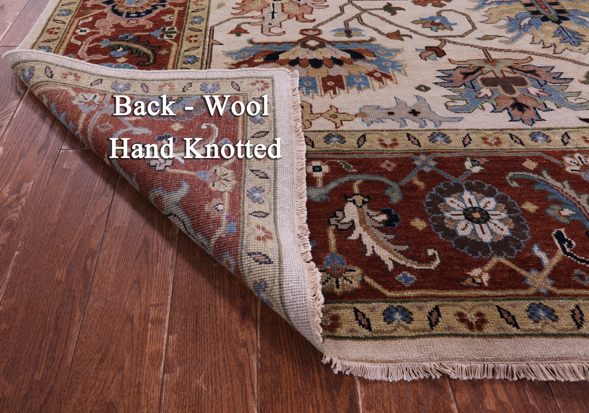 Ivory 8' 11" X 11' 10" Hand Knotted Persian Heriz Serapi Wool Rug - Q22185