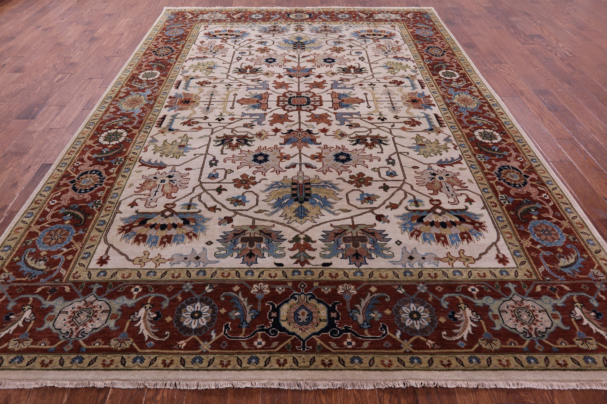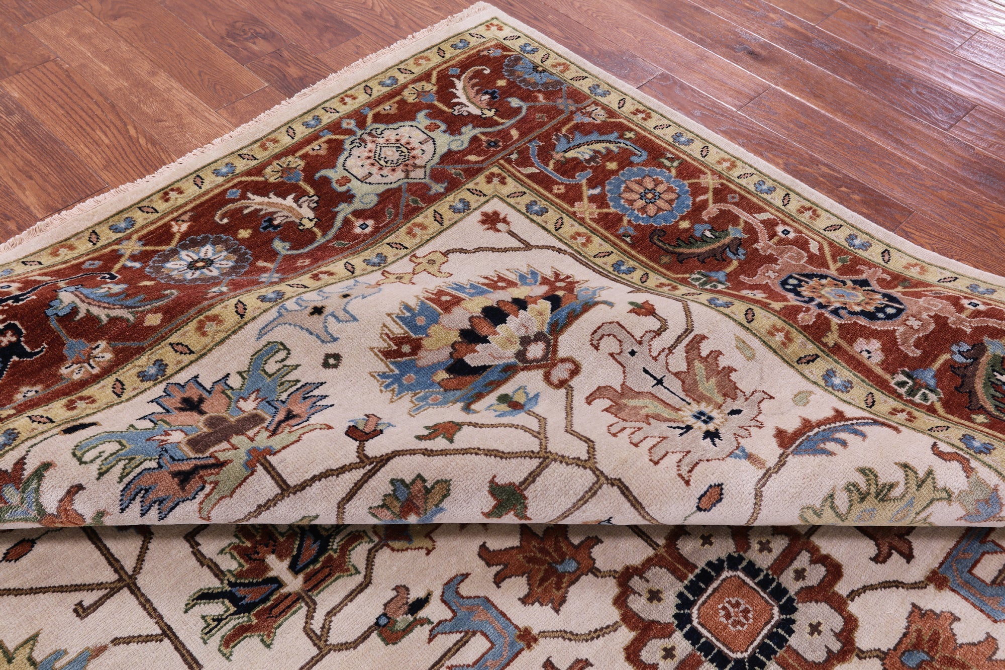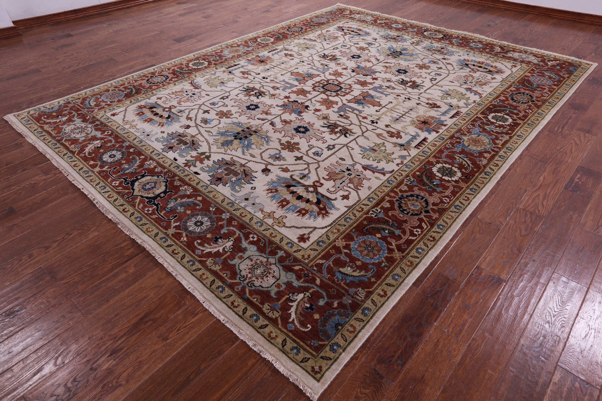 Ivory 8' 11" X 11' 10" Hand Knotted Persian Heriz Serapi Wool Rug - Q22185
