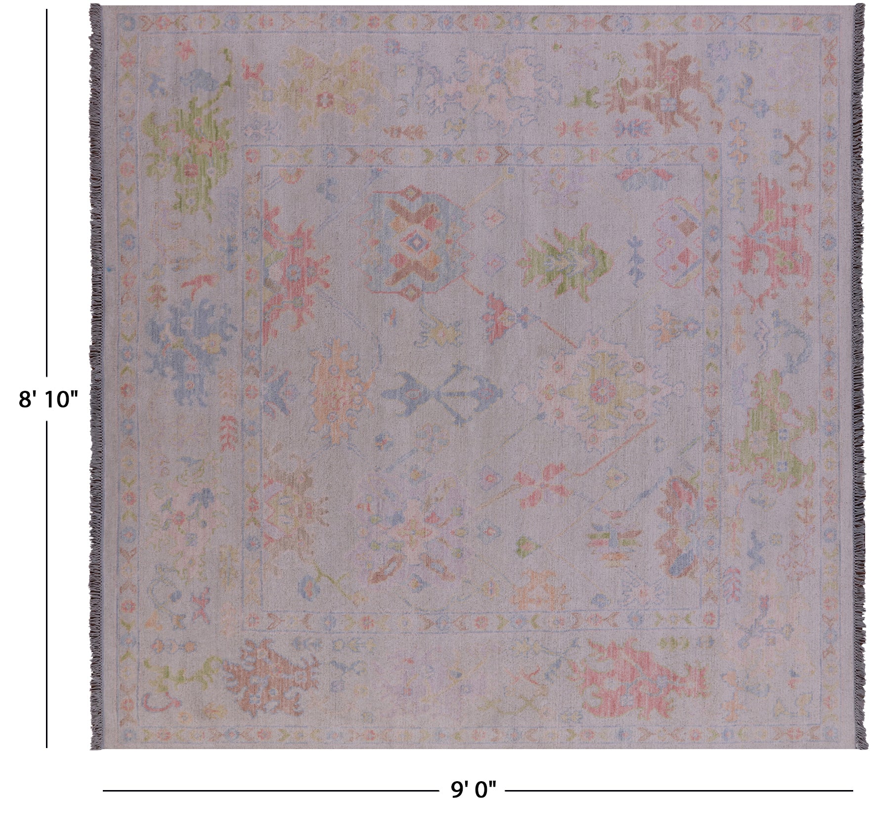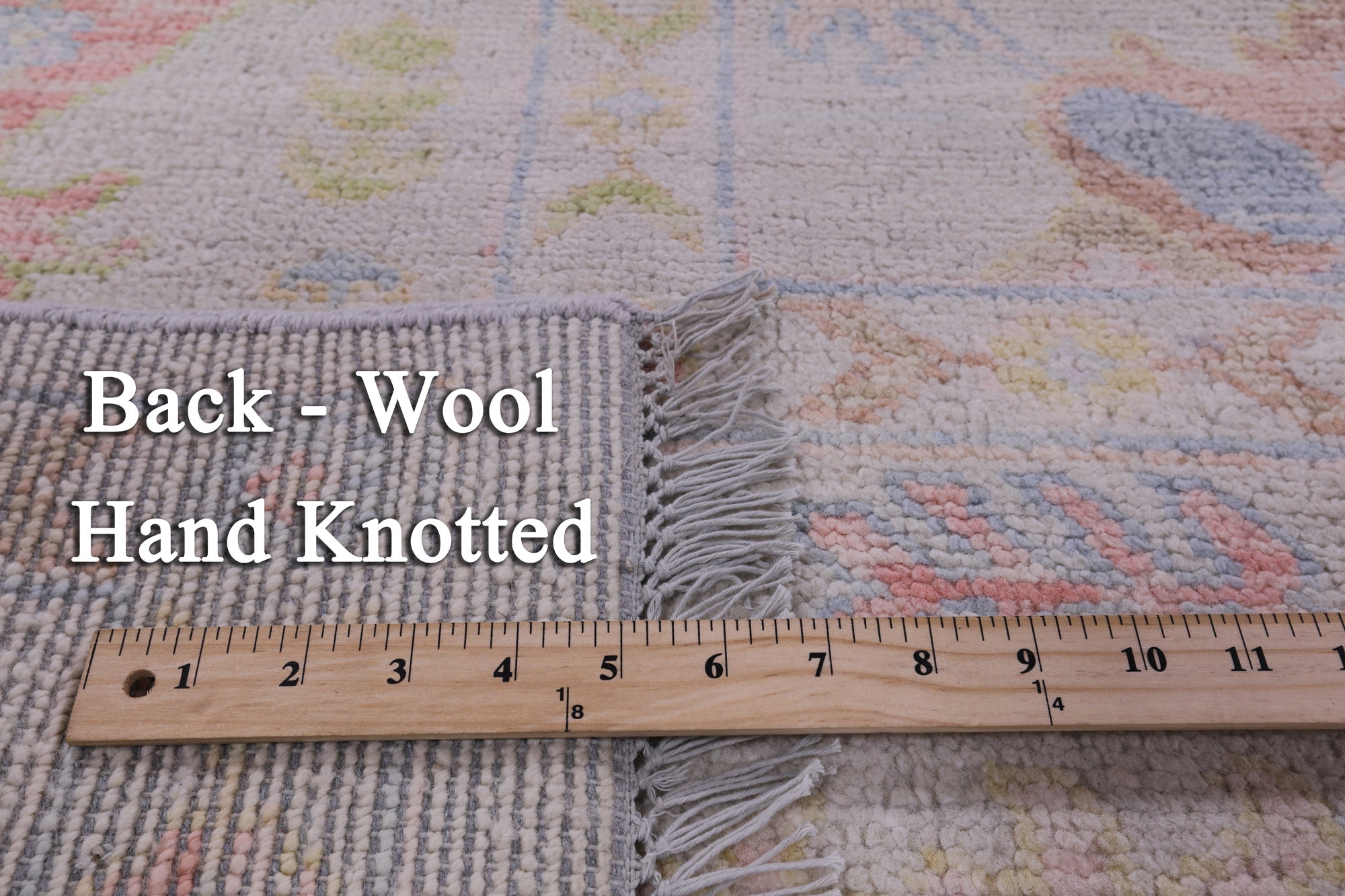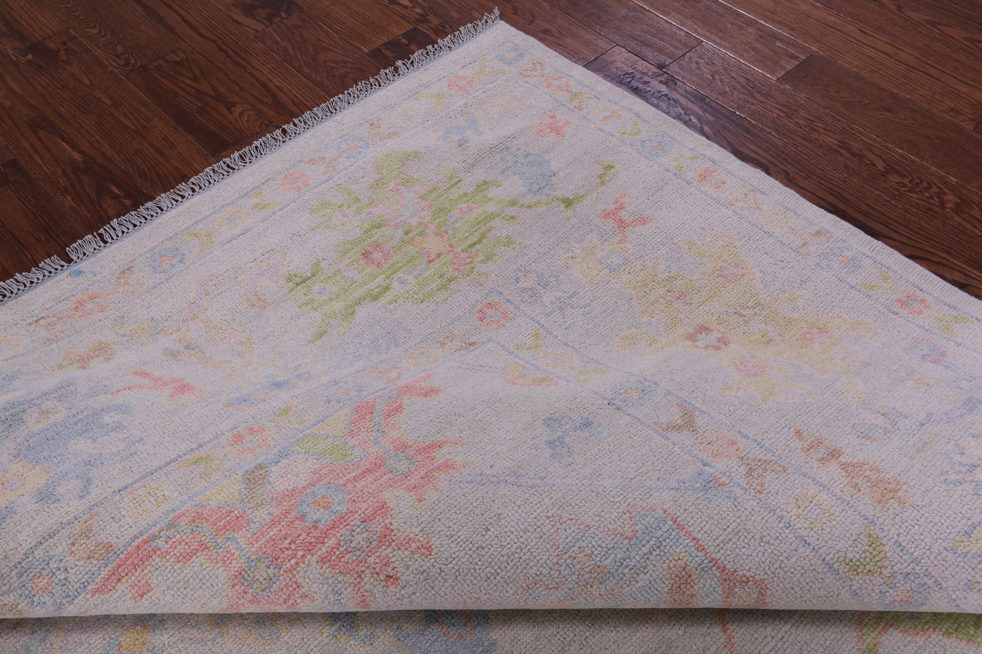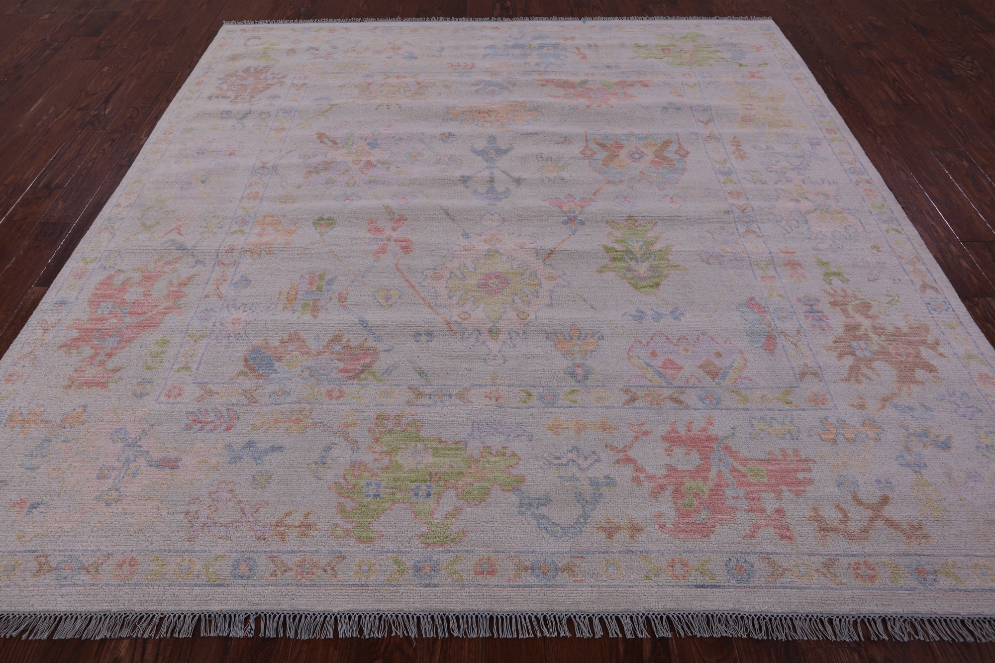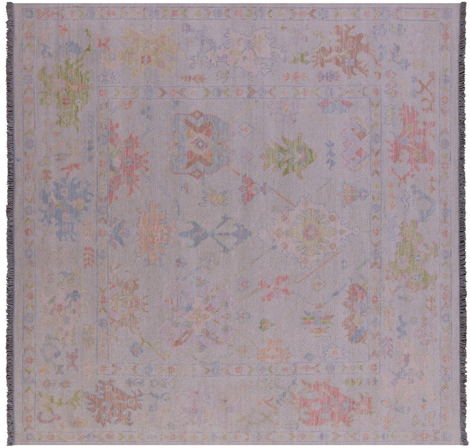 Ivory 9' Square Turkish Angora Oushak Handmade Wool Rug - Q21307