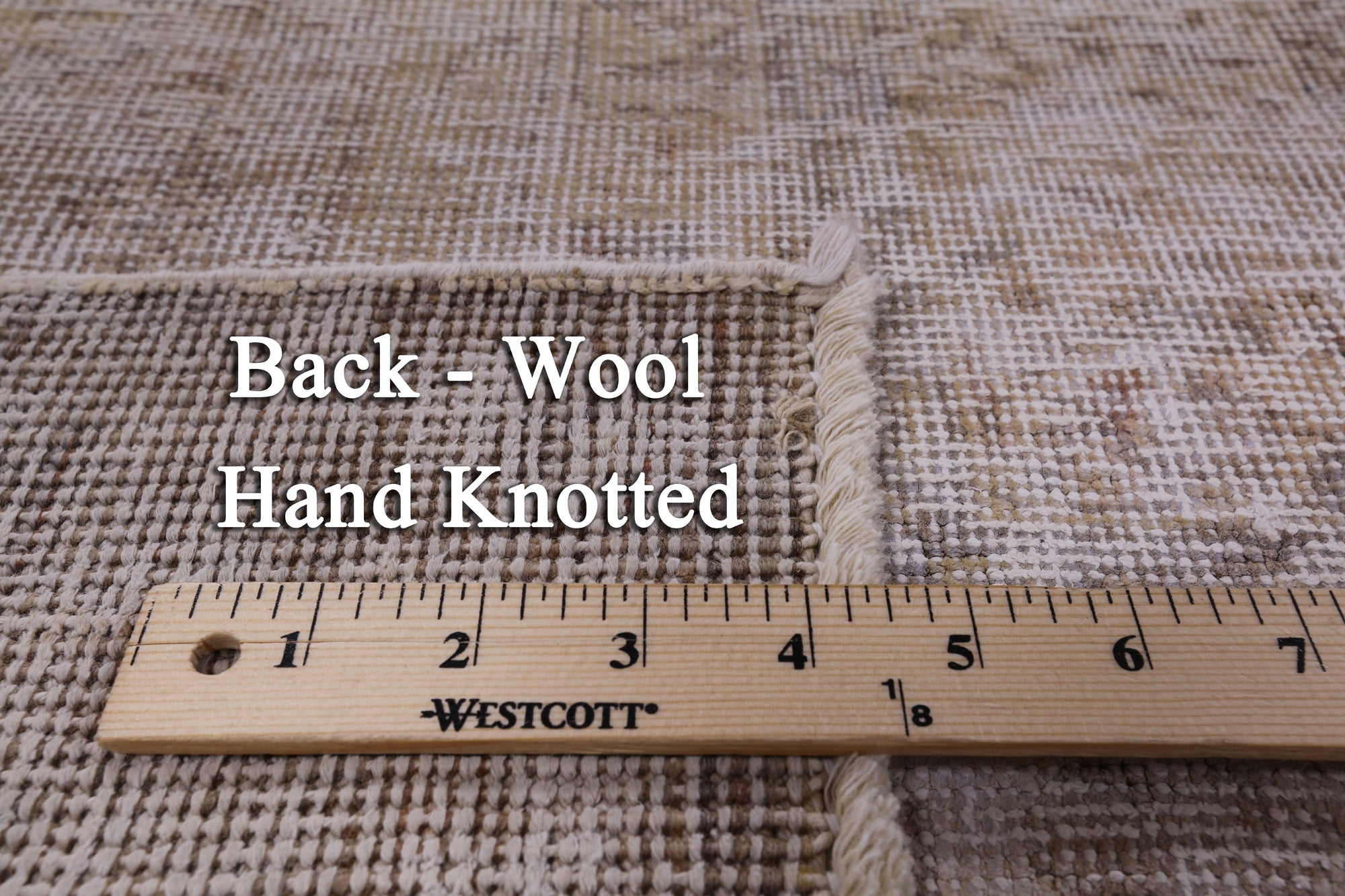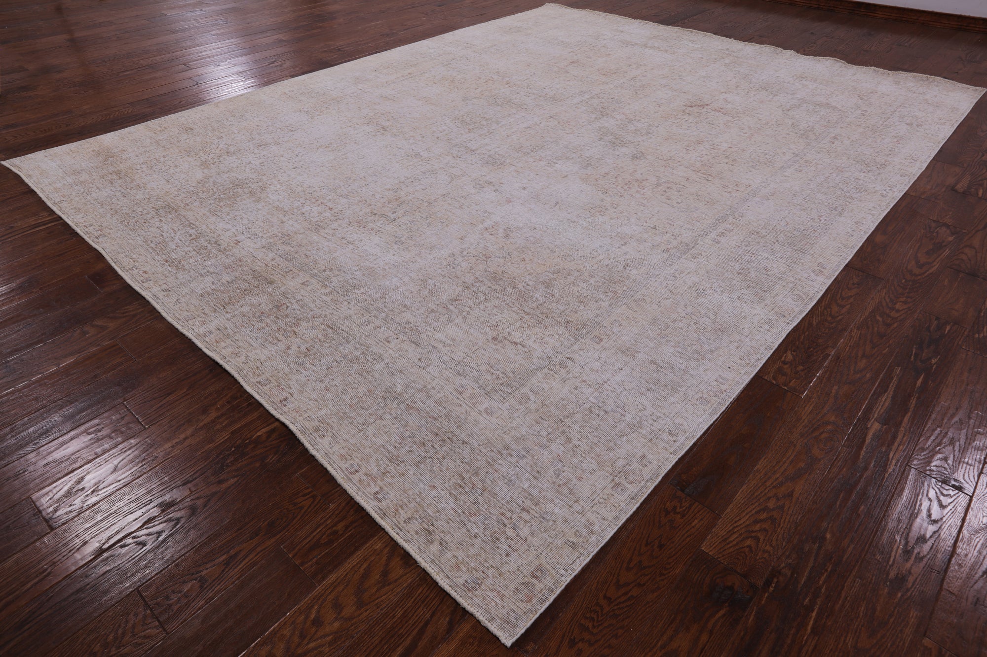 Ivory 9' 7" X 12' 4" White Wash Persian Vintage Hand Knotted Wool Rug - Q4627