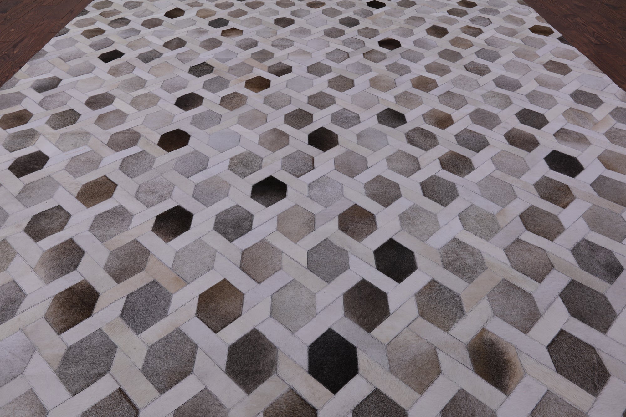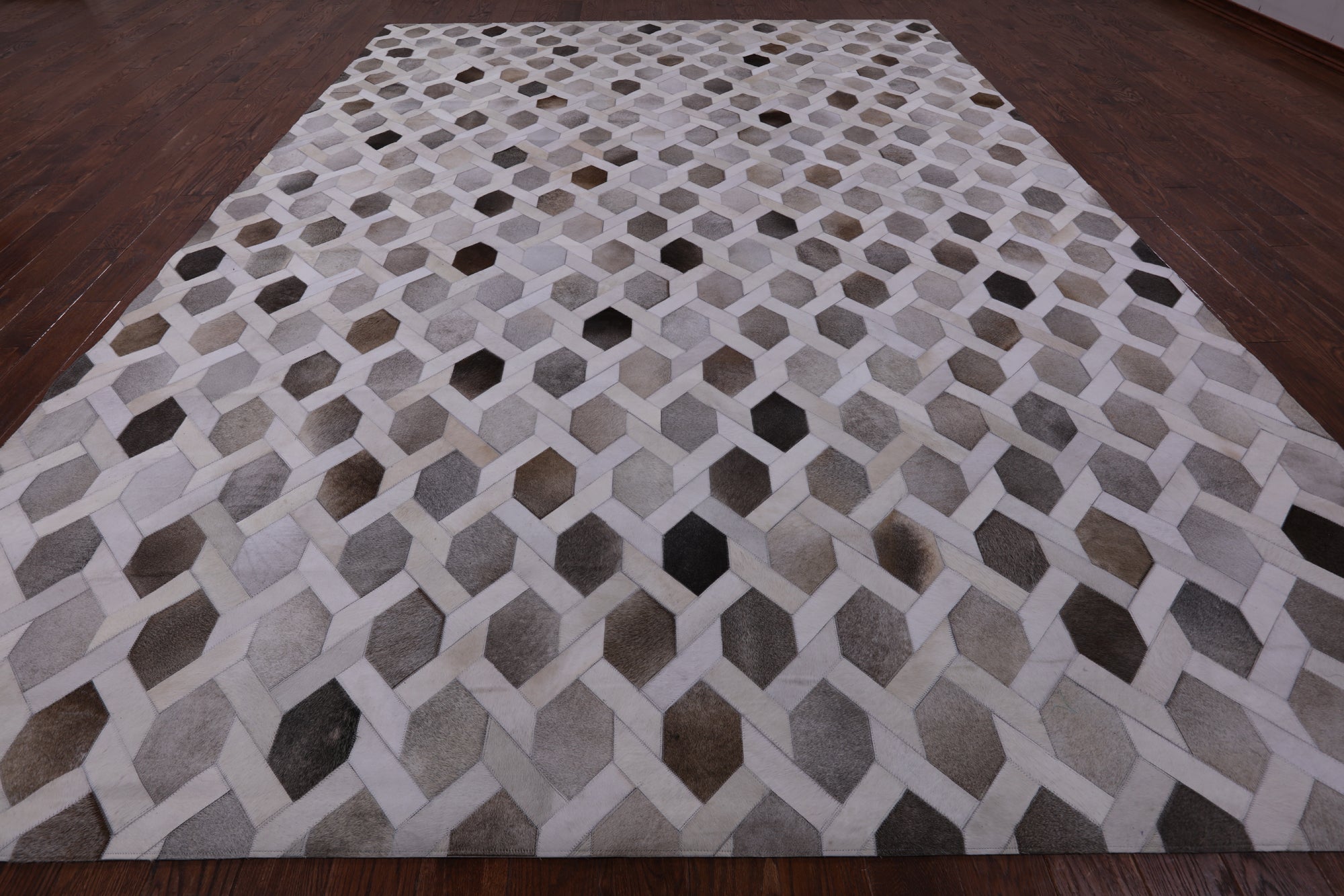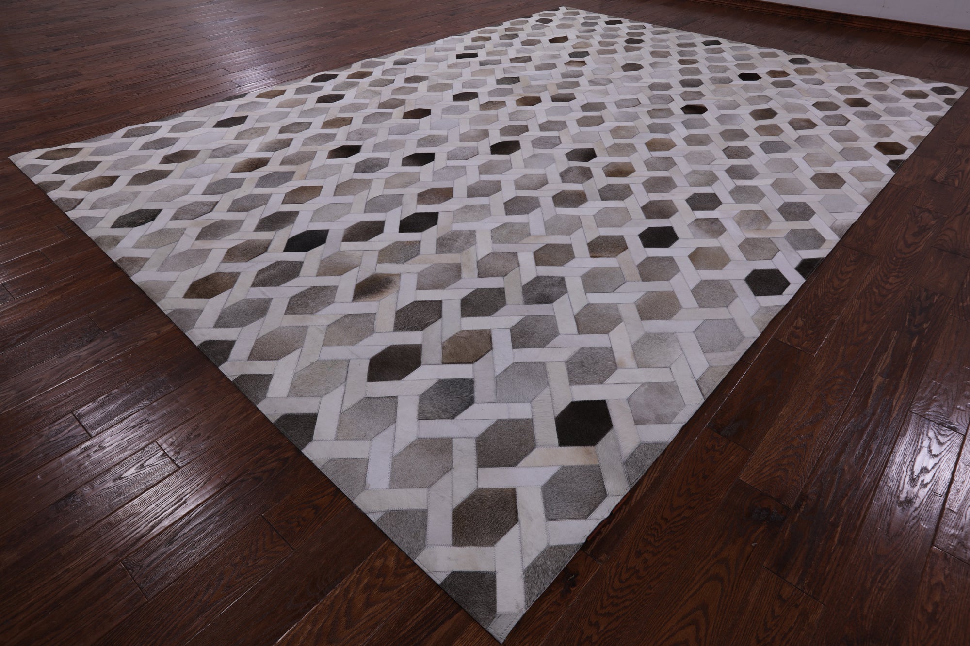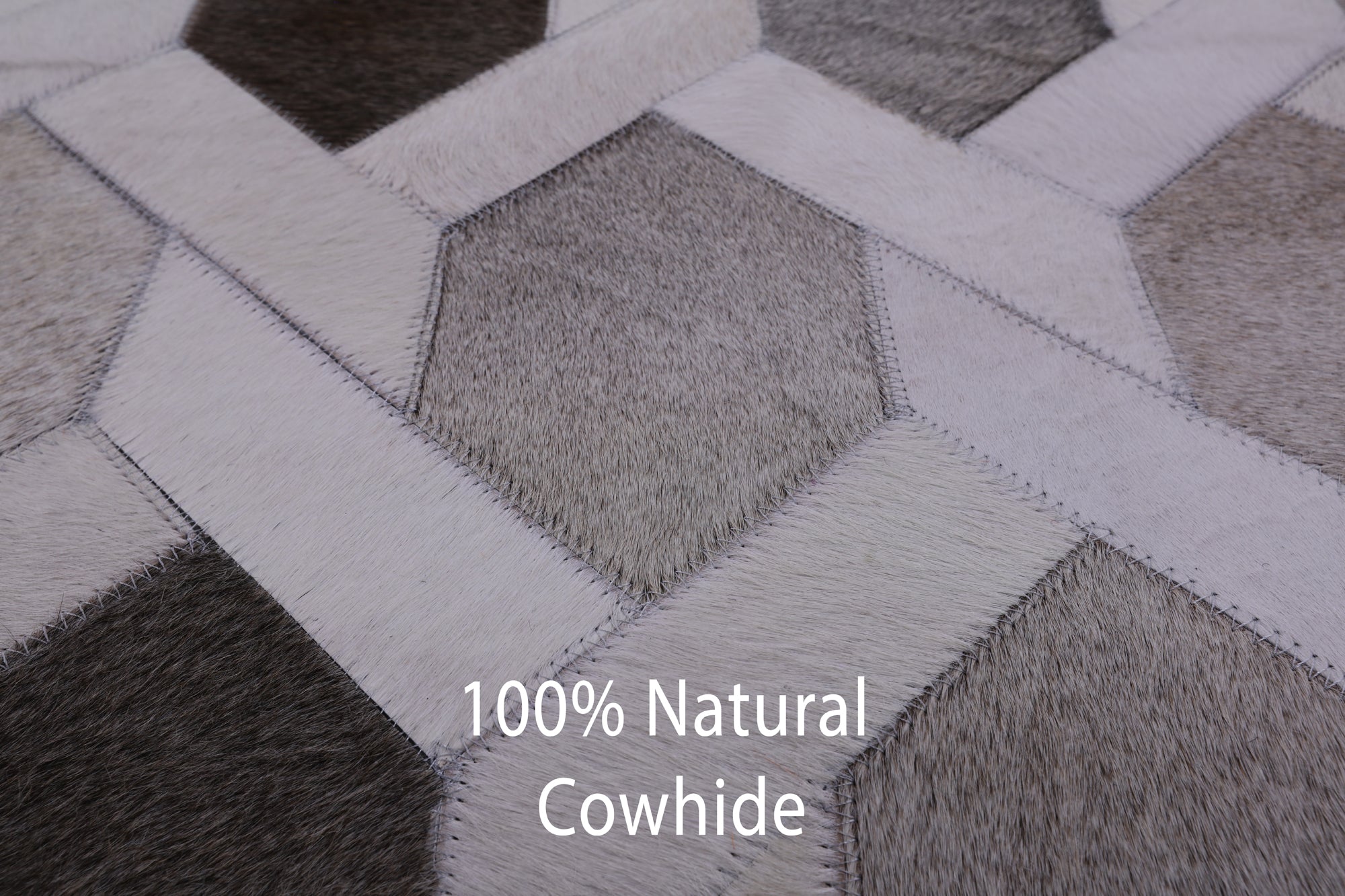 Cowhide rugs are exceptionally unique due to the material they are made from, being 100% organic cowhide. These rugs are expertly stitched together and tanned, making them the only best quality. Many of our Cowhide rugs consist of hexagon shapes and other geometric designs. The natural dyes used to create a large scale of different colors and keep the hide soft and in good shape.