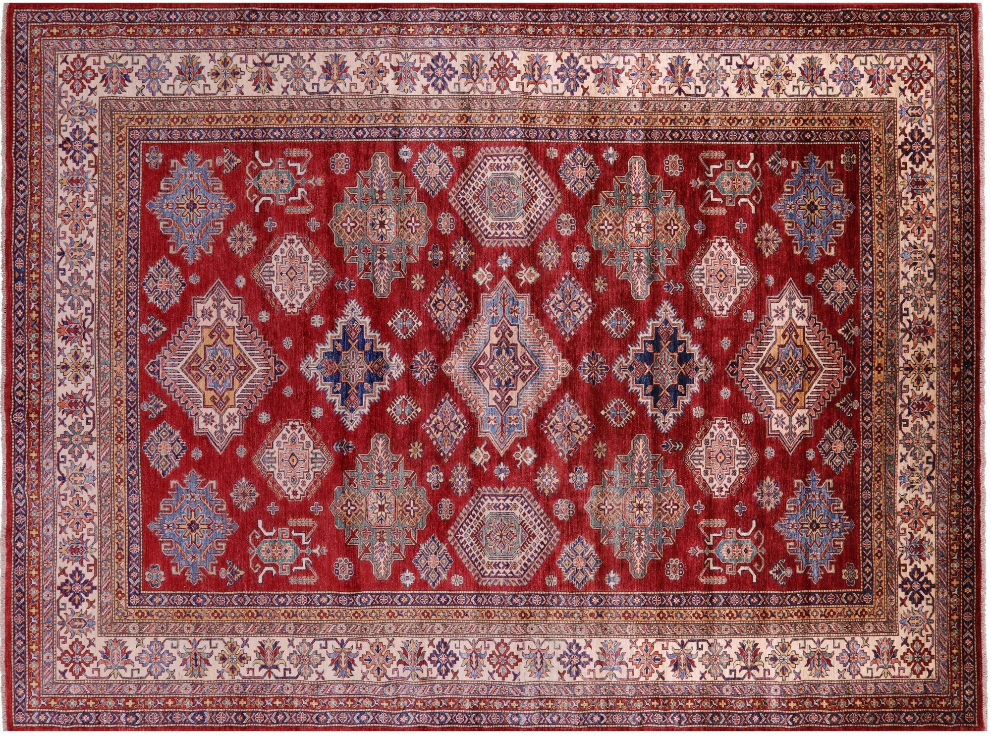 Red Hand Knotted Super Kazak Wool Rug 8' 8" X 11' 11" - Q16733