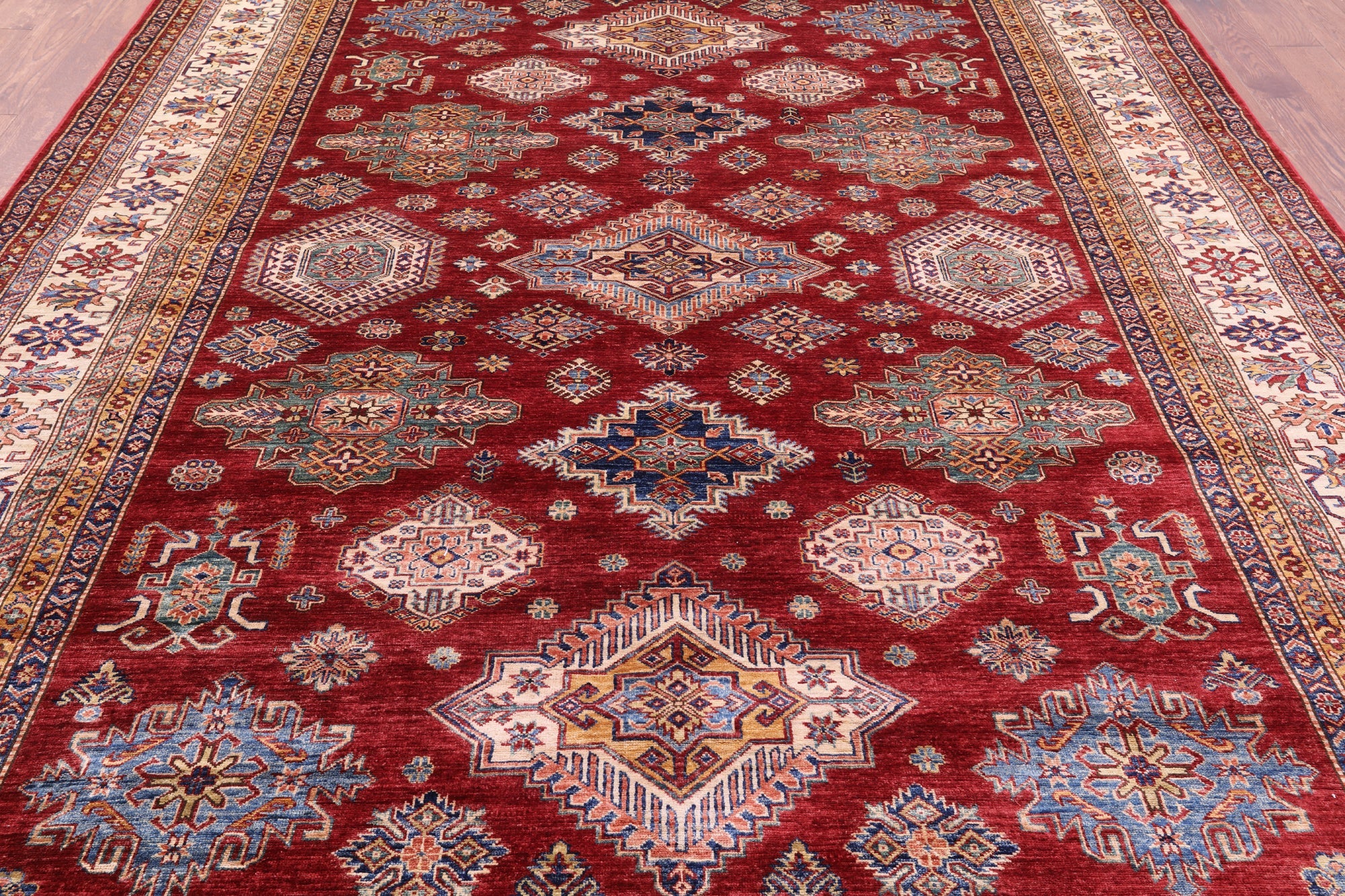 Super Kazak rugs were woven in the south of Caucasus and are very regional in their designs. Super Kazak rugs are very traditional in look and the patterns can vary from geometric shapes, tribal designs like people and animals, and symbolic medallions. They are beautifully intricate and heavy in design. These rugs come in varieties of rich, warm, jewel tones that can liven up any space.