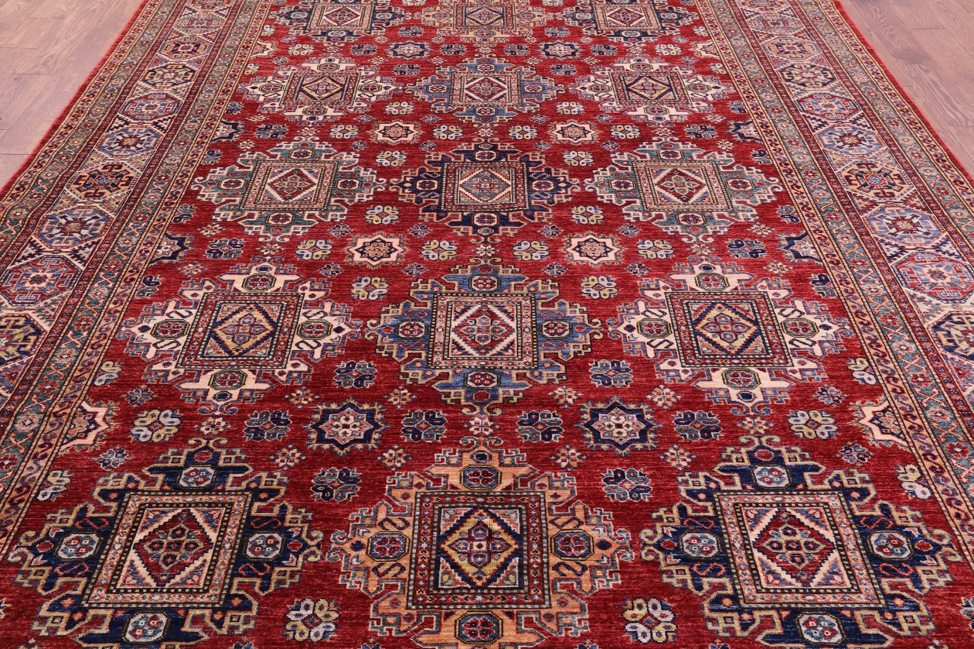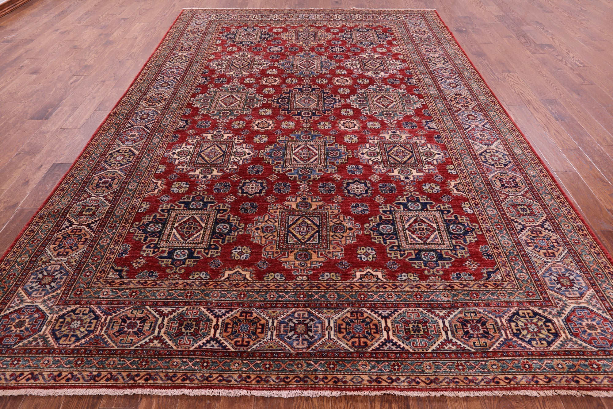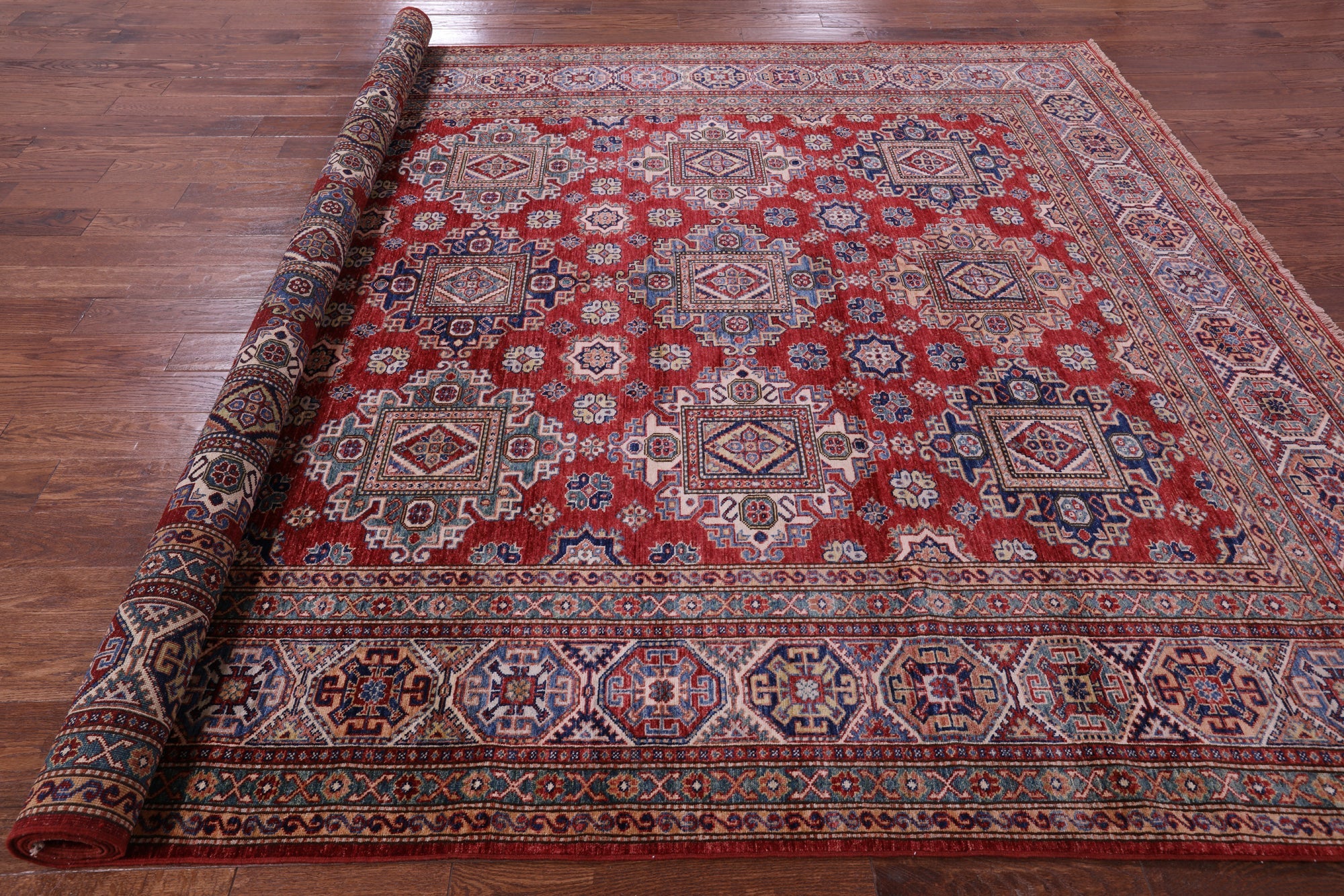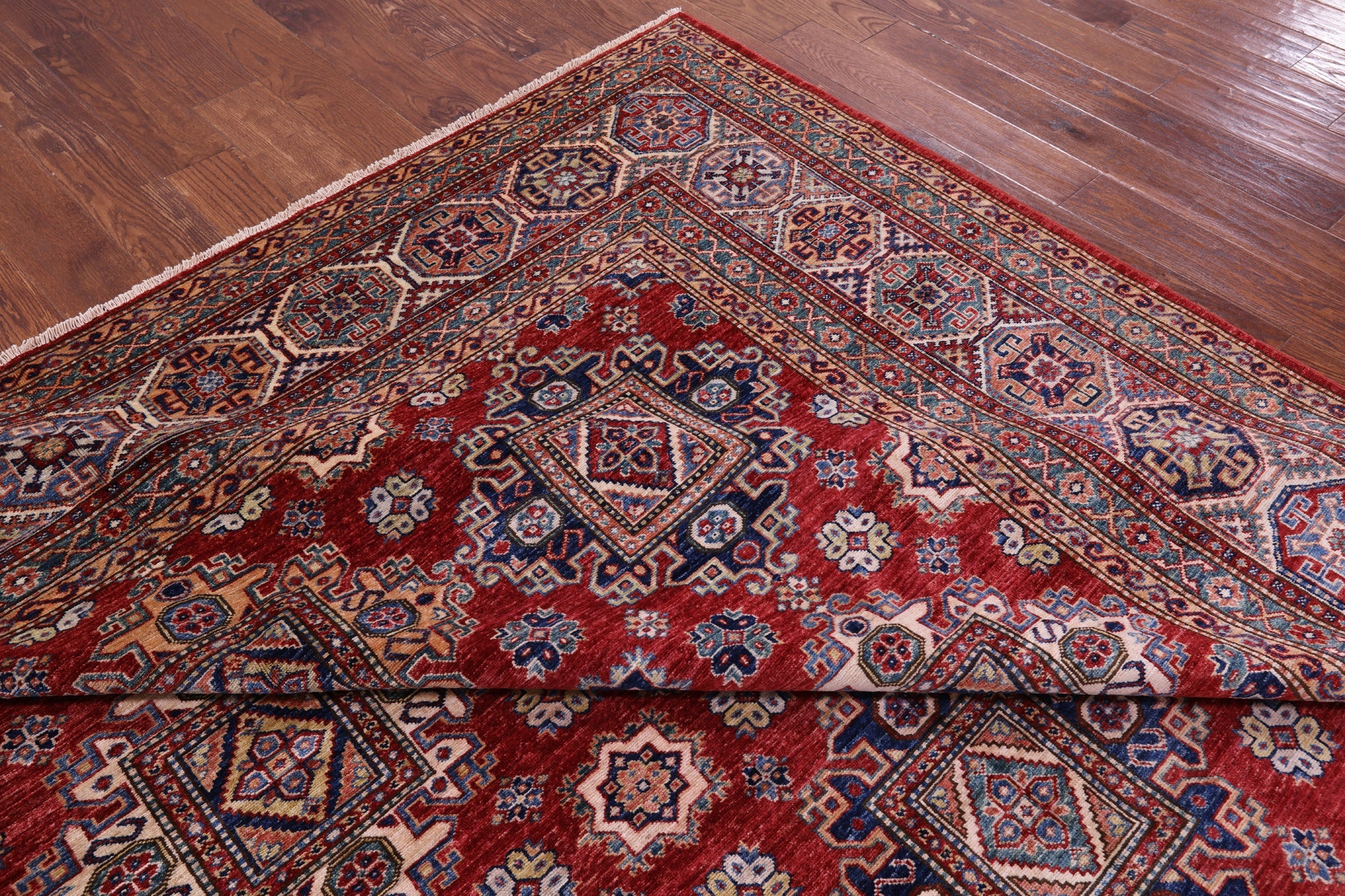 Red 8' 8" X 12' 4" Hand Knotted Super Kazak Wool Rug - Q18815 is backordered and will ship as soon as it is back in stock.