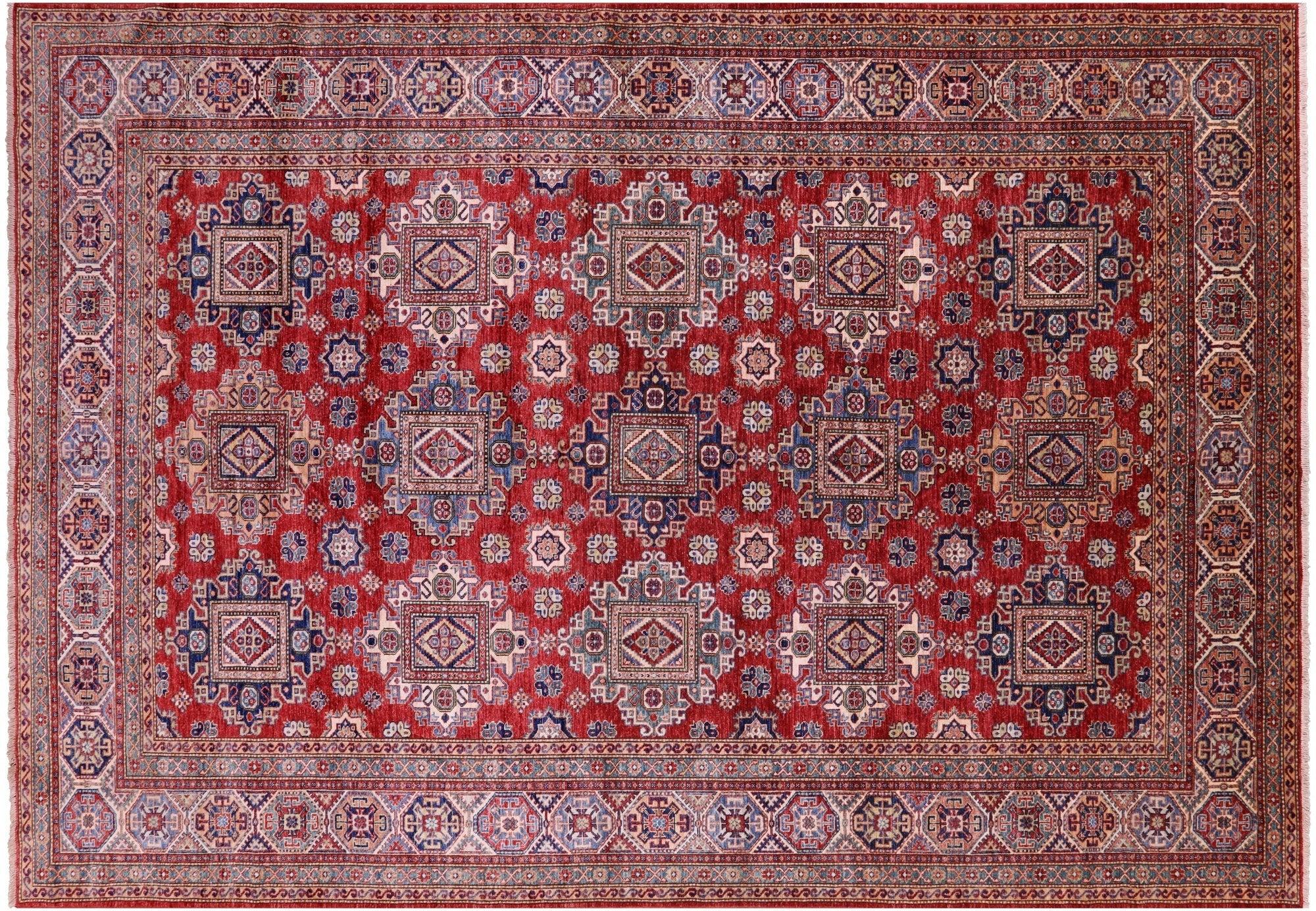 Red 8' 8" X 12' 4" Hand Knotted Super Kazak Wool Rug - Q18815