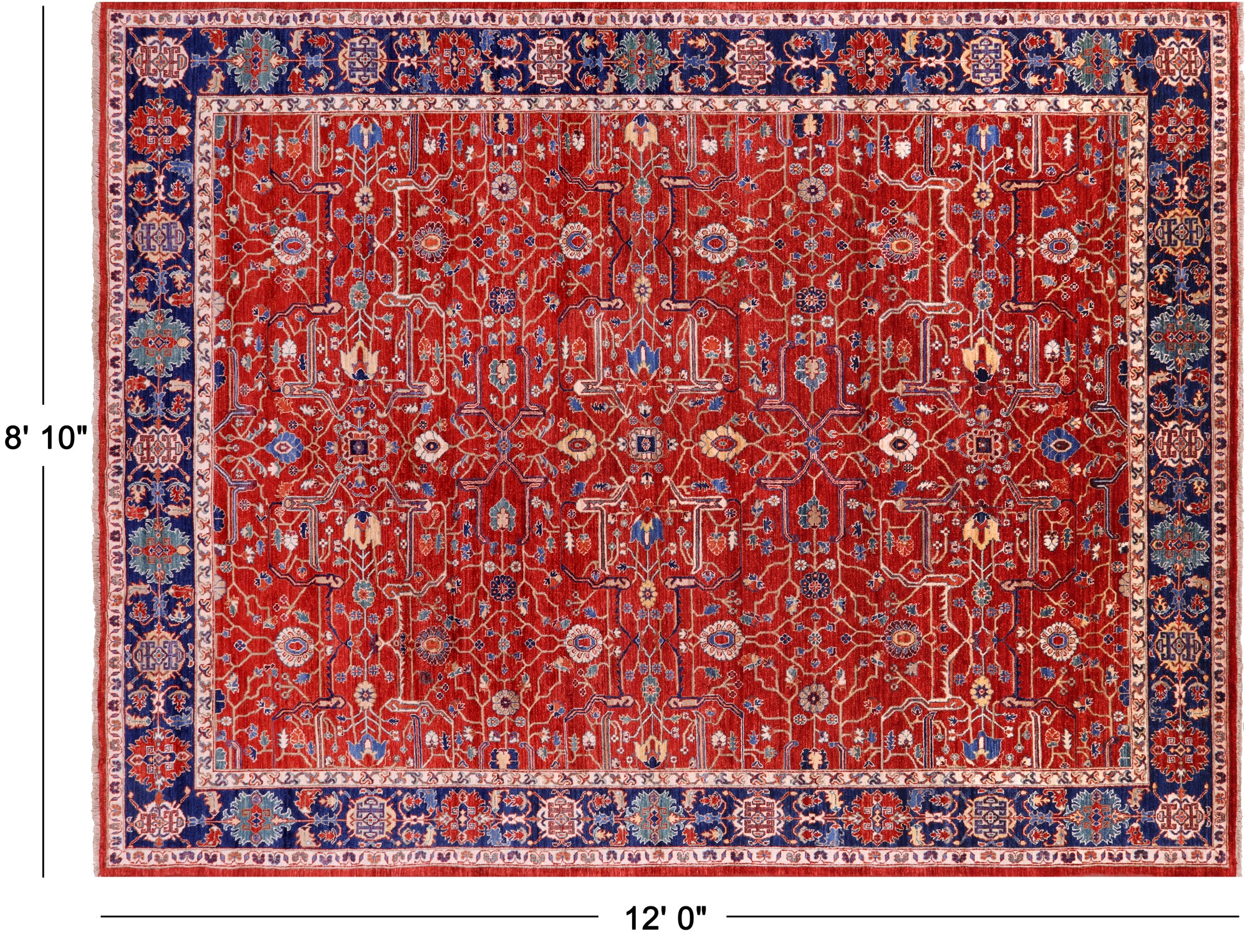 Red 8' 10" X 12' 0" Handmade Persian Heriz Serapi Wool Rug - Q23146 is backordered and will ship as soon as it is back in stock.