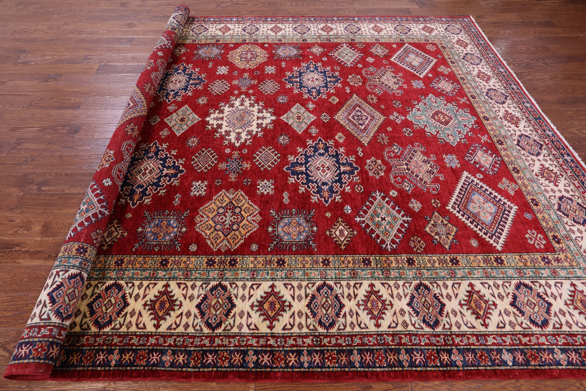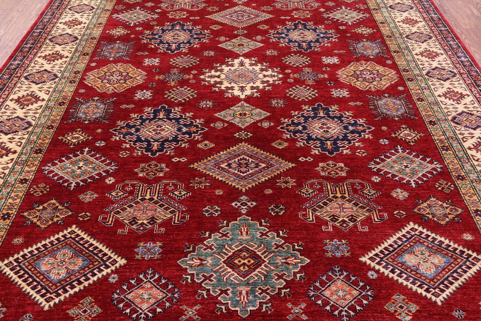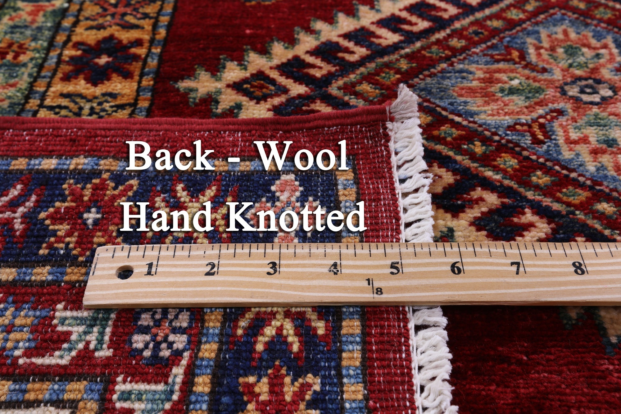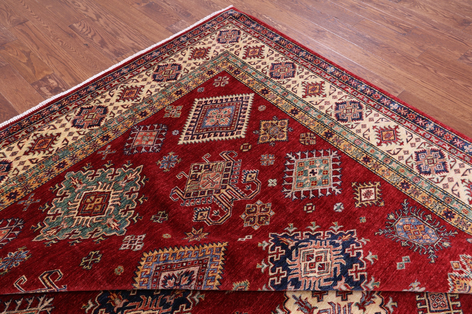 Red 8' 10" X 11' 10" Handmade Super Kazak Wool Rug - Q14526 is backordered and will ship as soon as it is back in stock.