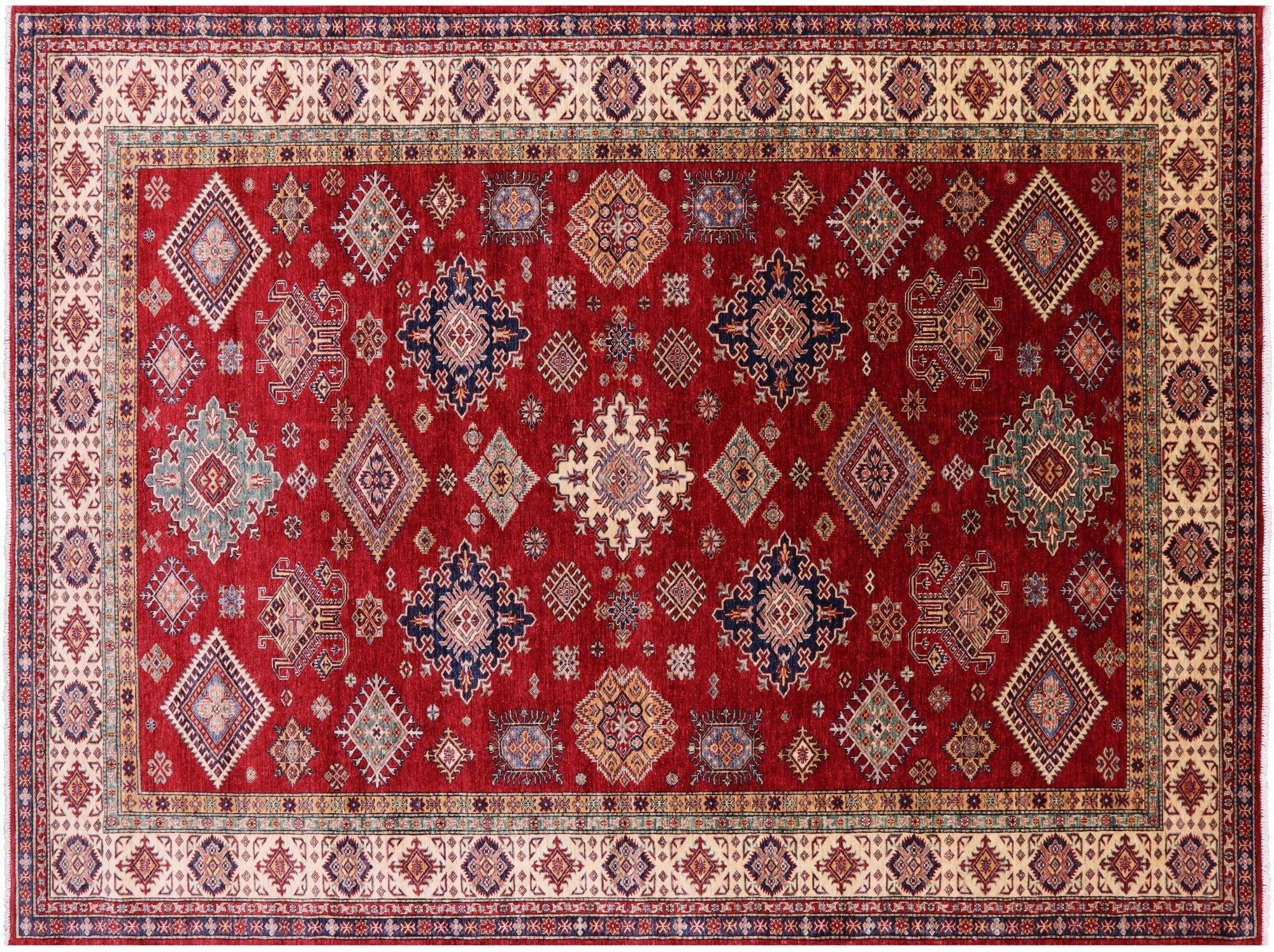 Red 8' 10" X 11' 10" Handmade Super Kazak Wool Rug - Q14526