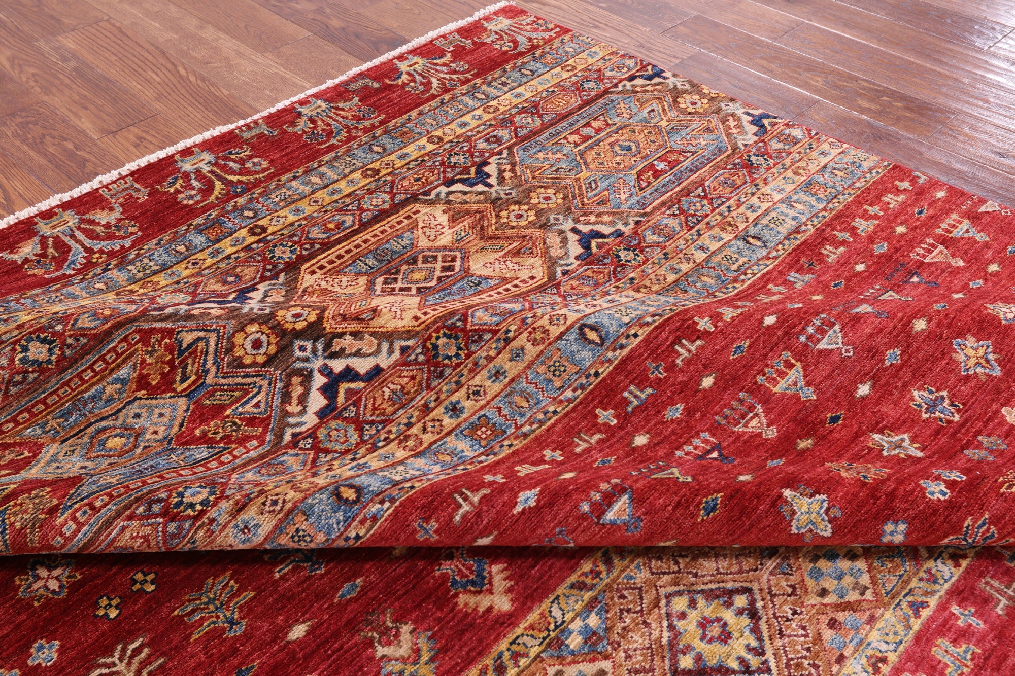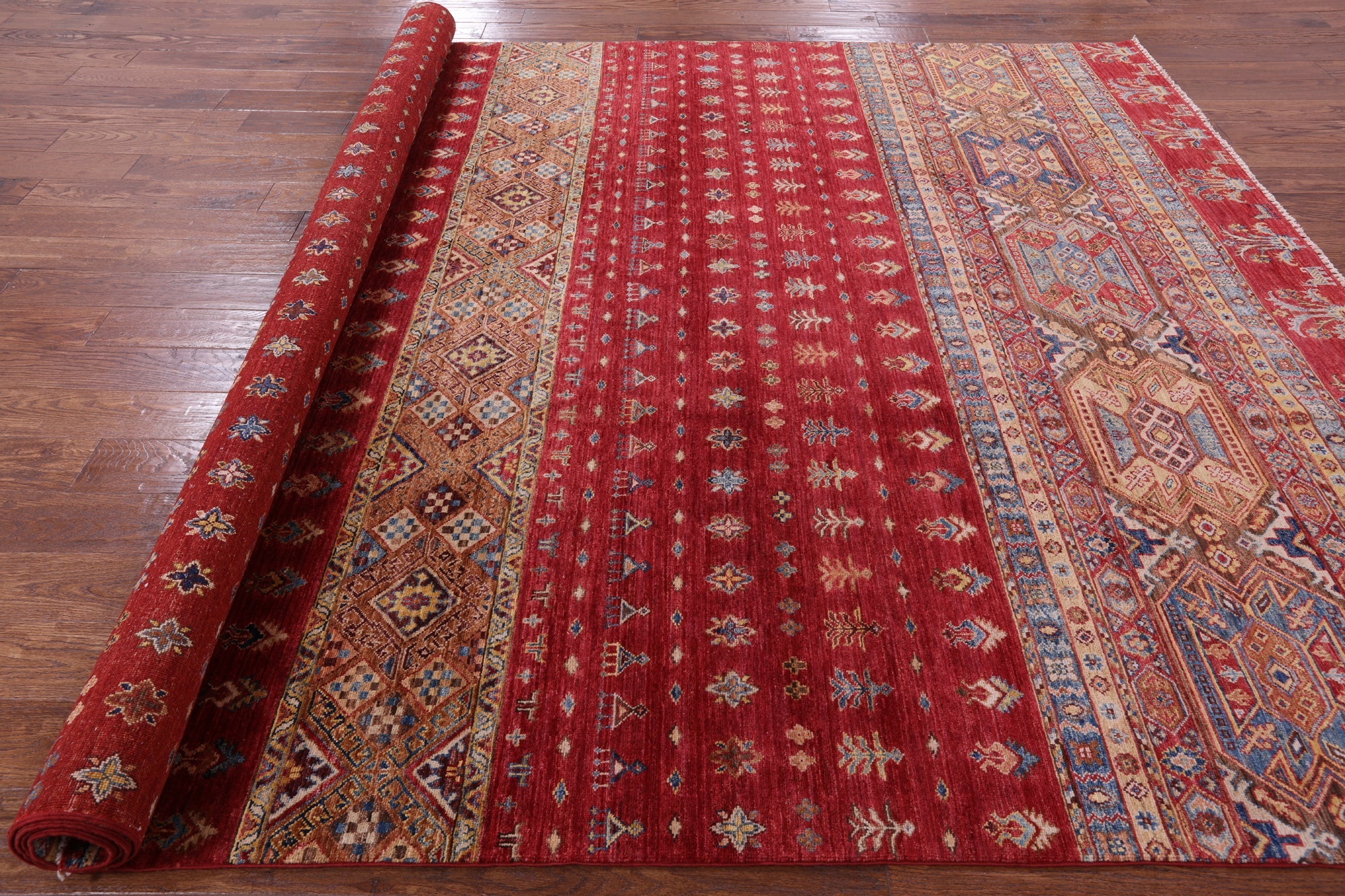 Red 8' 2" X 11' 6" Khorjin Super Kazak Hand-Knotted Rug - Q5233 is backordered and will ship as soon as it is back in stock.