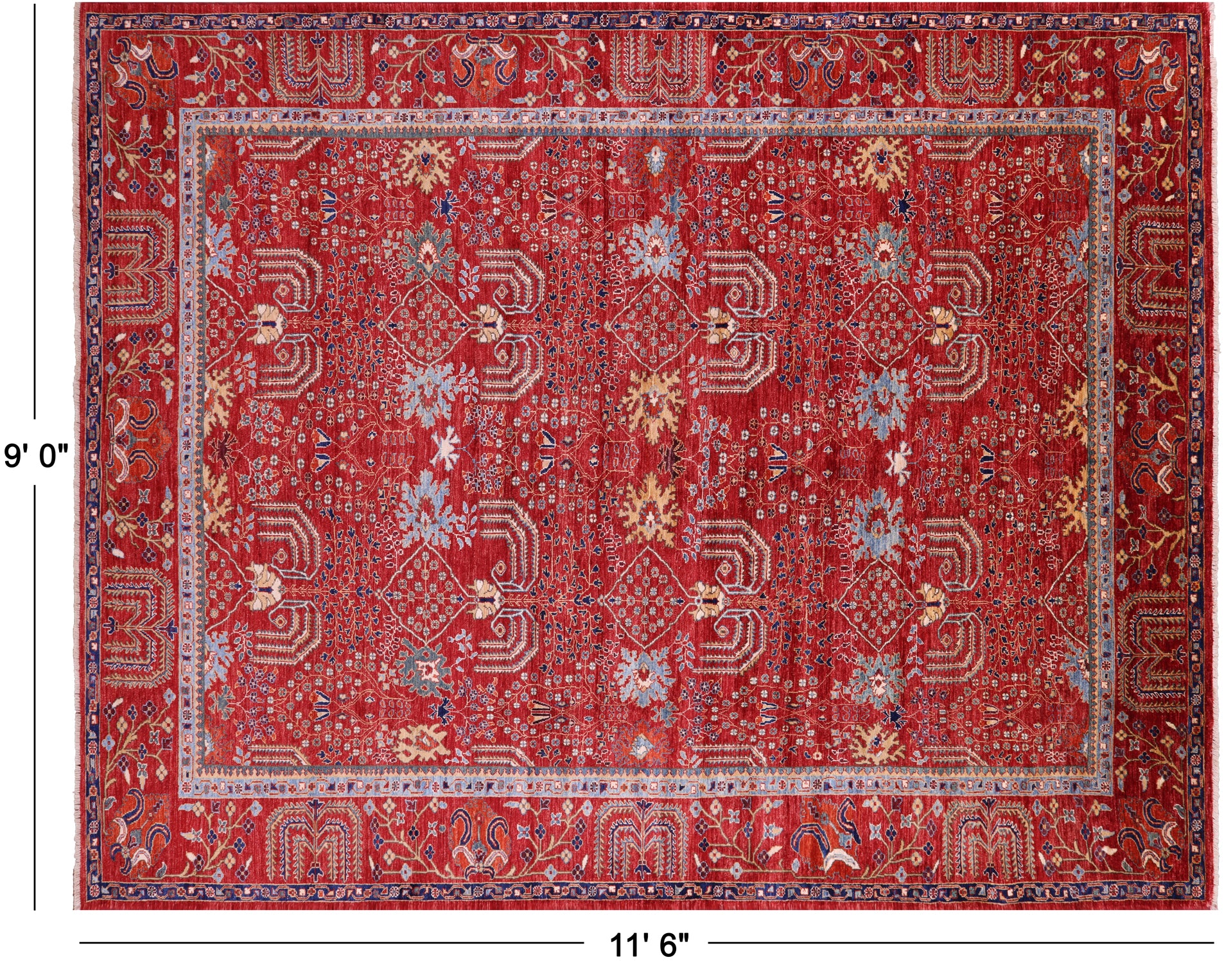 Red Persian Heriz Serapi Hand-Knotted Wool Rug 9' 0" X 11' 6" - Q23096