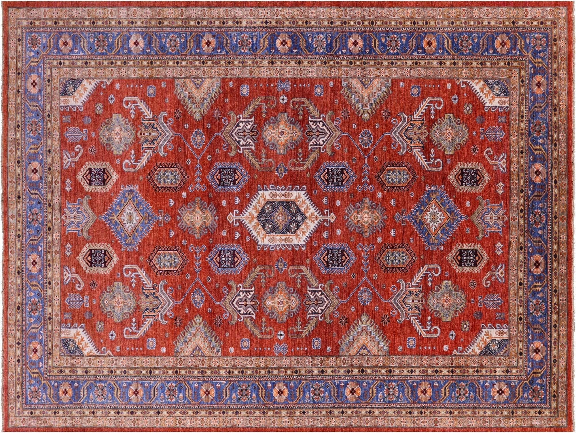 Red 9' 1" X 12' 0" Super Kazak Handmade Wool Rug - Q13755