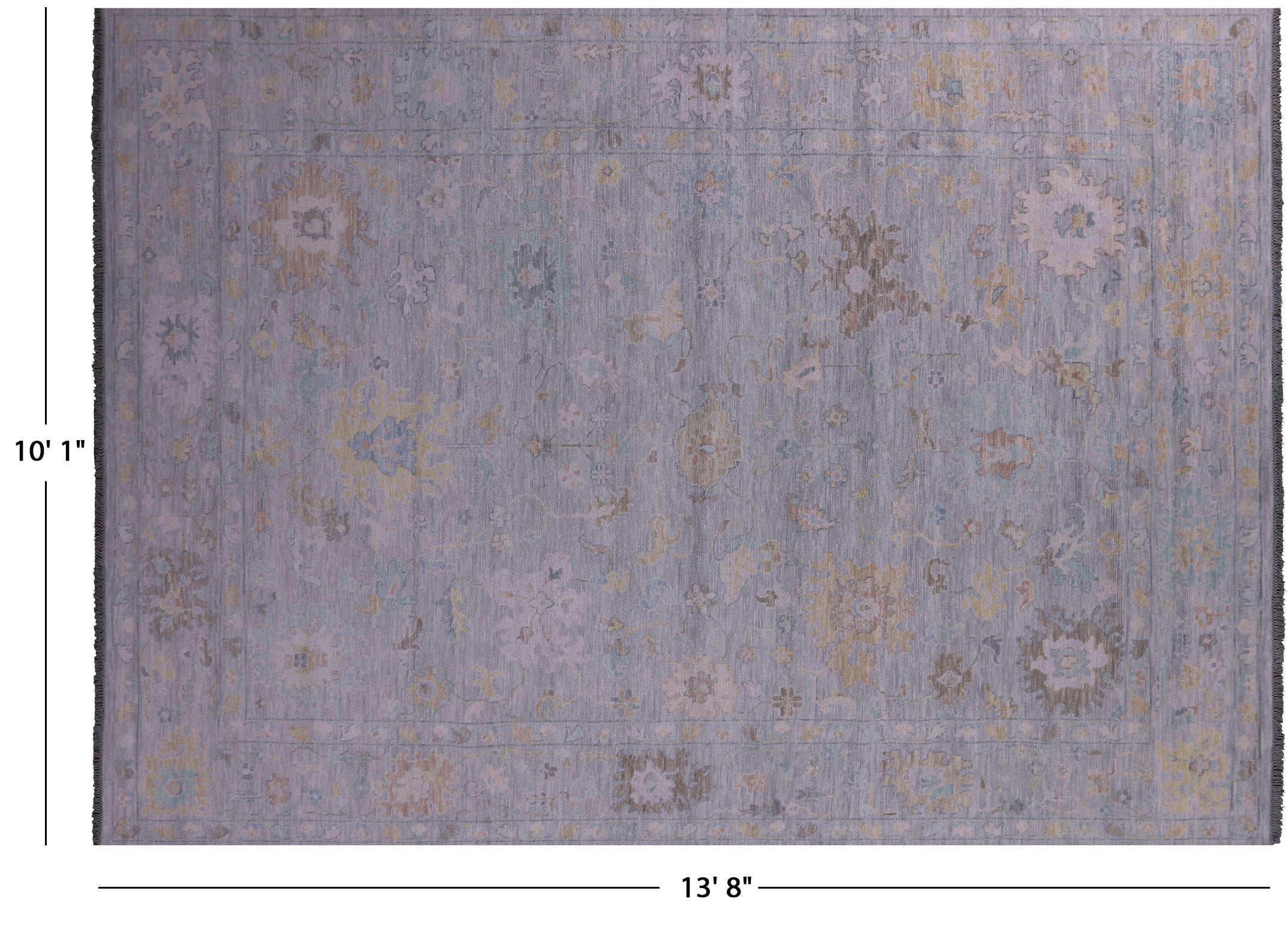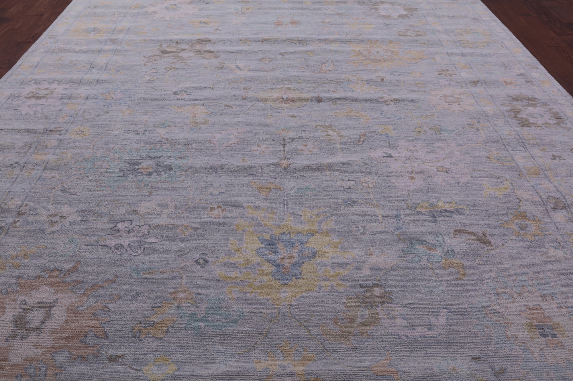Silver 10' 1" X 13' 8" Hand-Knotted Turkish Angora Oushak Wool Rug - Q21219