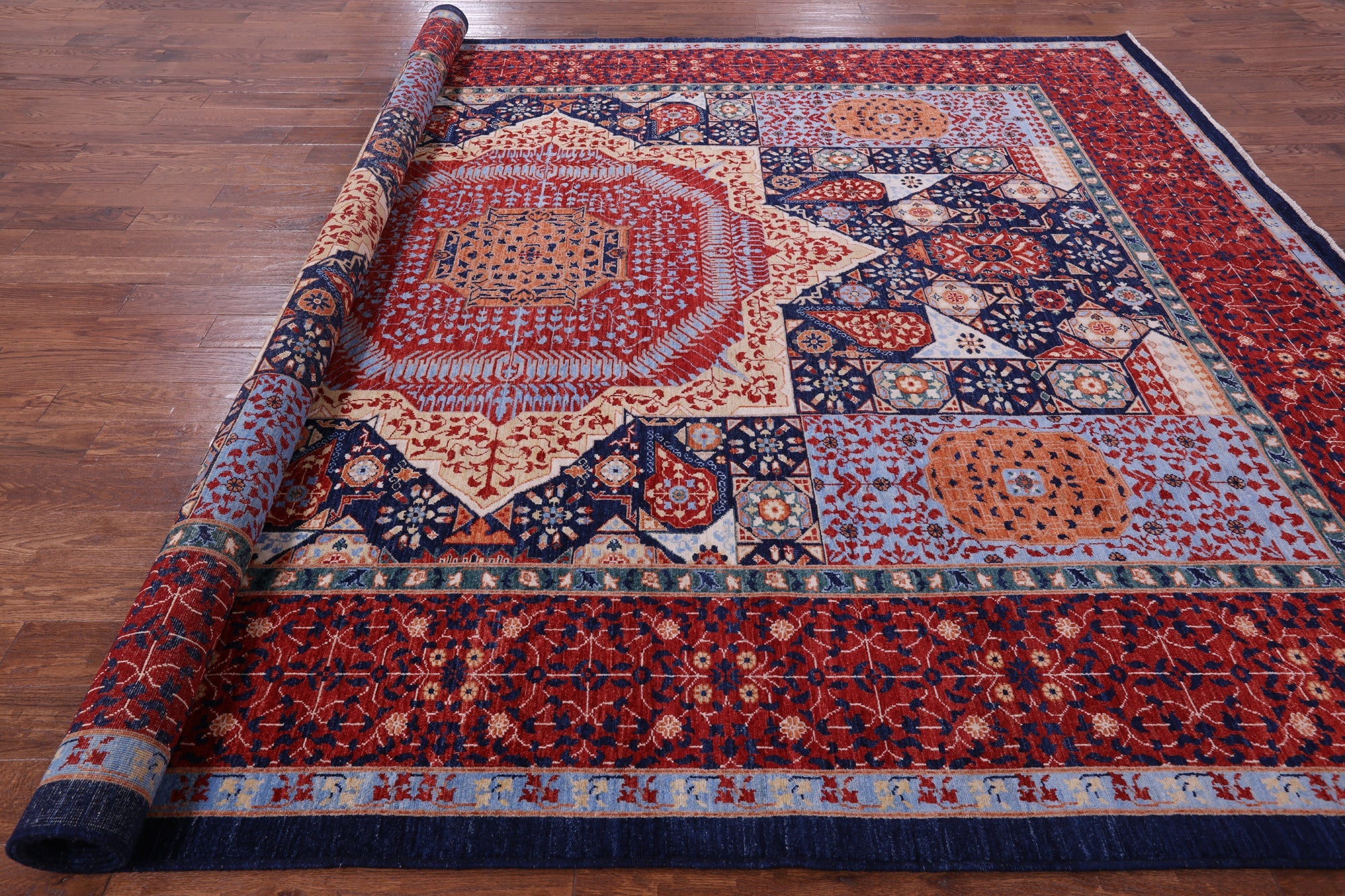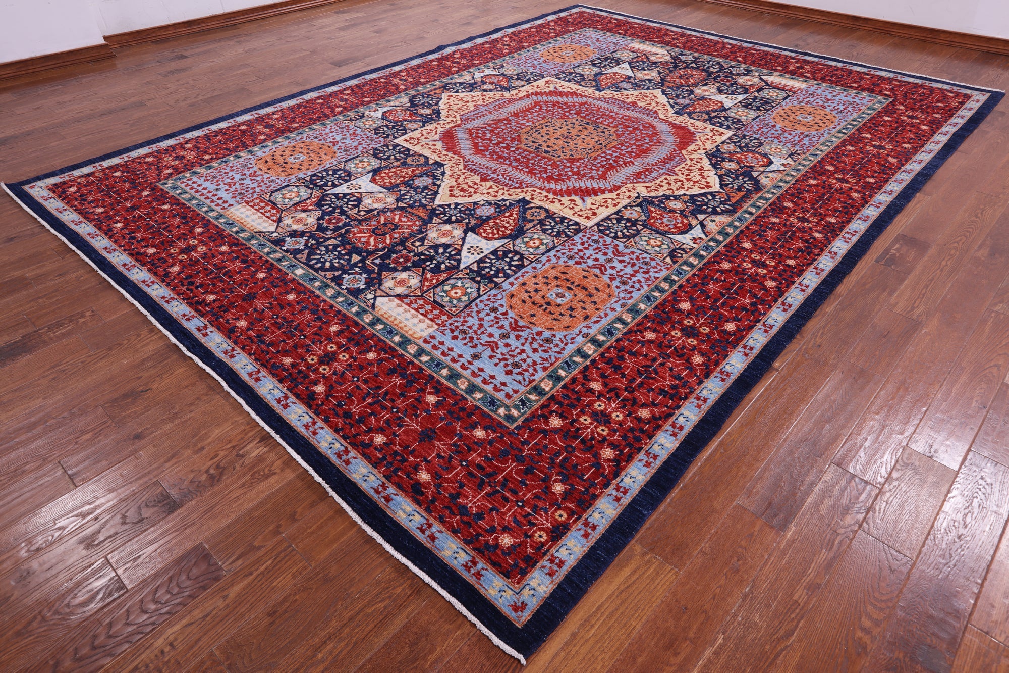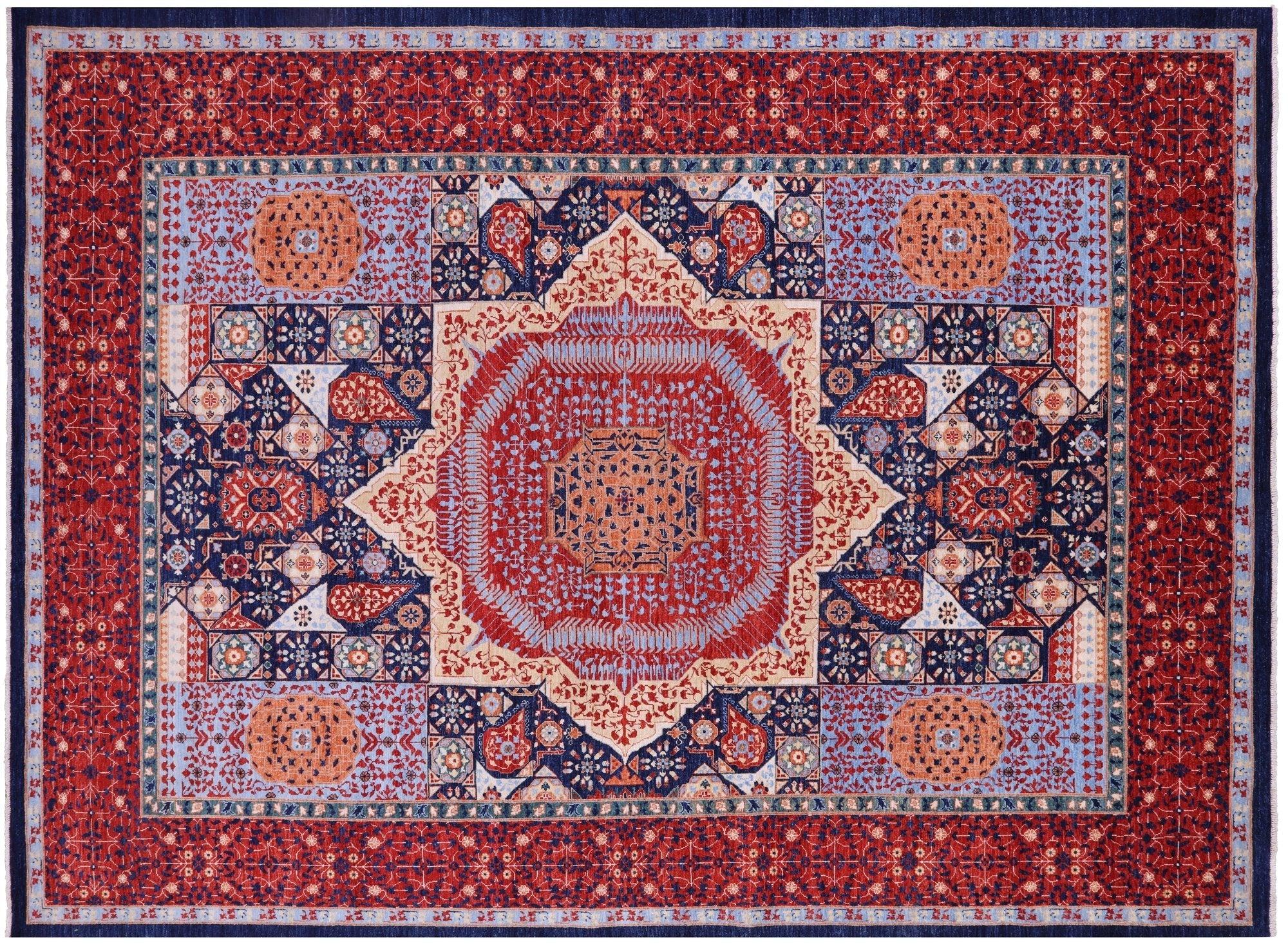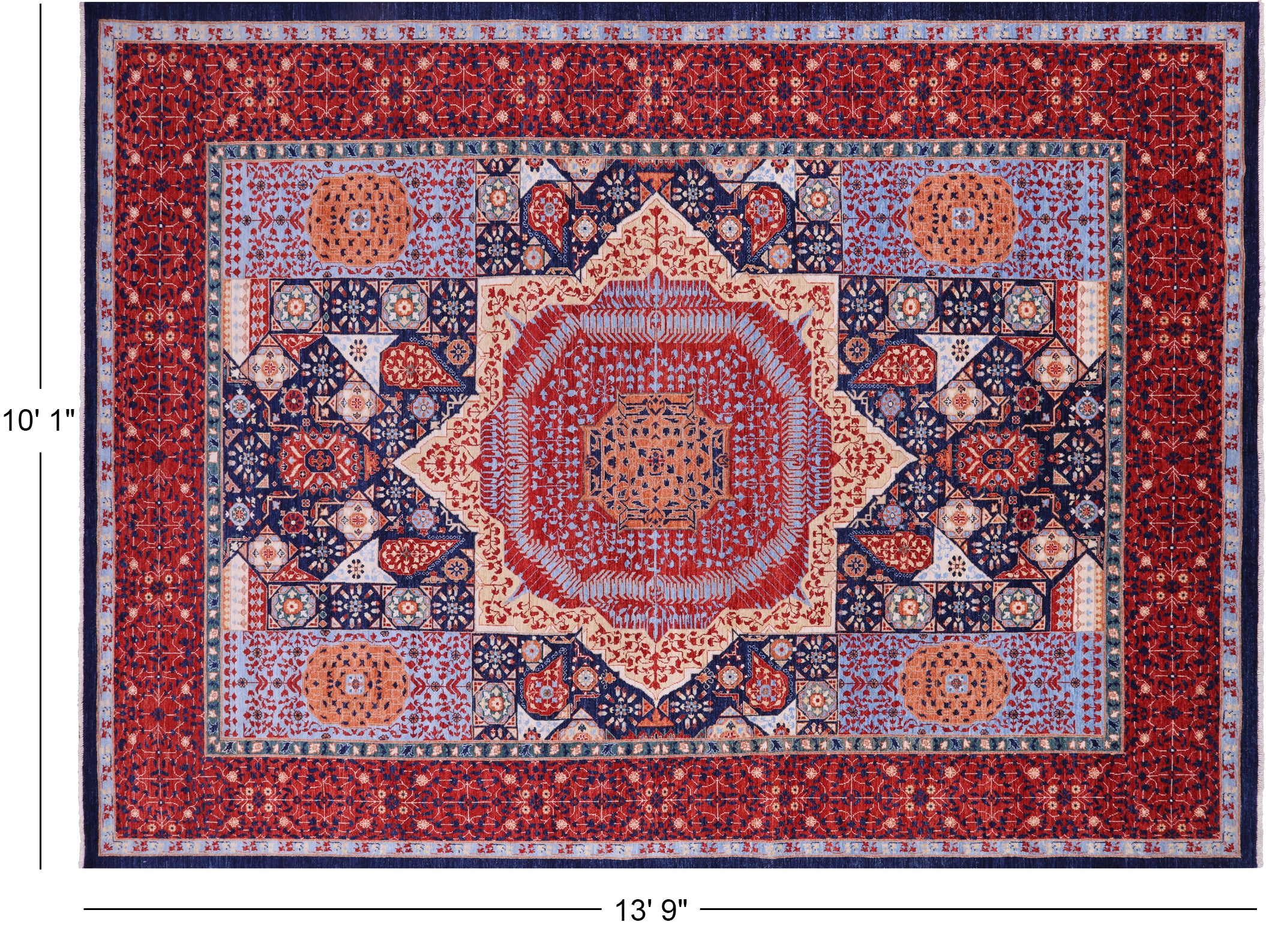 Blue 10' 1" X 13' 9" Hand-Knotted Mamluk Geometric Wool Rug - Q9548