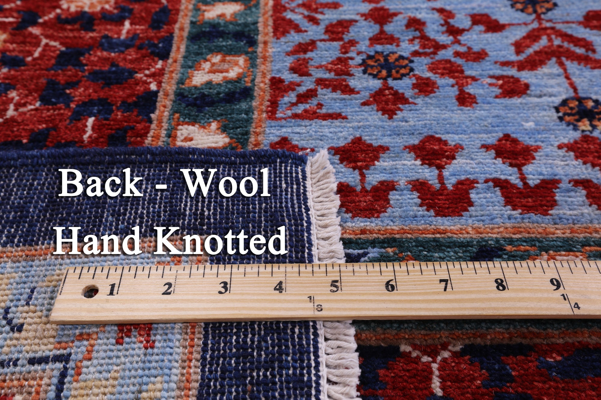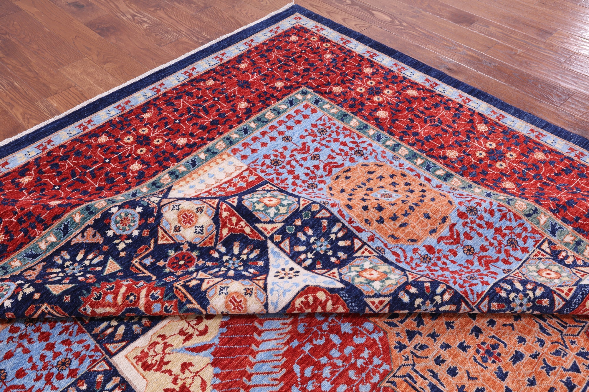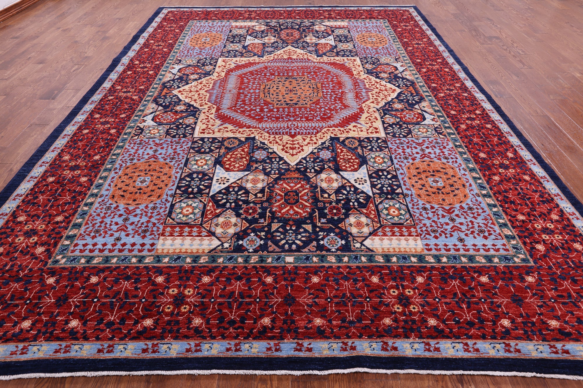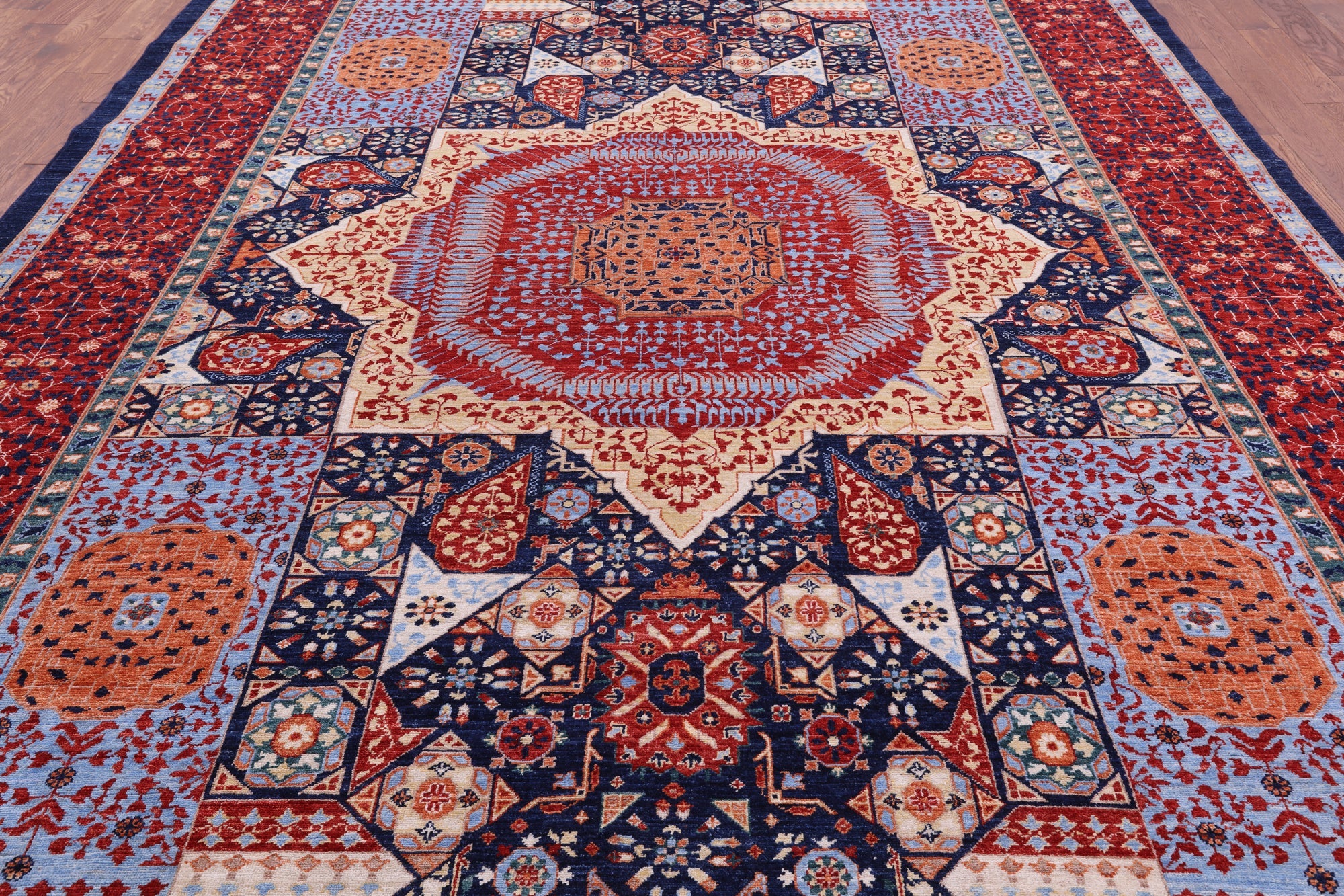 Blue 10' 1" X 13' 9" Hand-Knotted Mamluk Geometric Wool Rug - Q9548