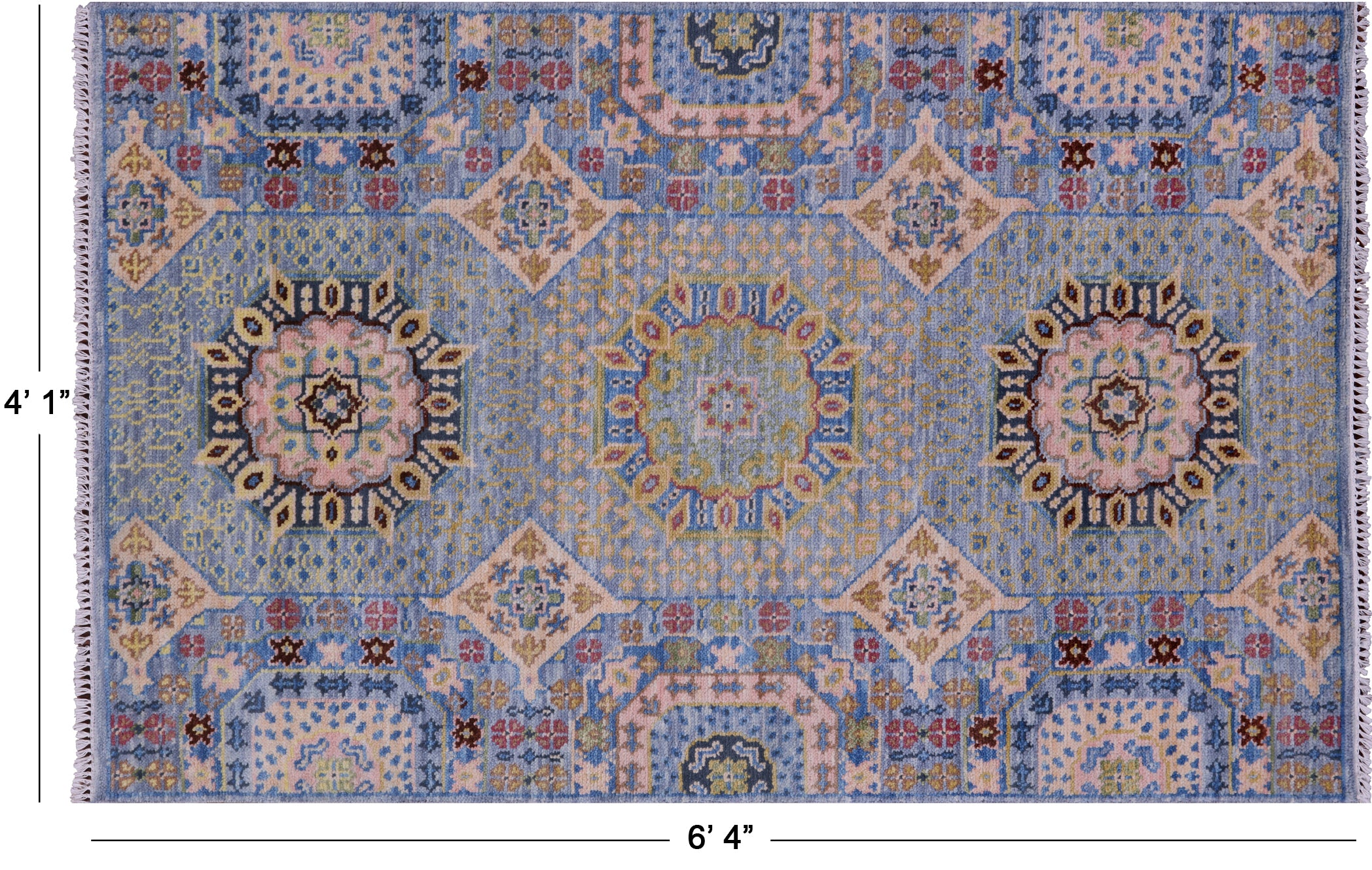 Blue Mamluk Geometric Handmade Wool Rug 4' 1" X 6' 4" - Q19310