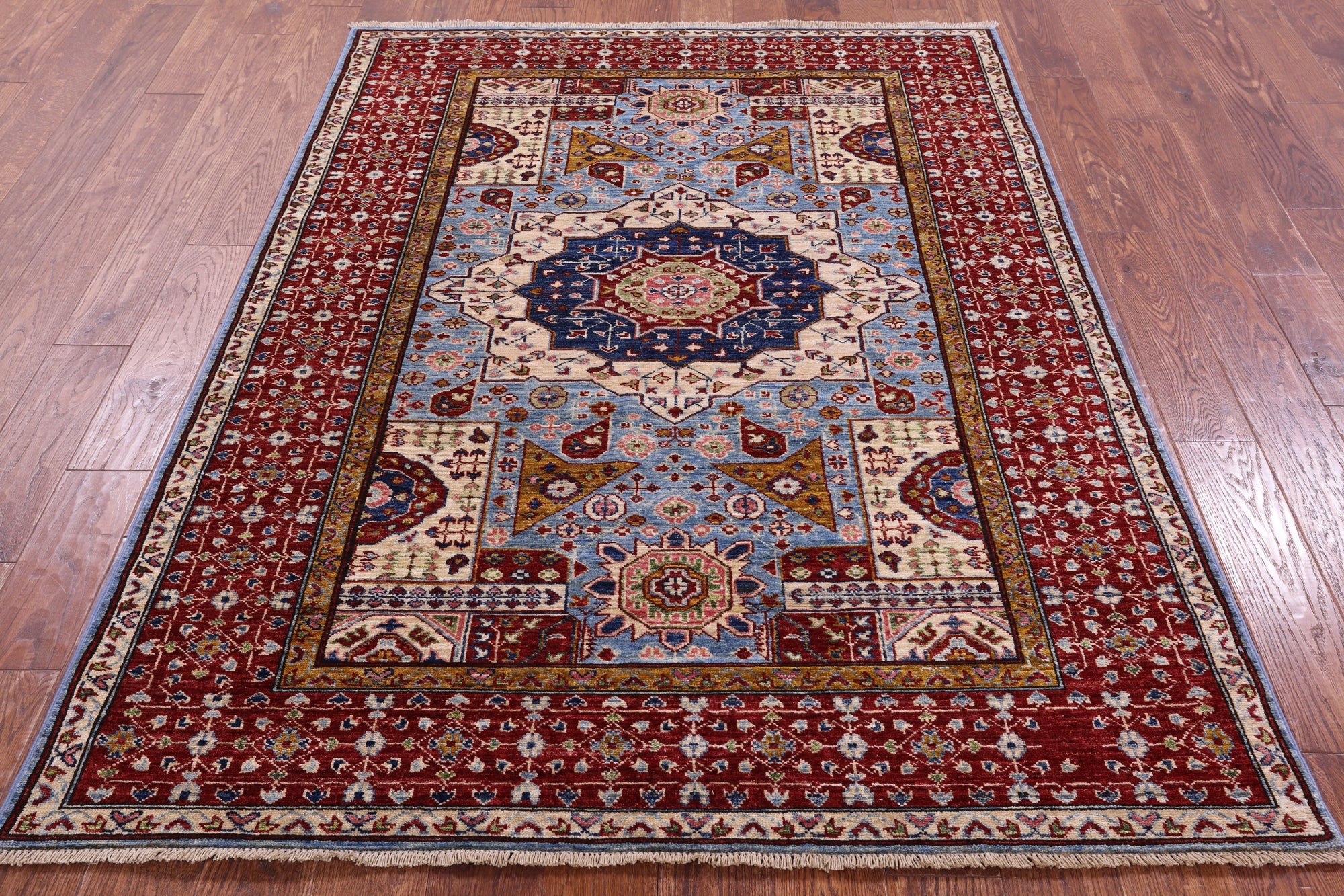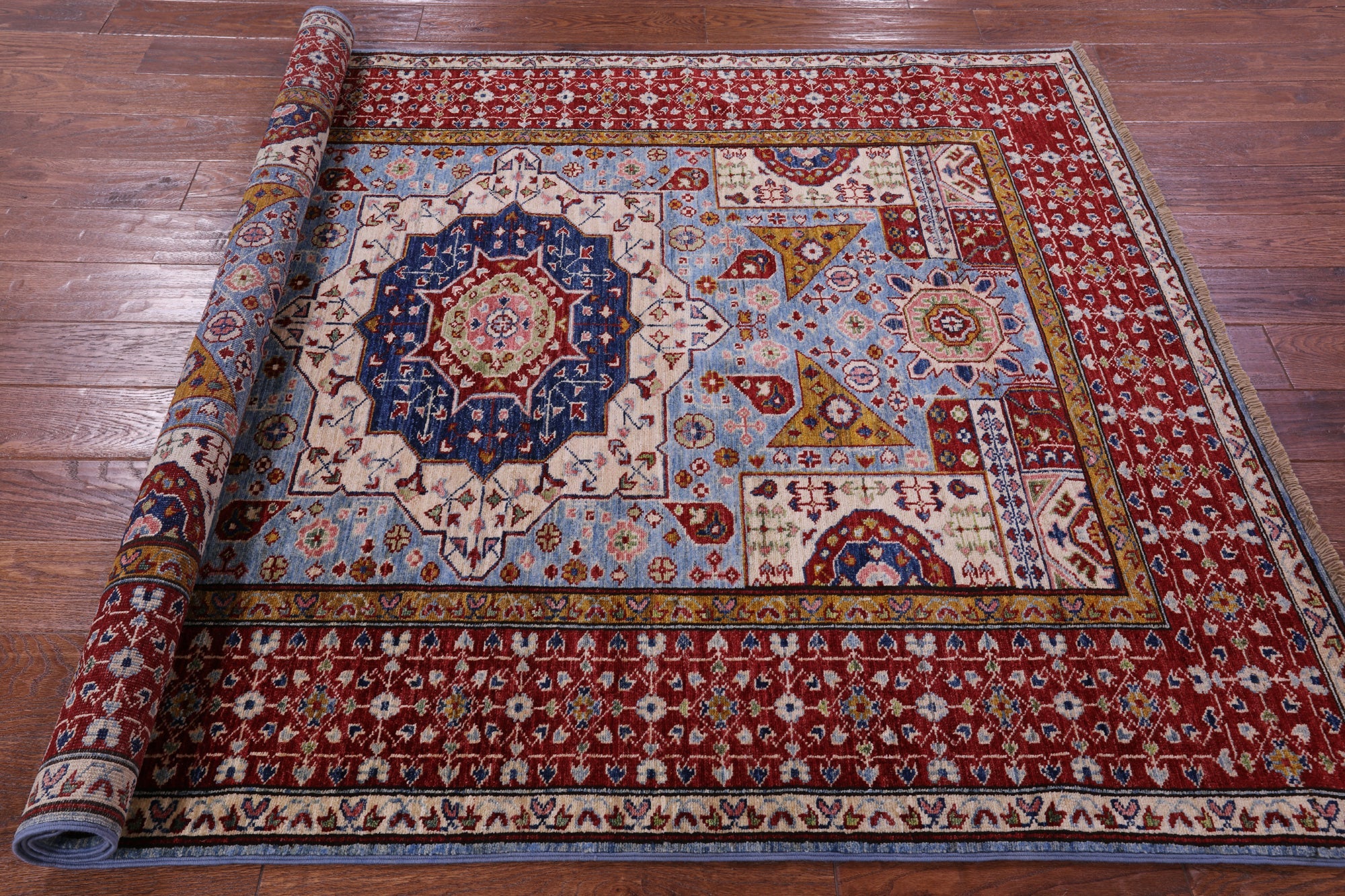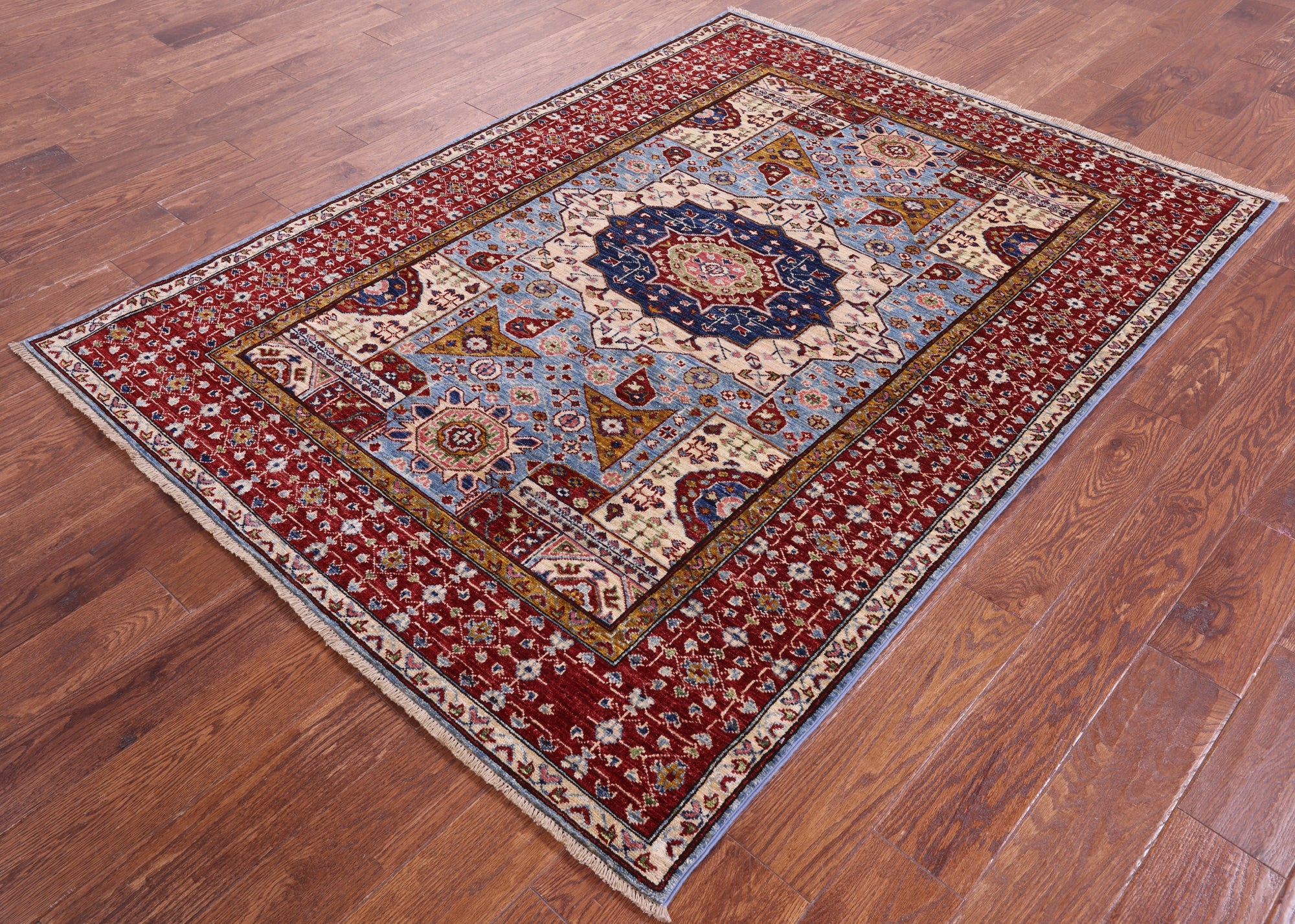 Blue Mamluk Hand-Knotted Wool Rug 4' 11" X 6' 8" - Q18333 is backordered and will ship as soon as it is back in stock.