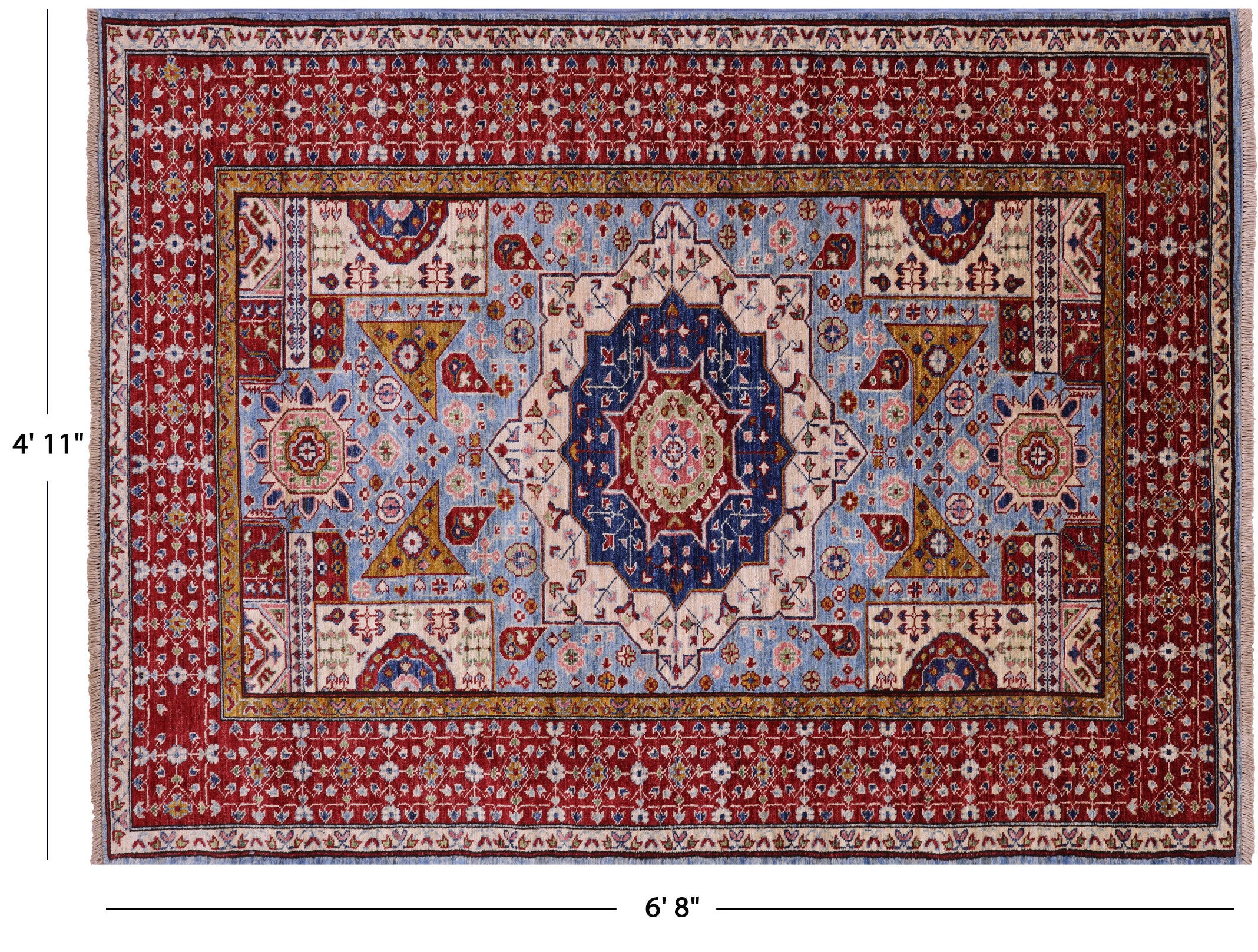 Blue Mamluk Hand-Knotted Wool Rug 4' 11" X 6' 8" - Q18333