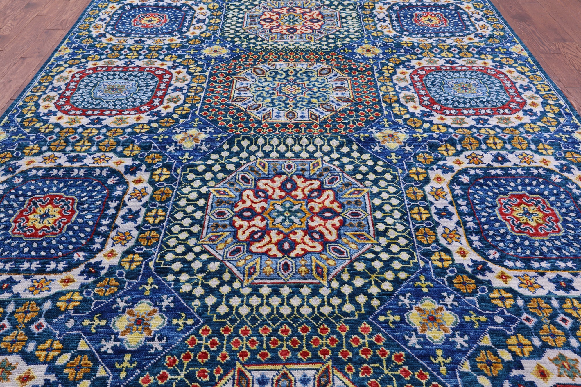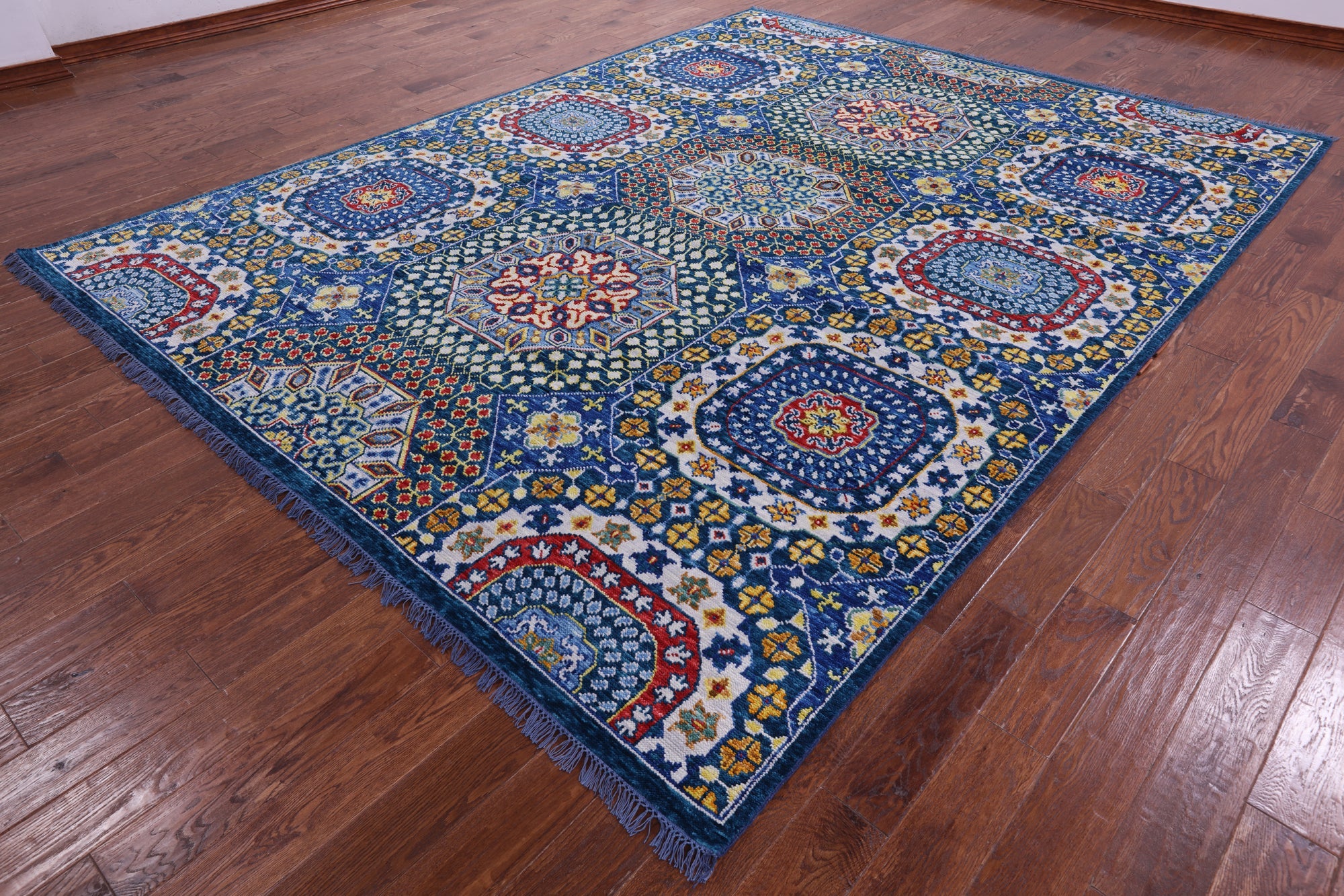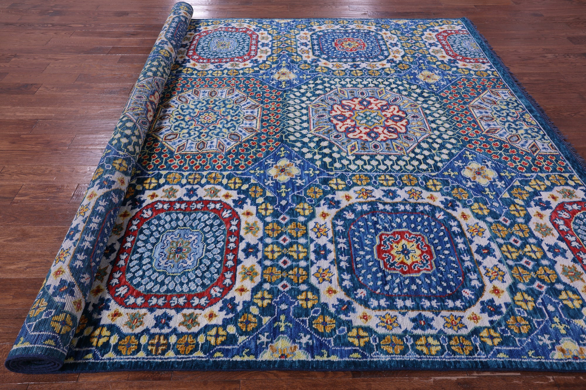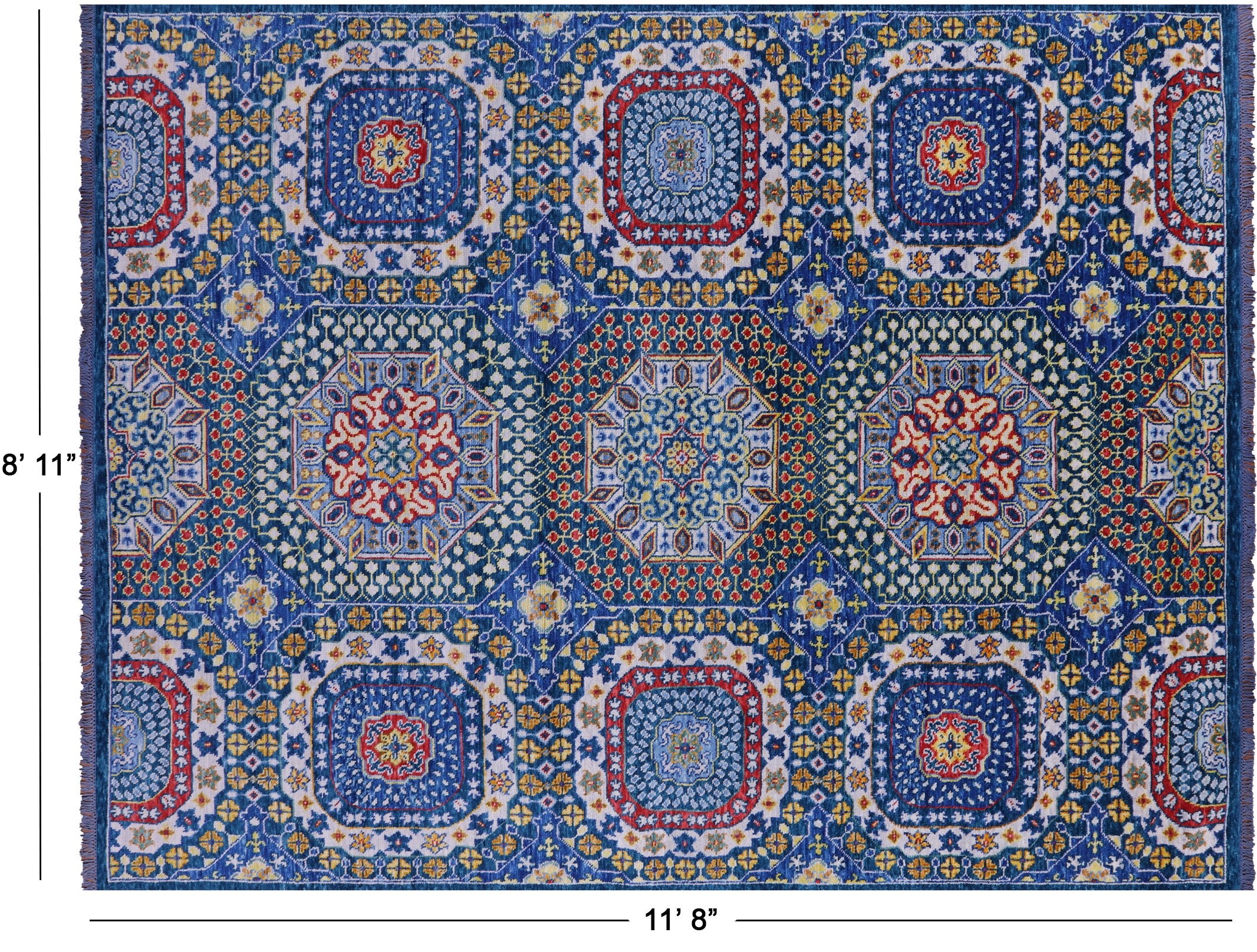 Blue 8' 11" X 11' 8" Mamluk Hand Knotted Wool Rug - Q22312 is backordered and will ship as soon as it is back in stock.