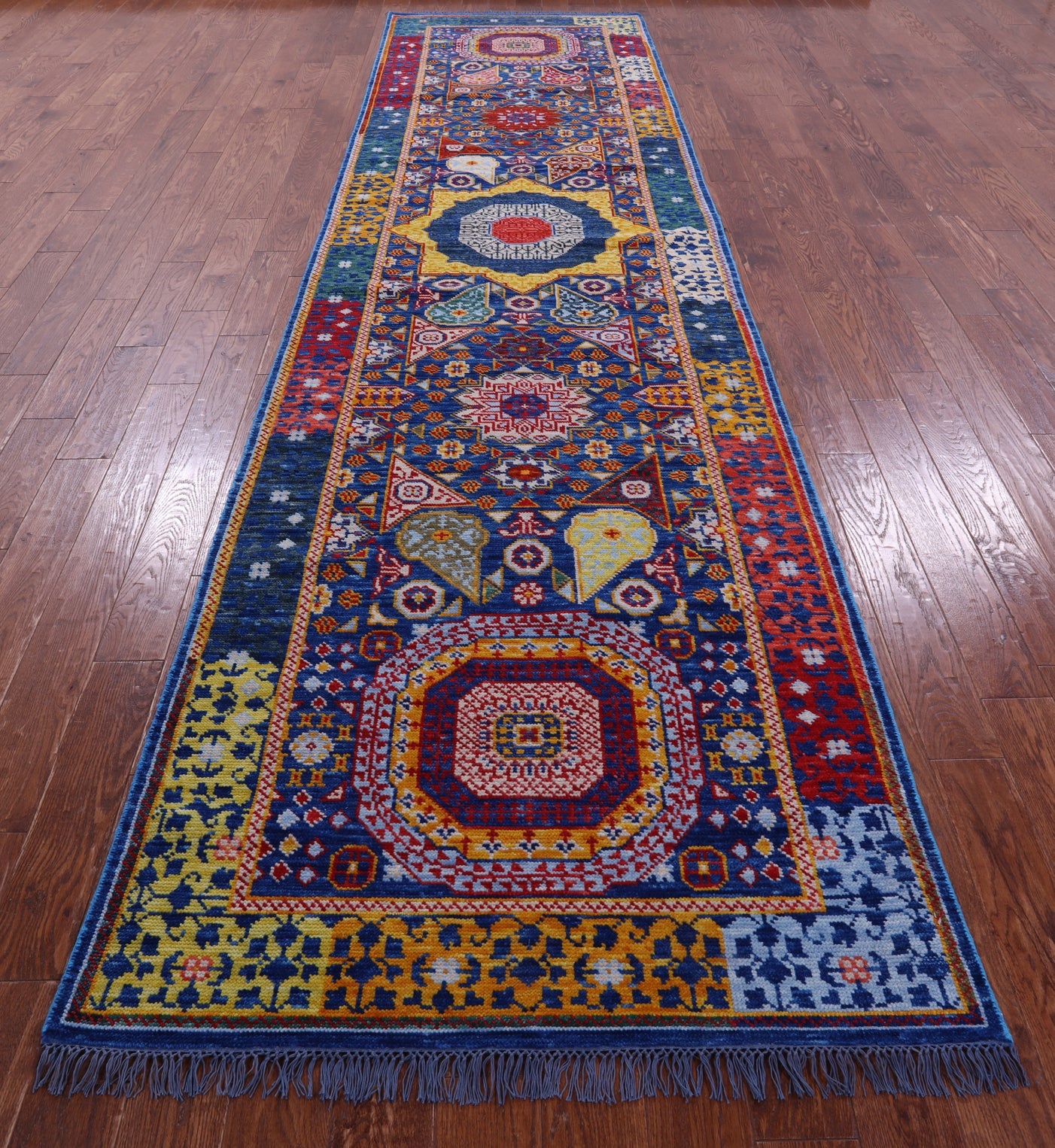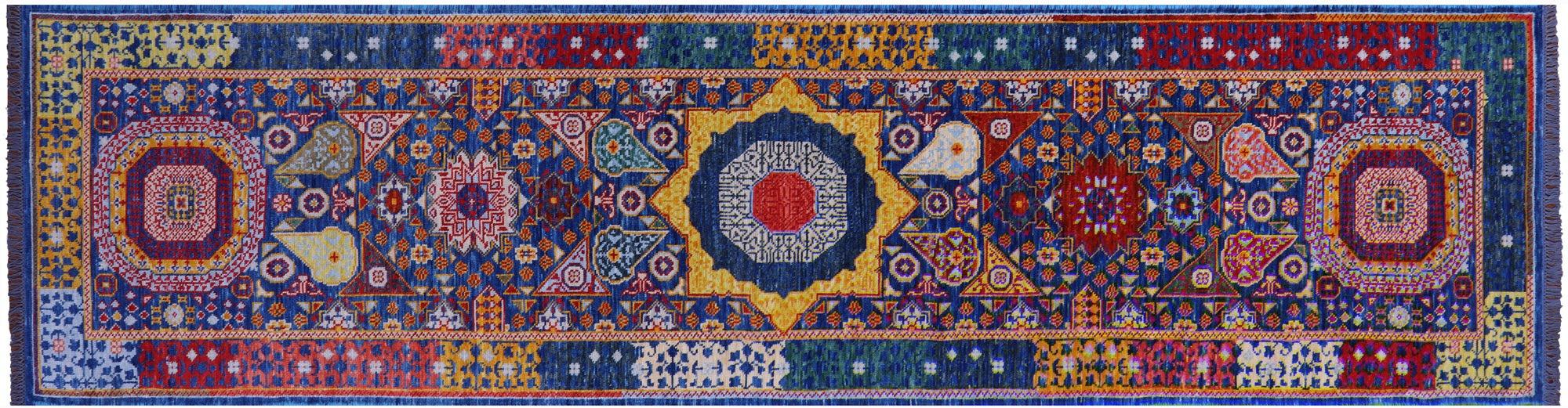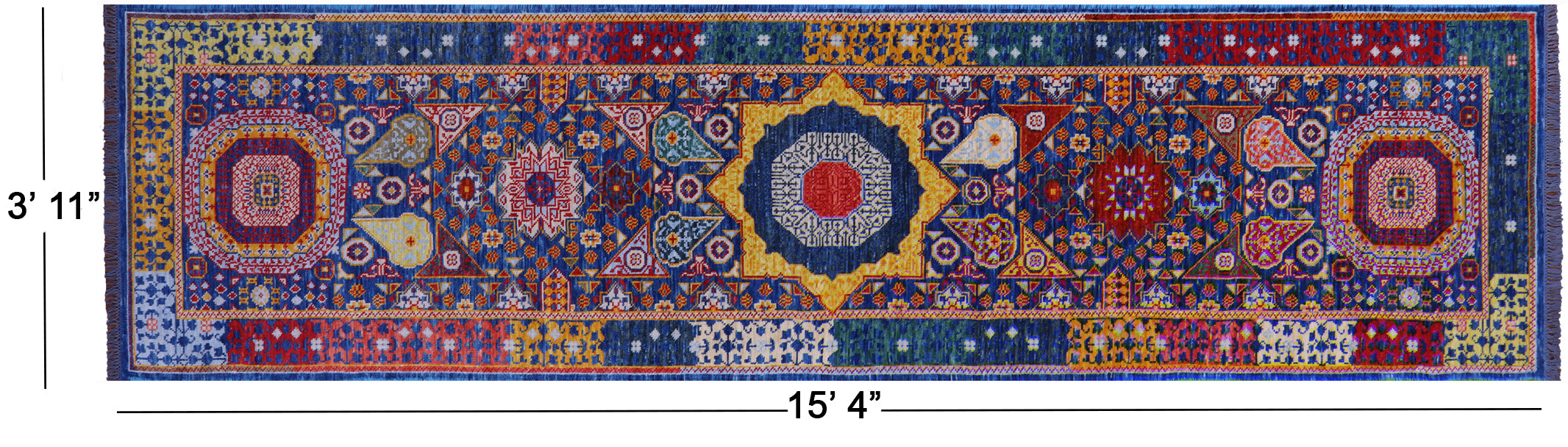 Blue Runner Mamluk Hand Knotted Wool Rug 3' 11" X 15' 4" - Q22358