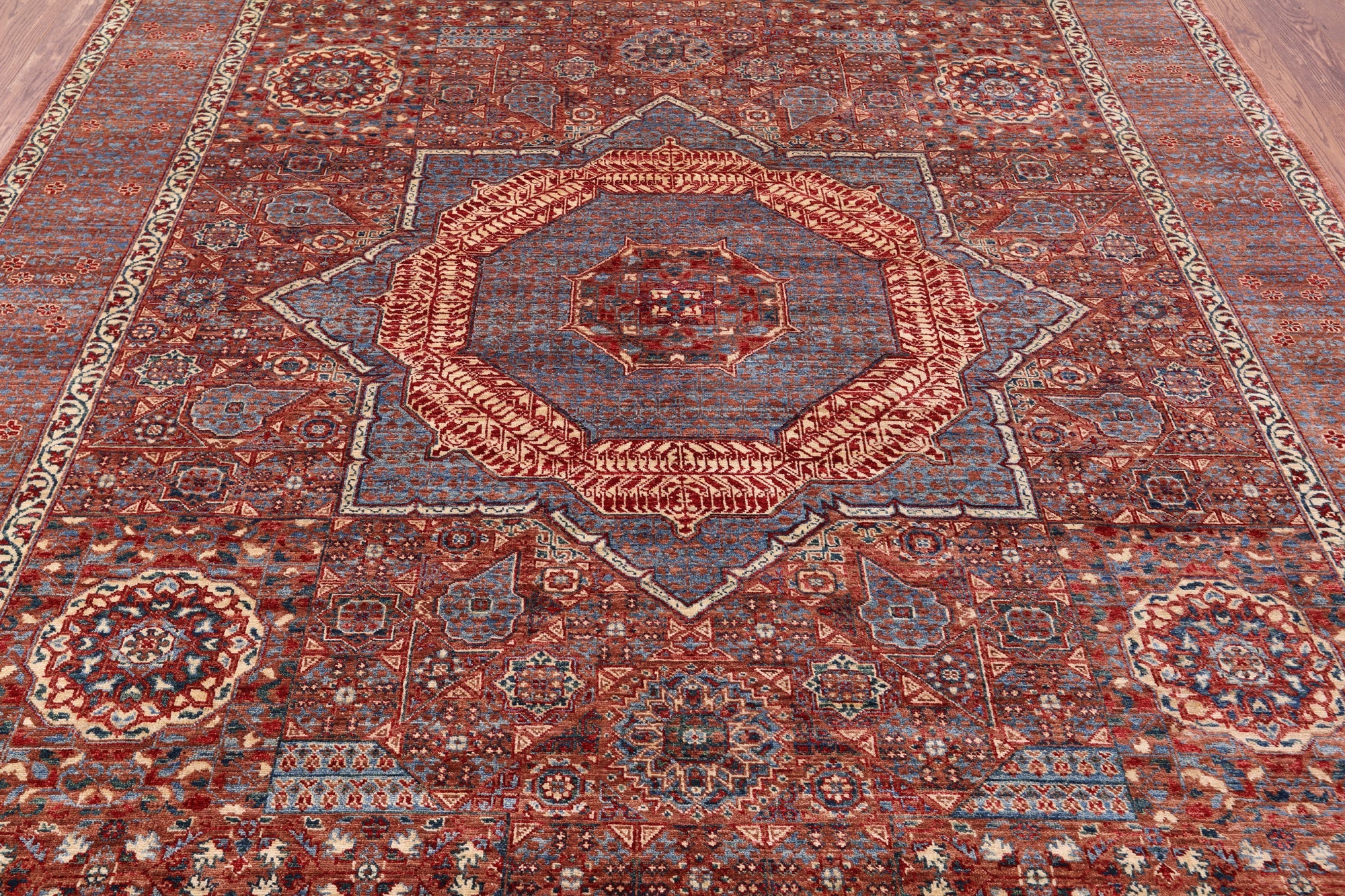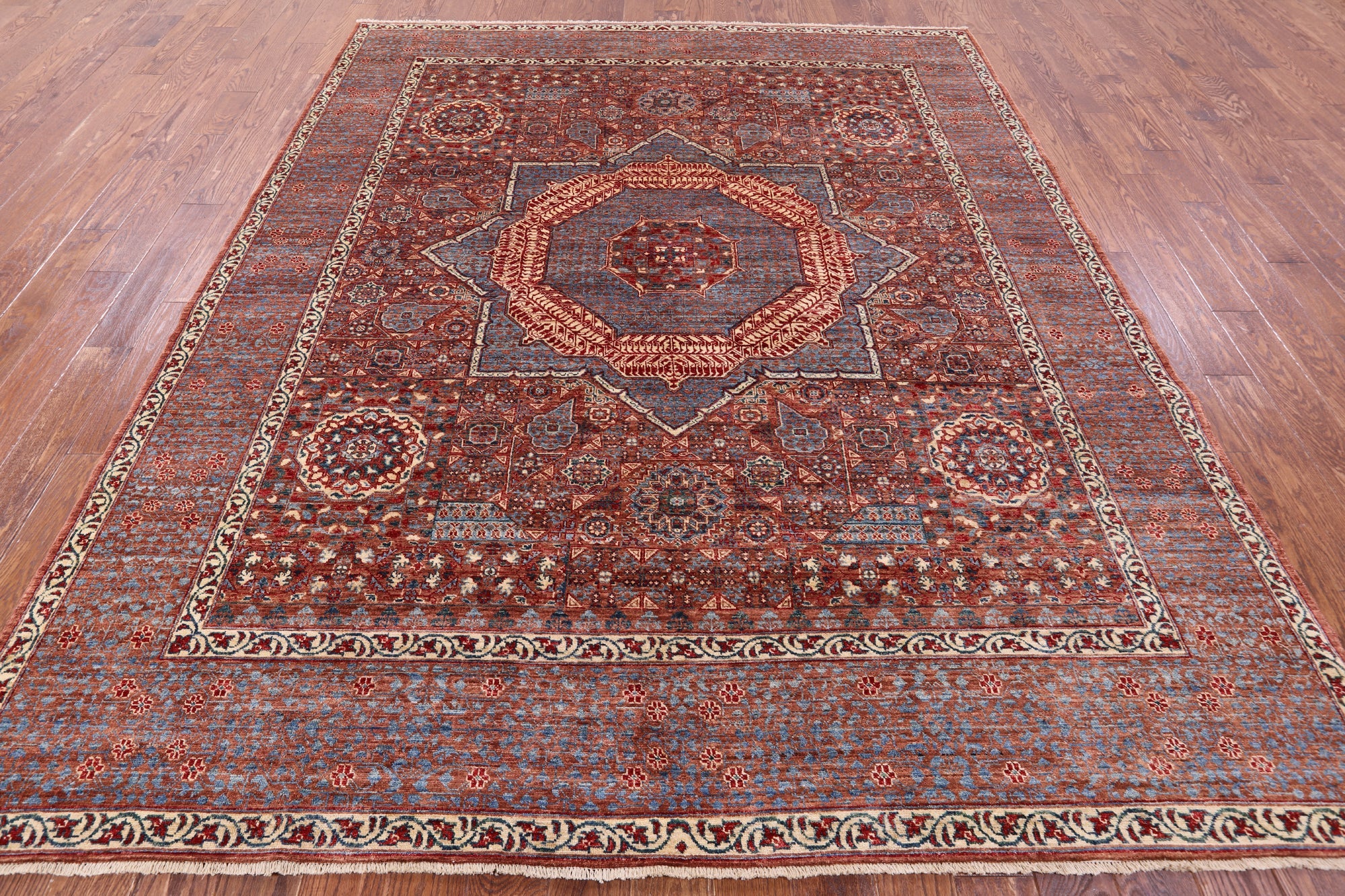 Originating in Cairo, Egypt, Mamluk rugs are prominent for their amazing ability to have extremely symmetrical designs. This creates a splendid mirror-like effect. The medallions can be seen as interlacing stars and polygons, with other geometric patterns surrounding. The colors commonly used for these traditional rugs are blues, rich reds, ivory, and greens.