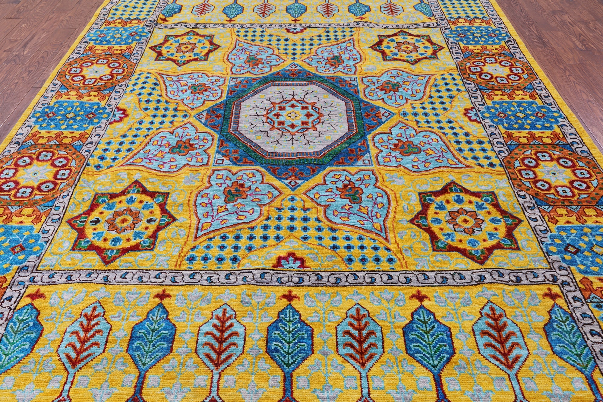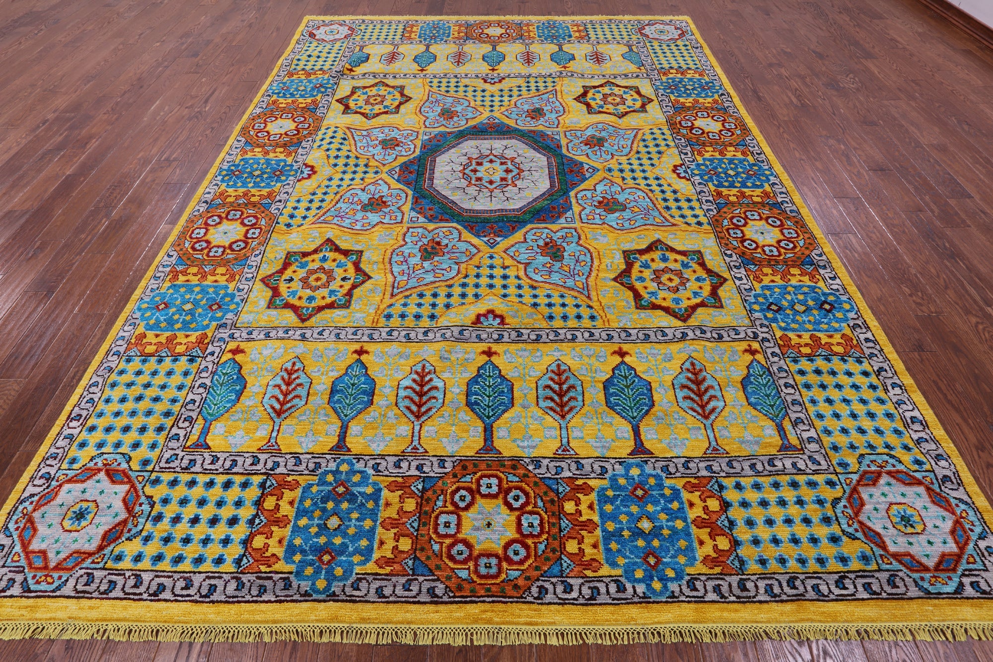 Originating in Cairo, Egypt, Mamluk rugs are prominent for their amazing ability to have extremely symmetrical designs. This creates a splendid mirror-like effect. The medallions can be seen as interlacing stars and polygons, with other geometric patterns surrounding. The colors commonly used for these traditional rugs are blues, rich reds, ivory, and greens.