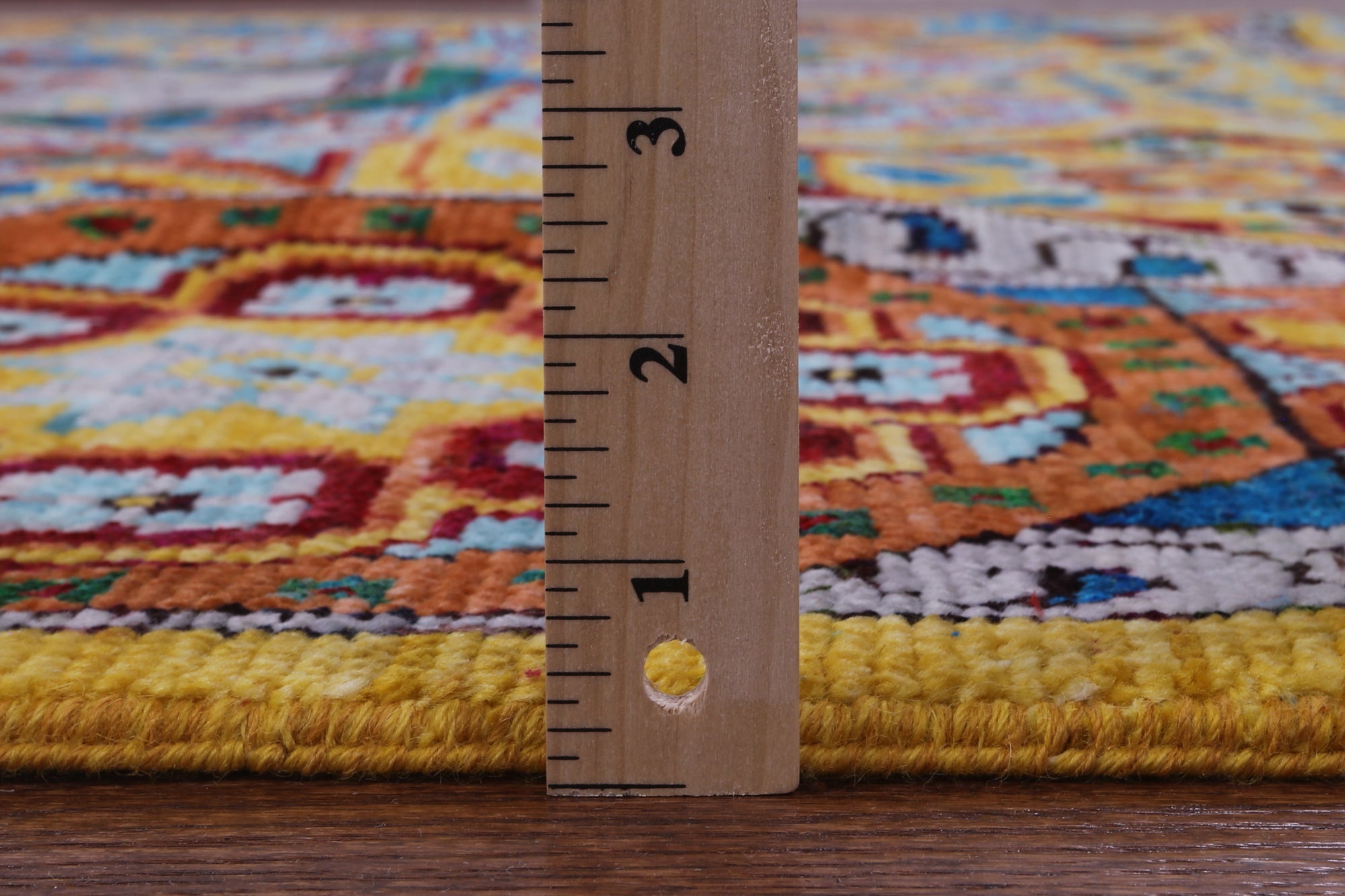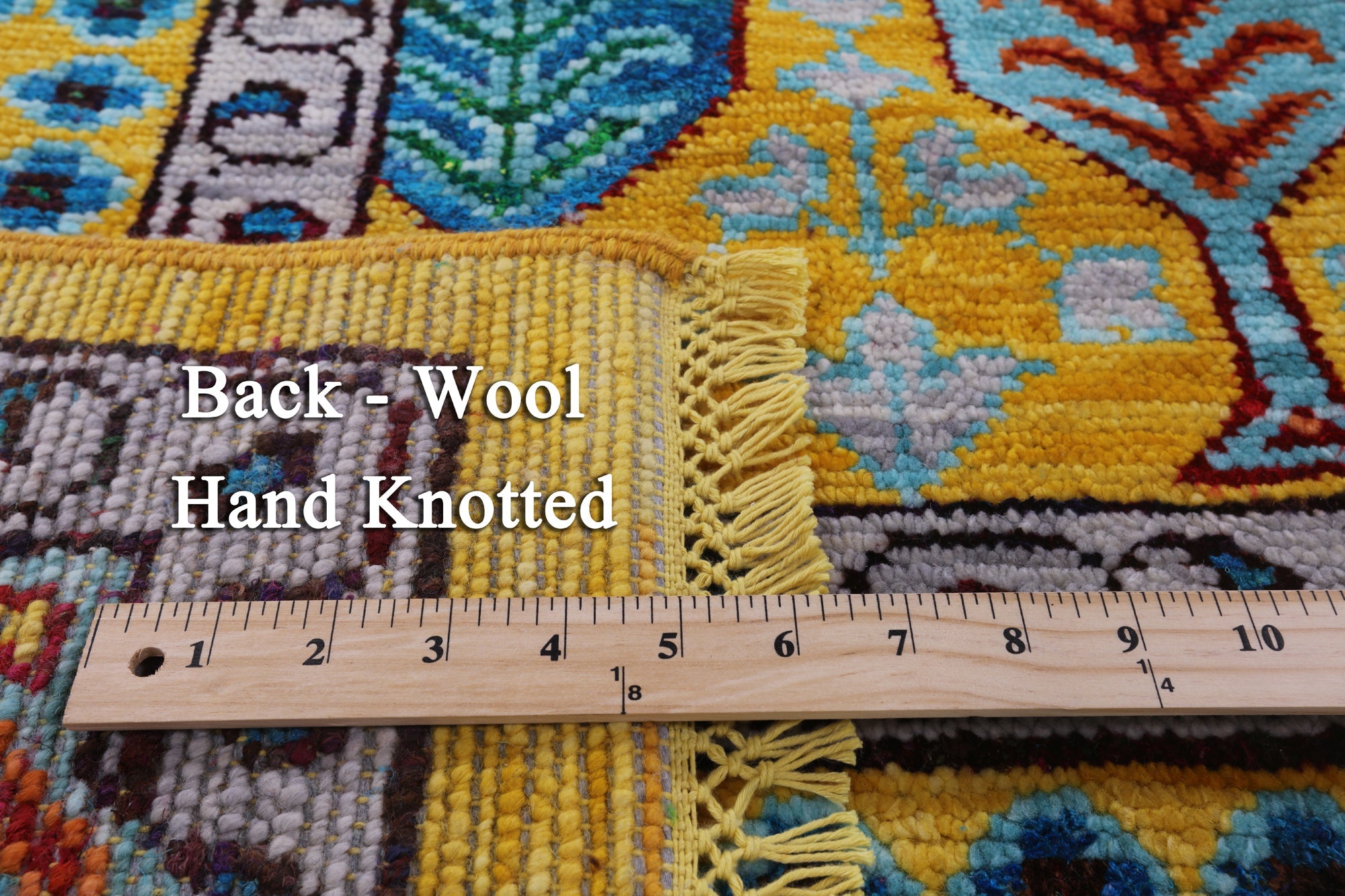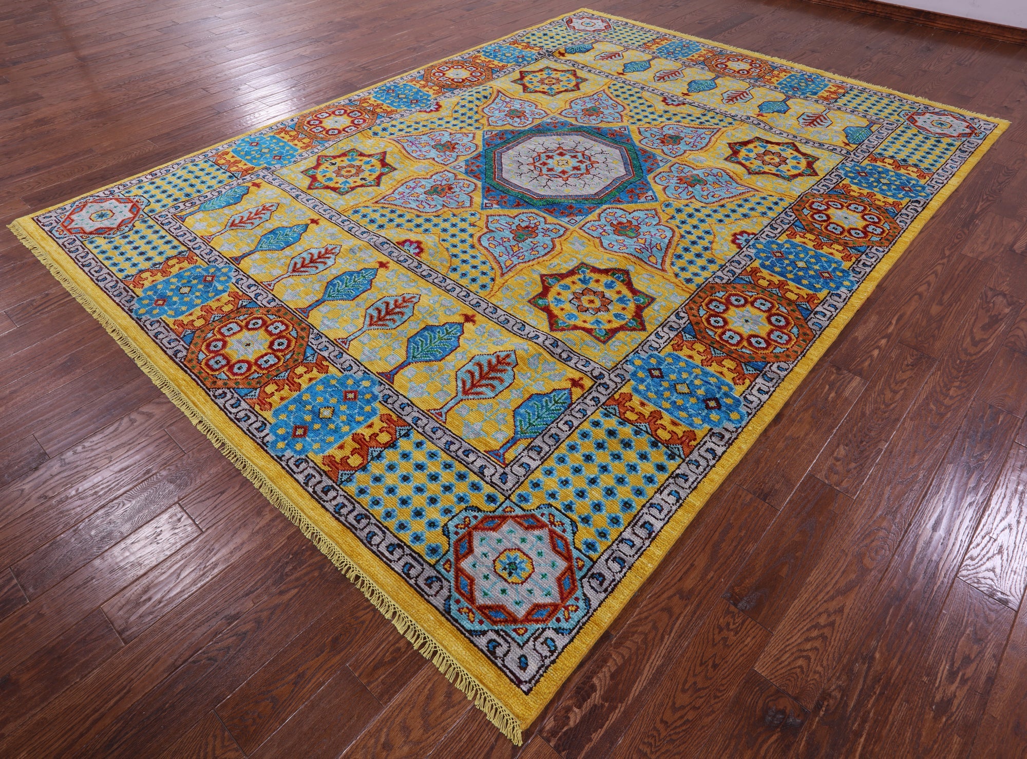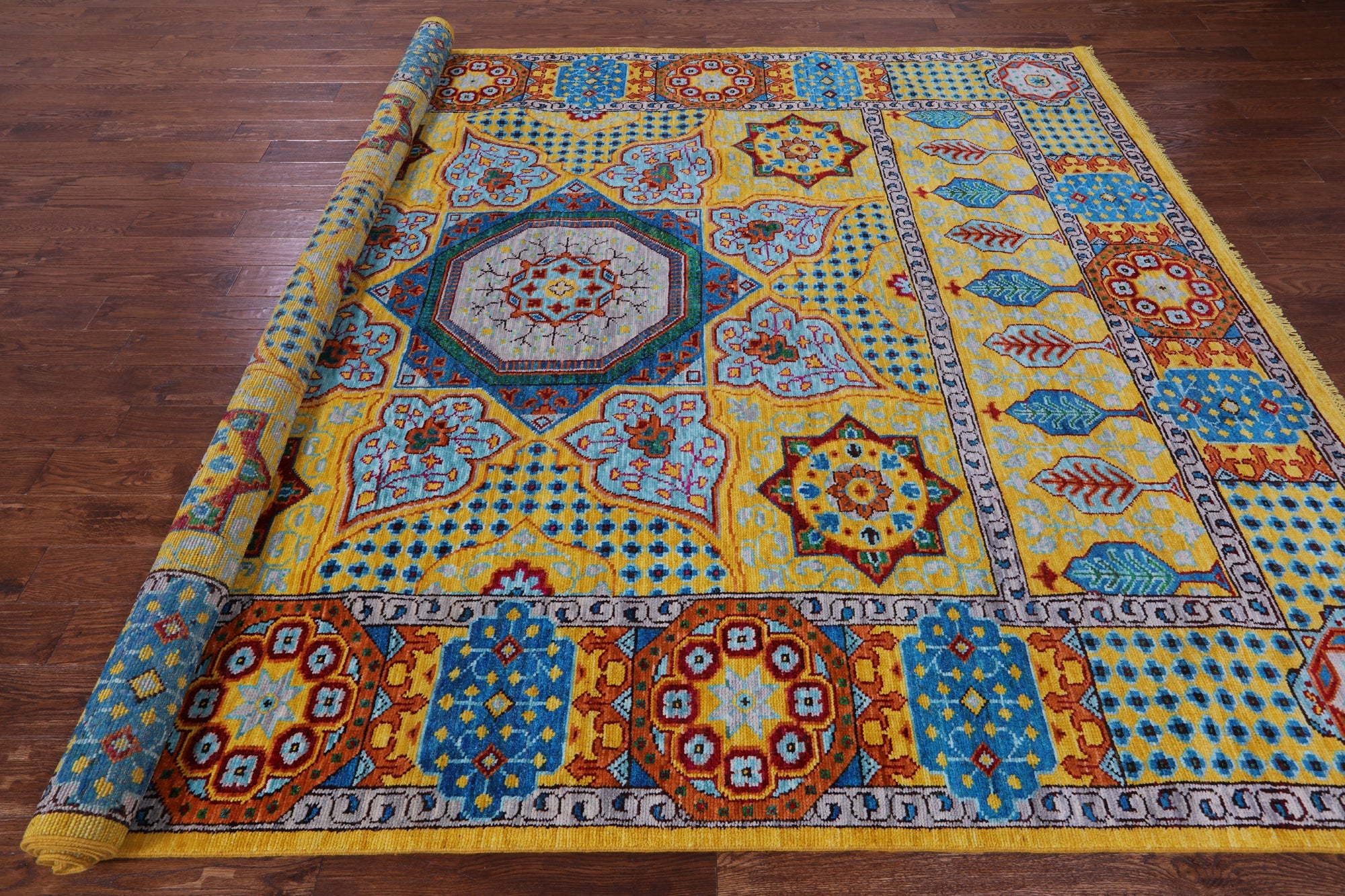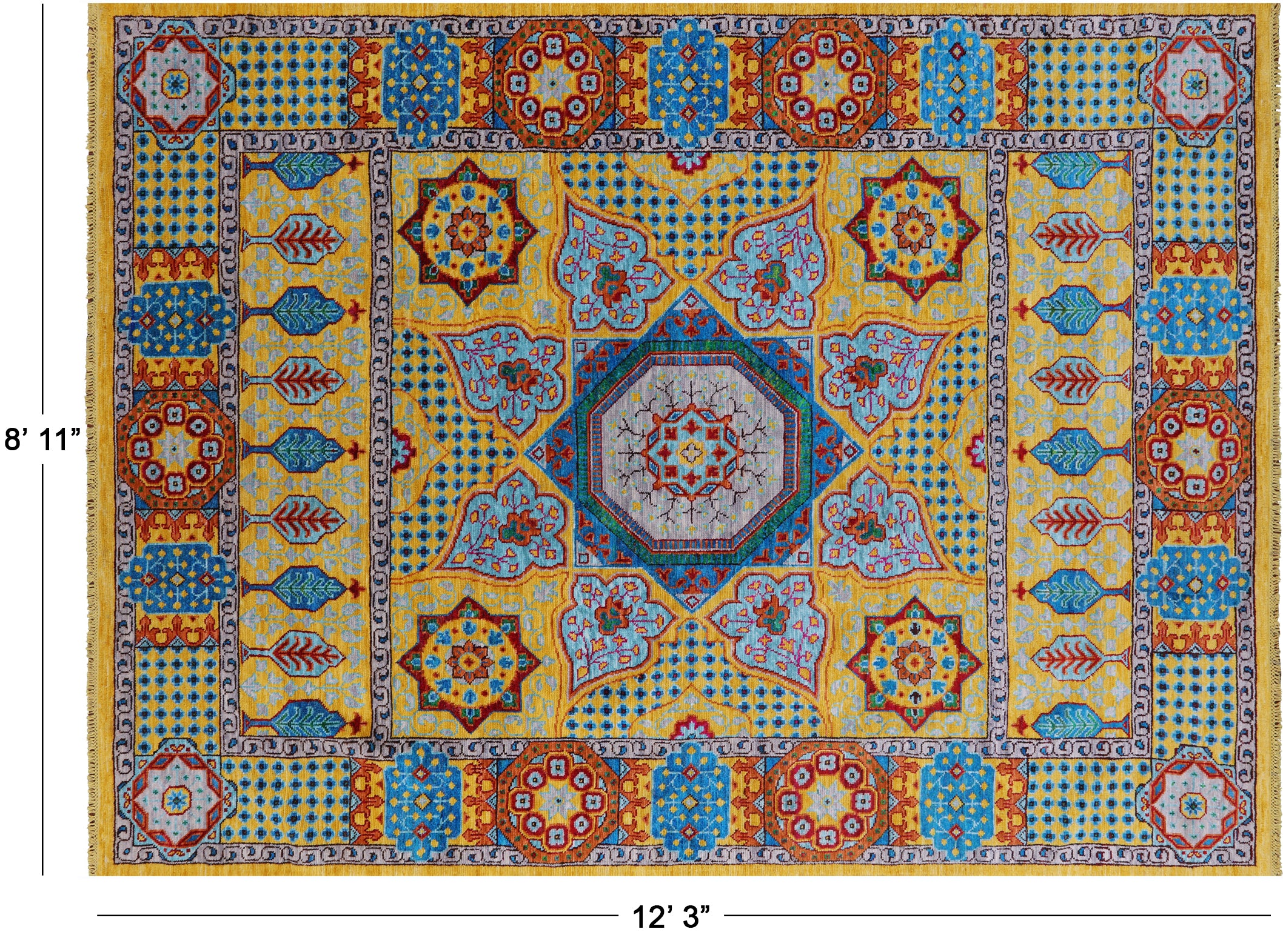 Gold Hand Knotted Geometric Mamluk Wool Rug 8' 11" X 12' 3" - Q20078