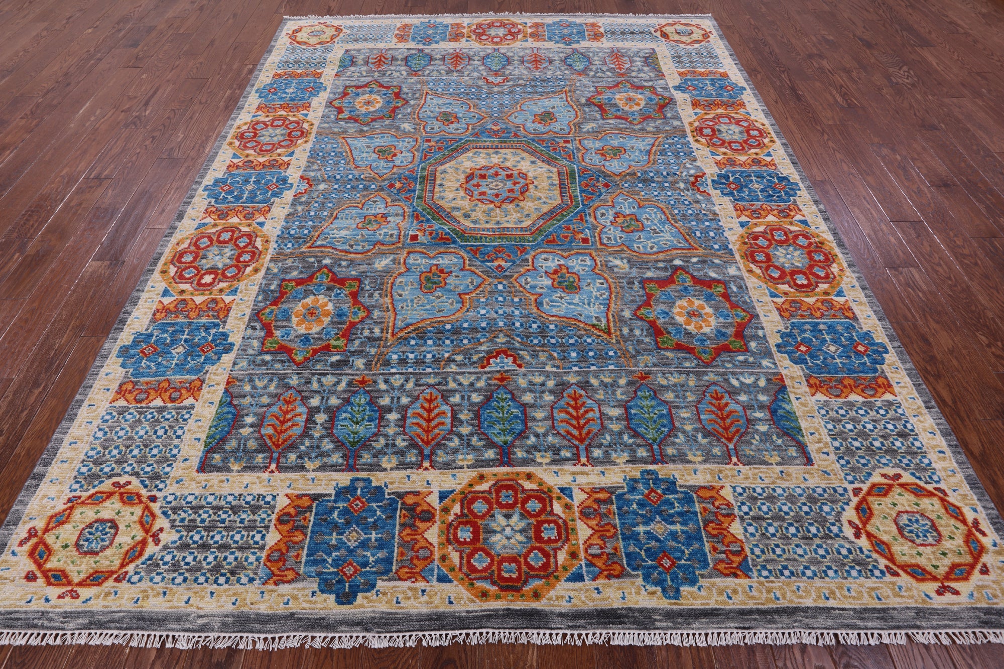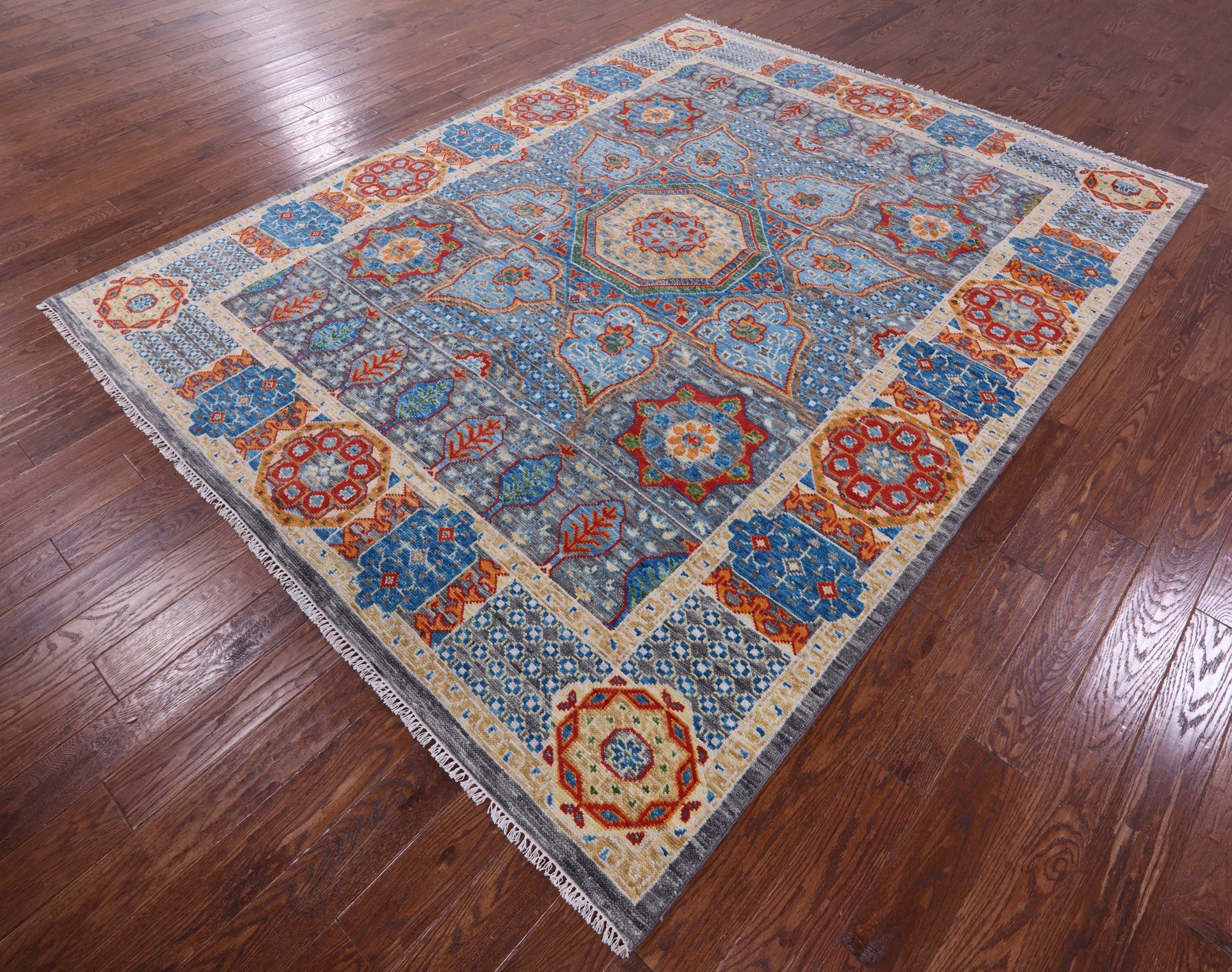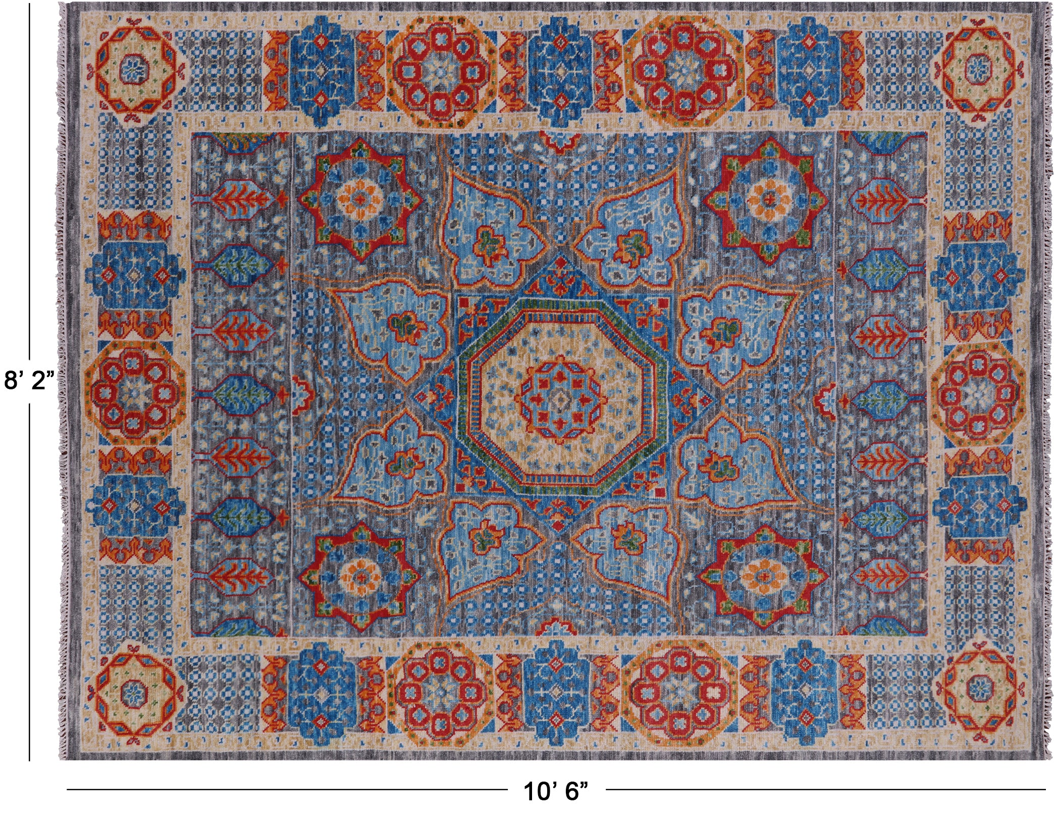 Grey Mamluk Handmade Wool Rug 8' 2" X 10' 6" - Q19994 is backordered and will ship as soon as it is back in stock.