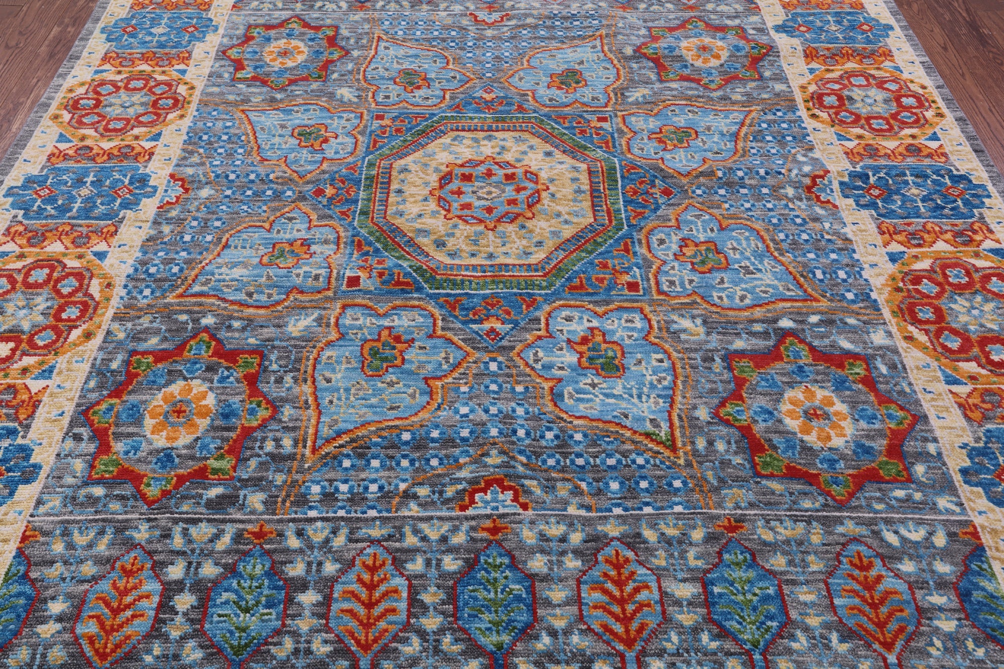 Originating in Cairo, Egypt, Mamluk rugs are prominent for their amazing ability to have extremely symmetrical designs. This creates a splendid mirror-like effect. The medallions can be seen as interlacing stars and polygons, with other geometric patterns surrounding. The colors commonly used for these traditional rugs are blues, rich reds, ivory, and greens.