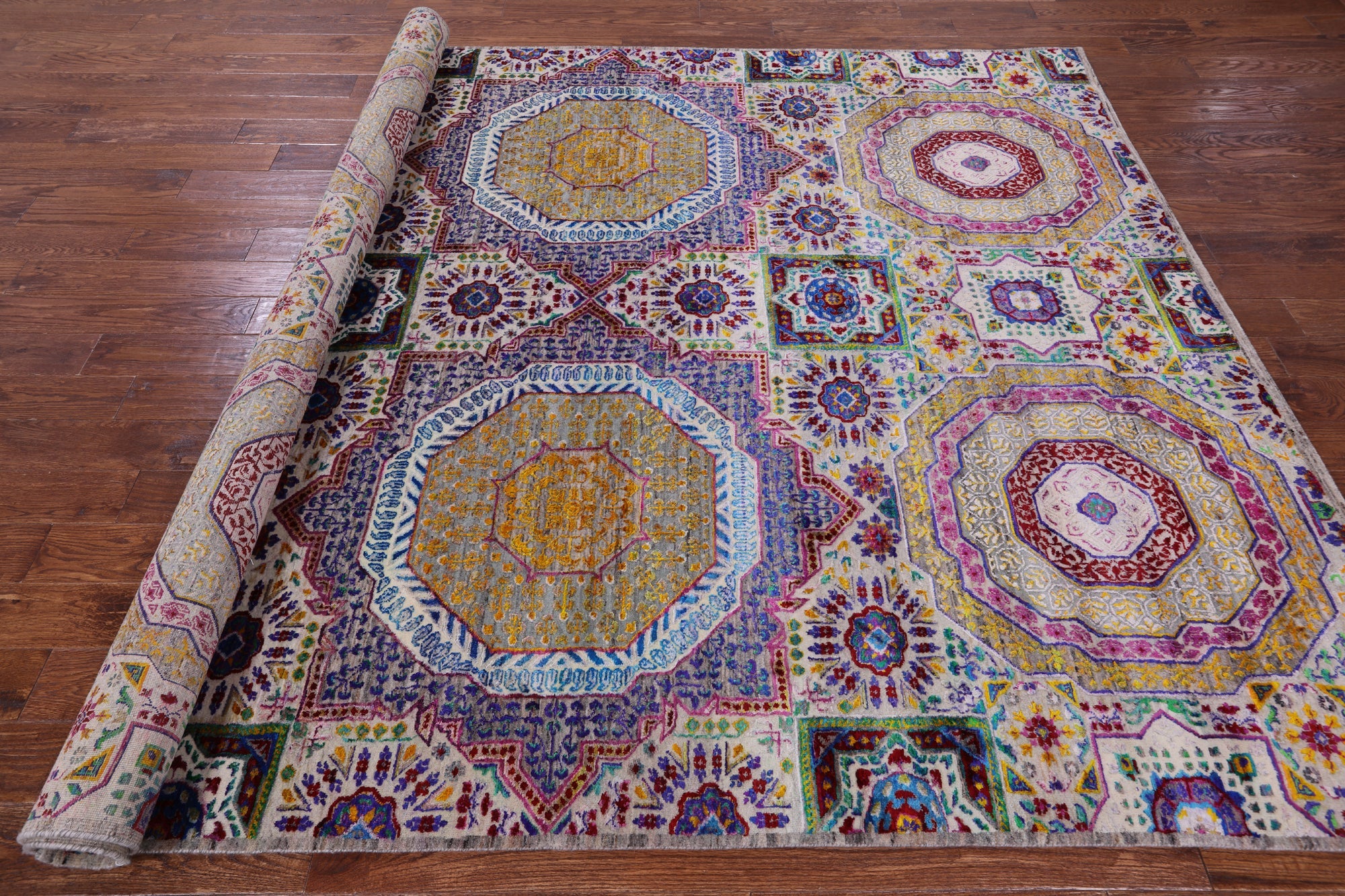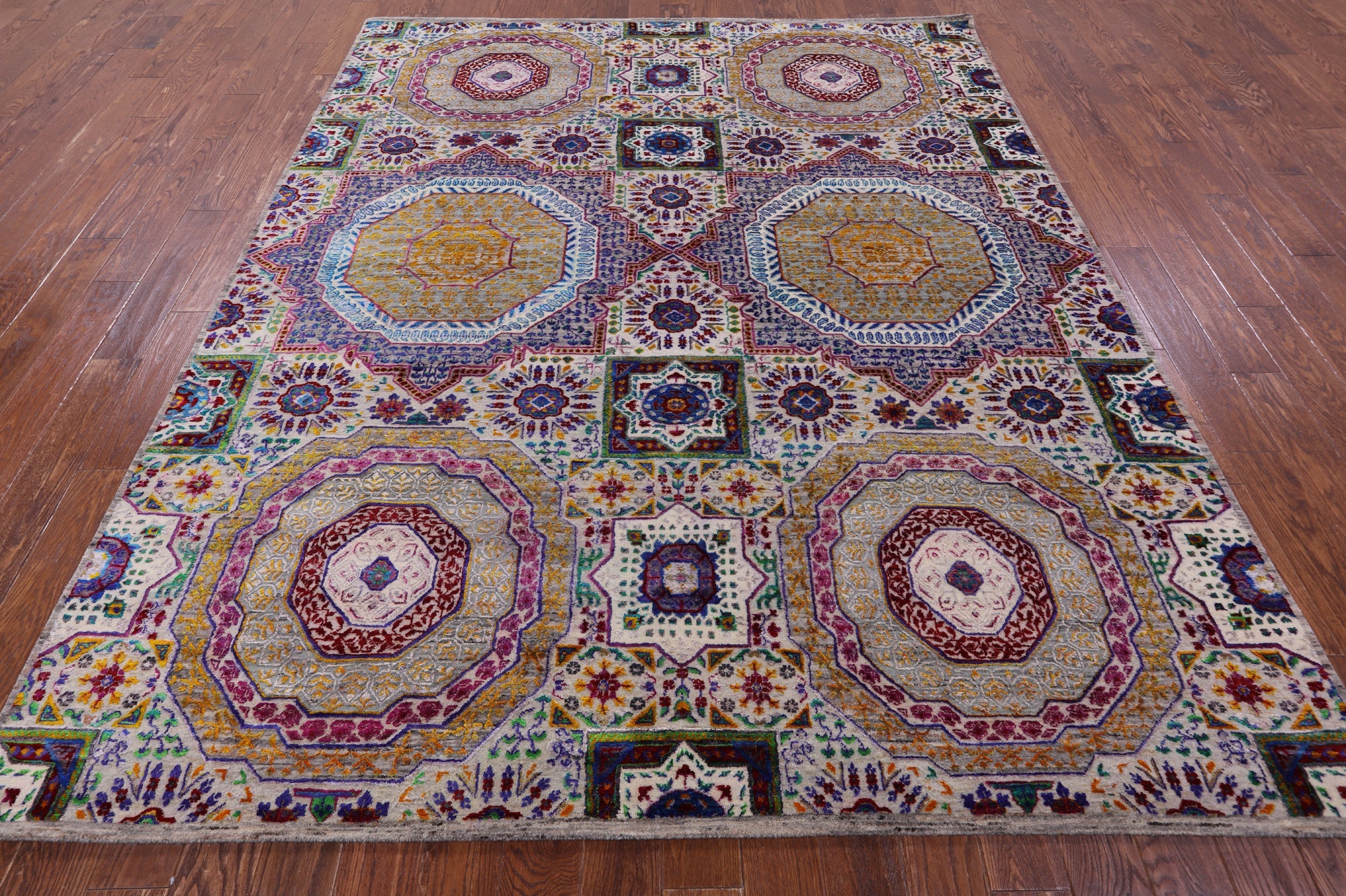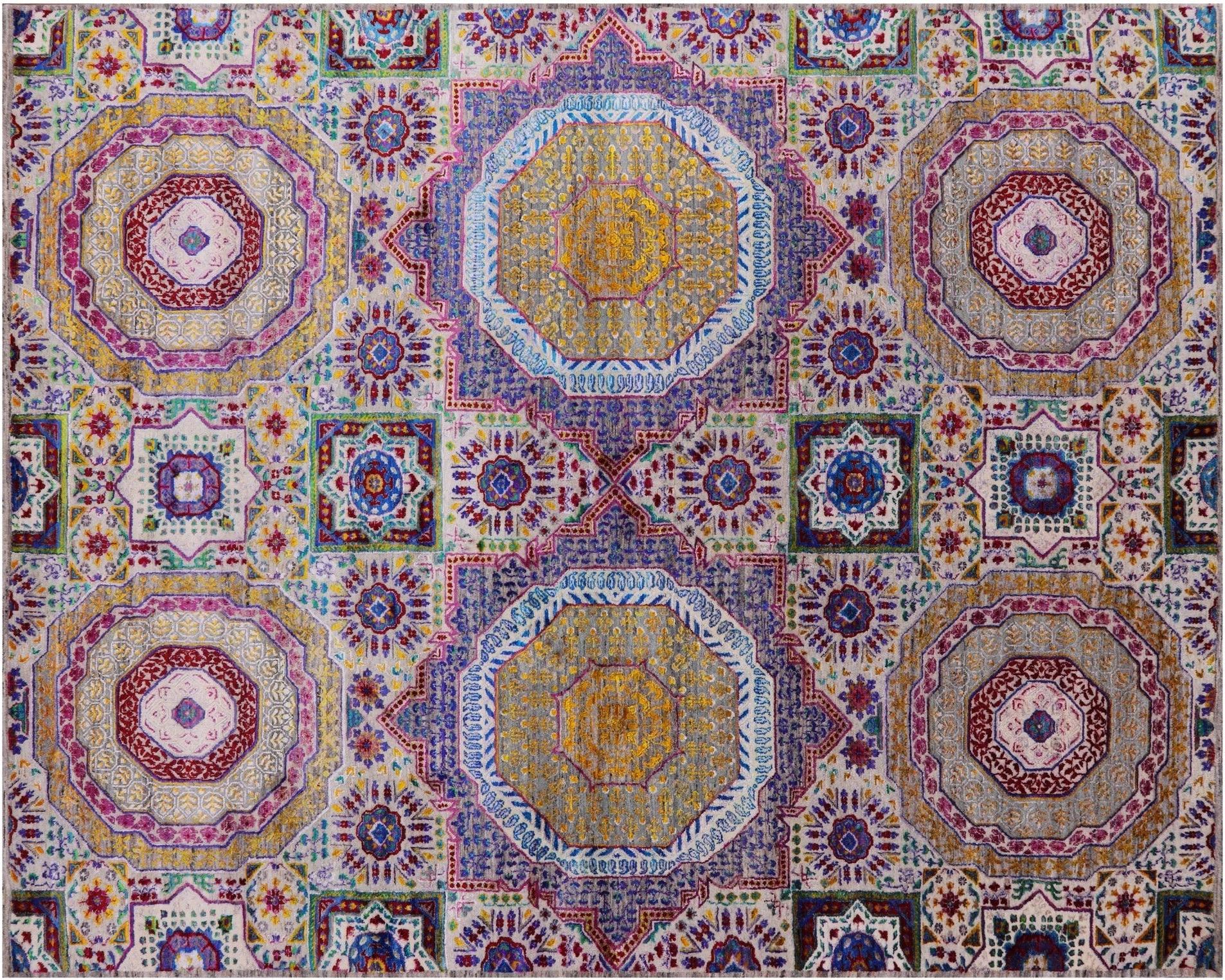 Hand Knotted Mamluk Wool & Silk Rug 7' 11" X 9' 9" - Q13716