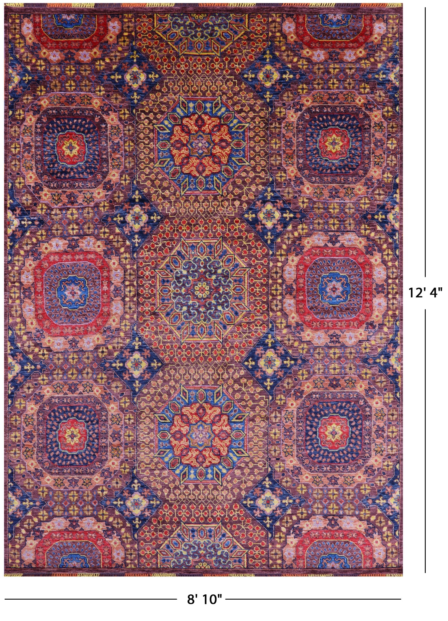 Handmade Geometric Mamluk Wool Rug 8' 10" X 12' 4" - Q12109 is backordered and will ship as soon as it is back in stock.