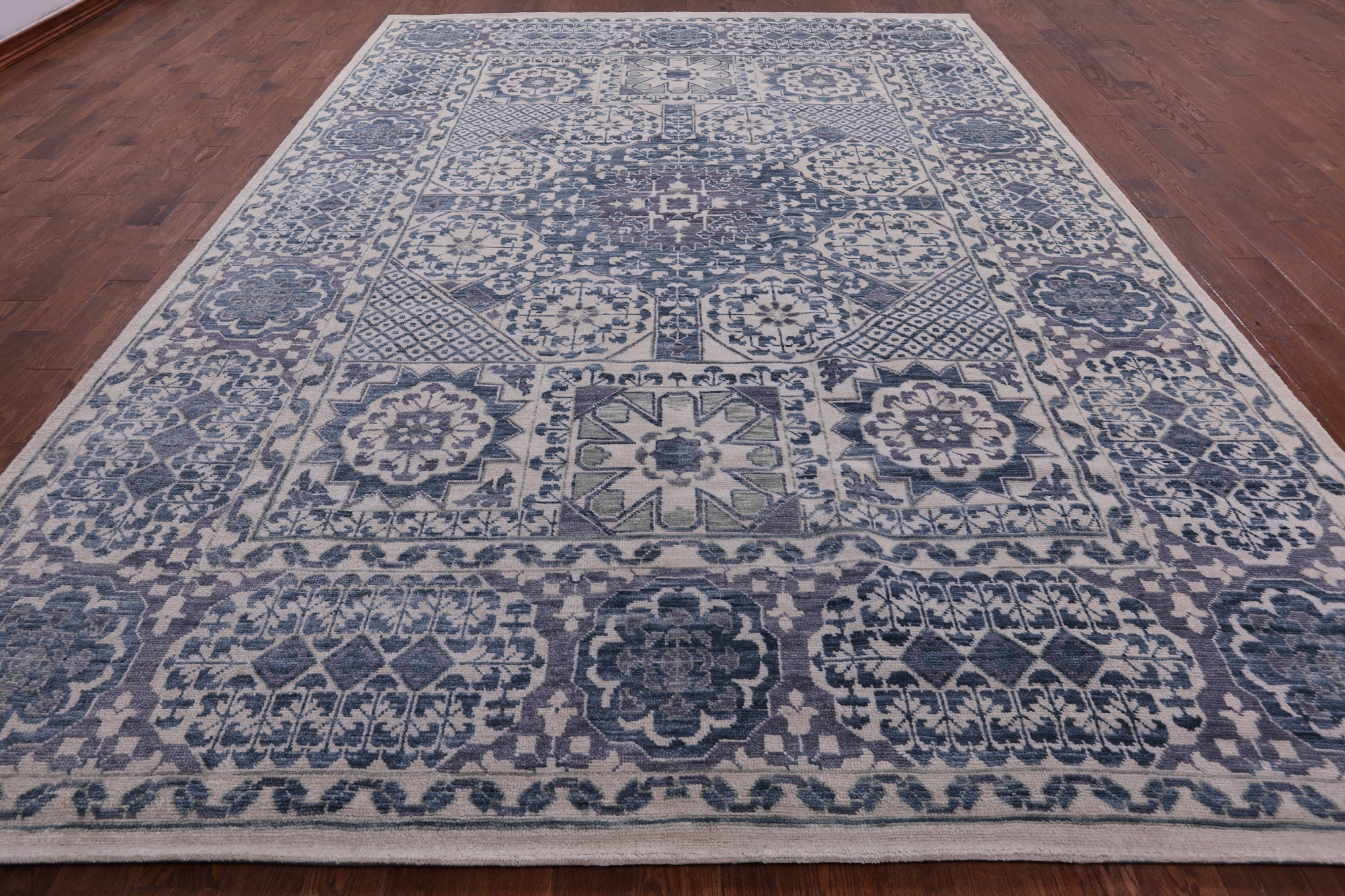 Ivory Mamluk Hand Knotted Wool Rug 10' 2" X 14' 0" - Q6892 is backordered and will ship as soon as it is back in stock.