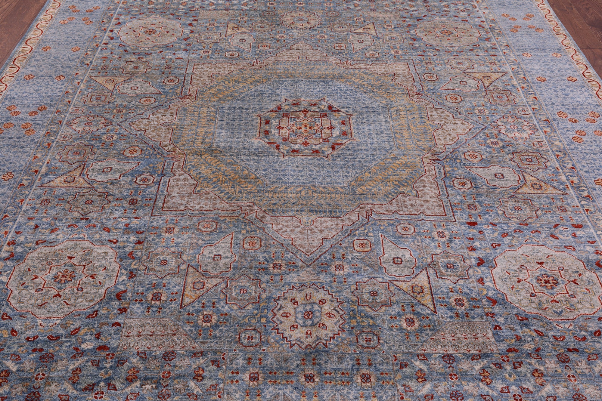 Originating in Cairo, Egypt, Mamluk rugs are prominent for their amazing ability to have extremely symmetrical designs. This creates a splendid mirror-like effect. The medallions can be seen as interlacing stars and polygons, with other geometric patterns surrounding. The colors commonly used for these traditional rugs are blues, rich reds, ivory, and greens.