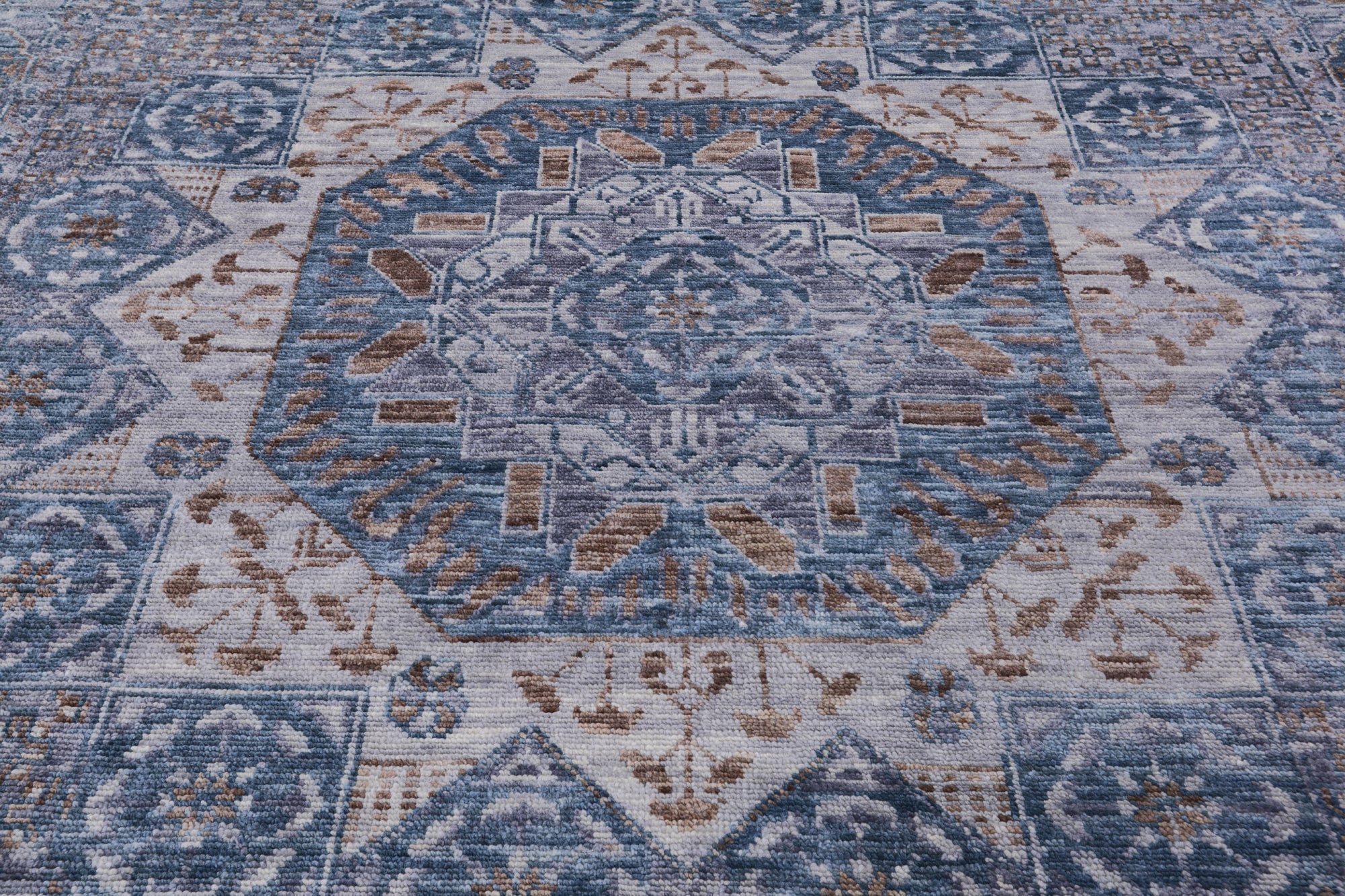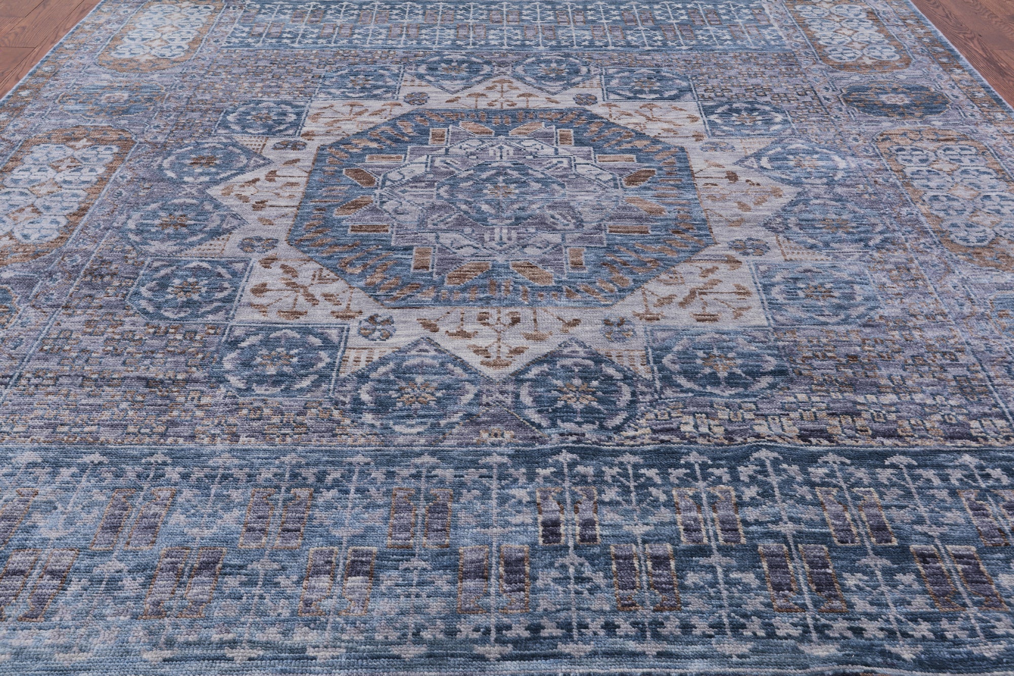 Originating in Cairo, Egypt, Mamluk rugs are prominent for their amazing ability to have extremely symmetrical designs. This creates a splendid mirror-like effect. The medallions can be seen as interlacing stars and polygons, with other geometric patterns surrounding. The colors commonly used for these traditional rugs are blues, rich reds, ivory, and greens.