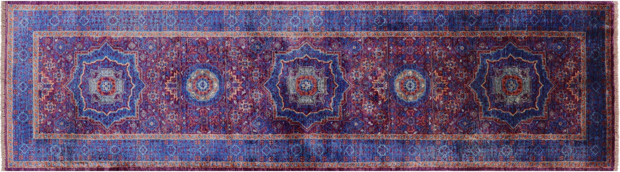 Purple 2' 8" X 9' 10" Runner Mamluk Handmade Wool Rug - Q12629