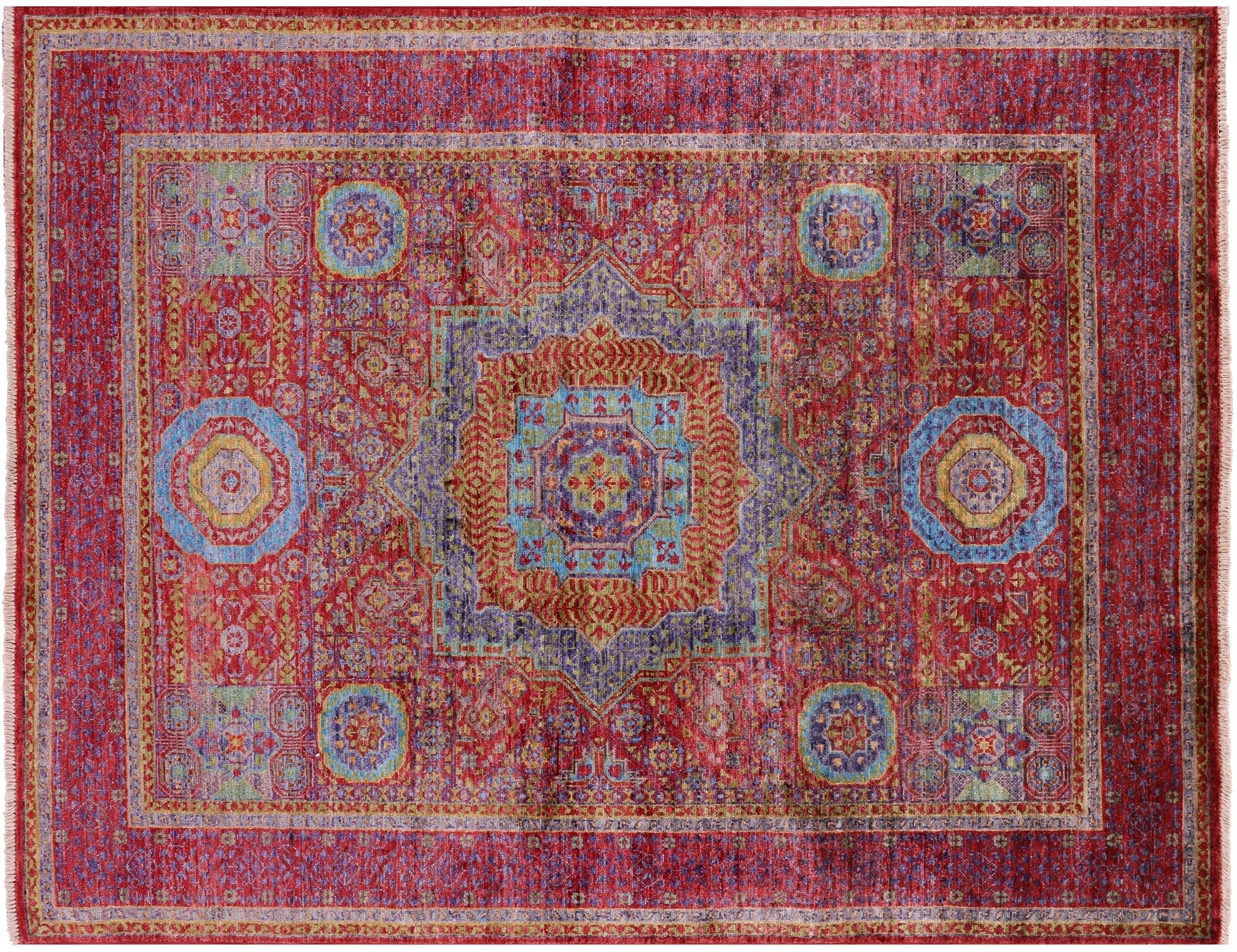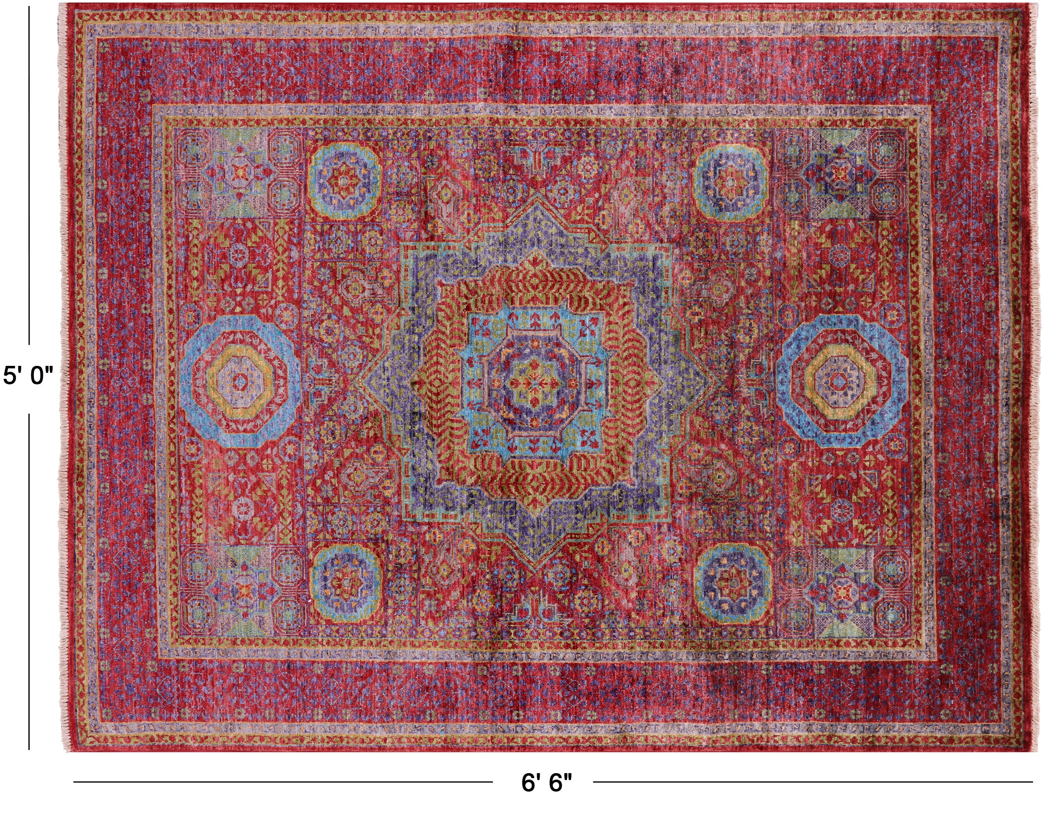 Red Geometric Mamluk Handmade Wool Rug 5' 0" X 6' 6" - Q14198