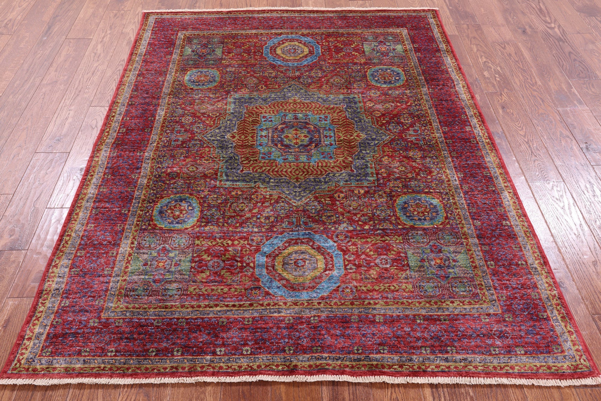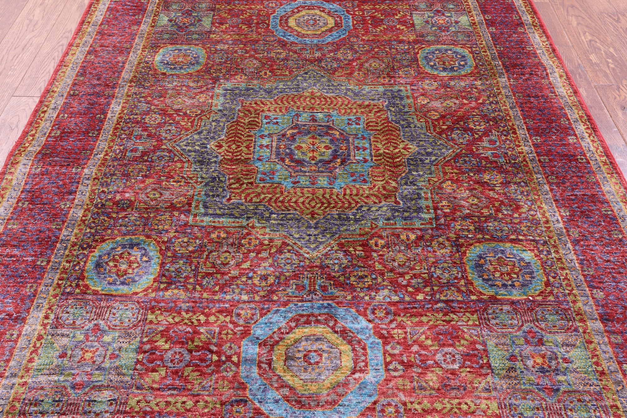 Red Geometric Mamluk Handmade Wool Rug 5' 0" X 6' 6" - Q14198 is backordered and will ship as soon as it is back in stock.