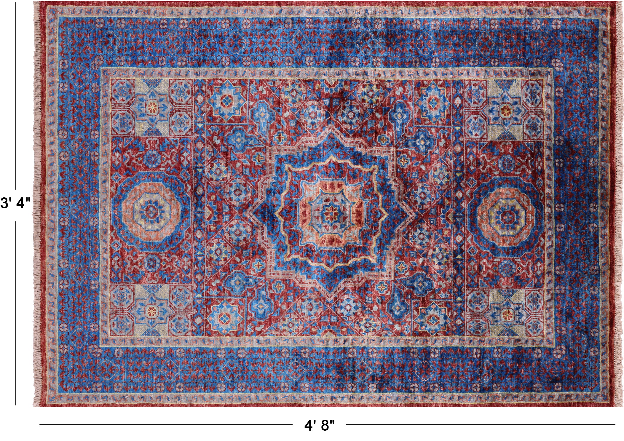Red 3' 4" X 4' 8" Hand-Knotted Mamluk Geometric Wool Rug - Q14124