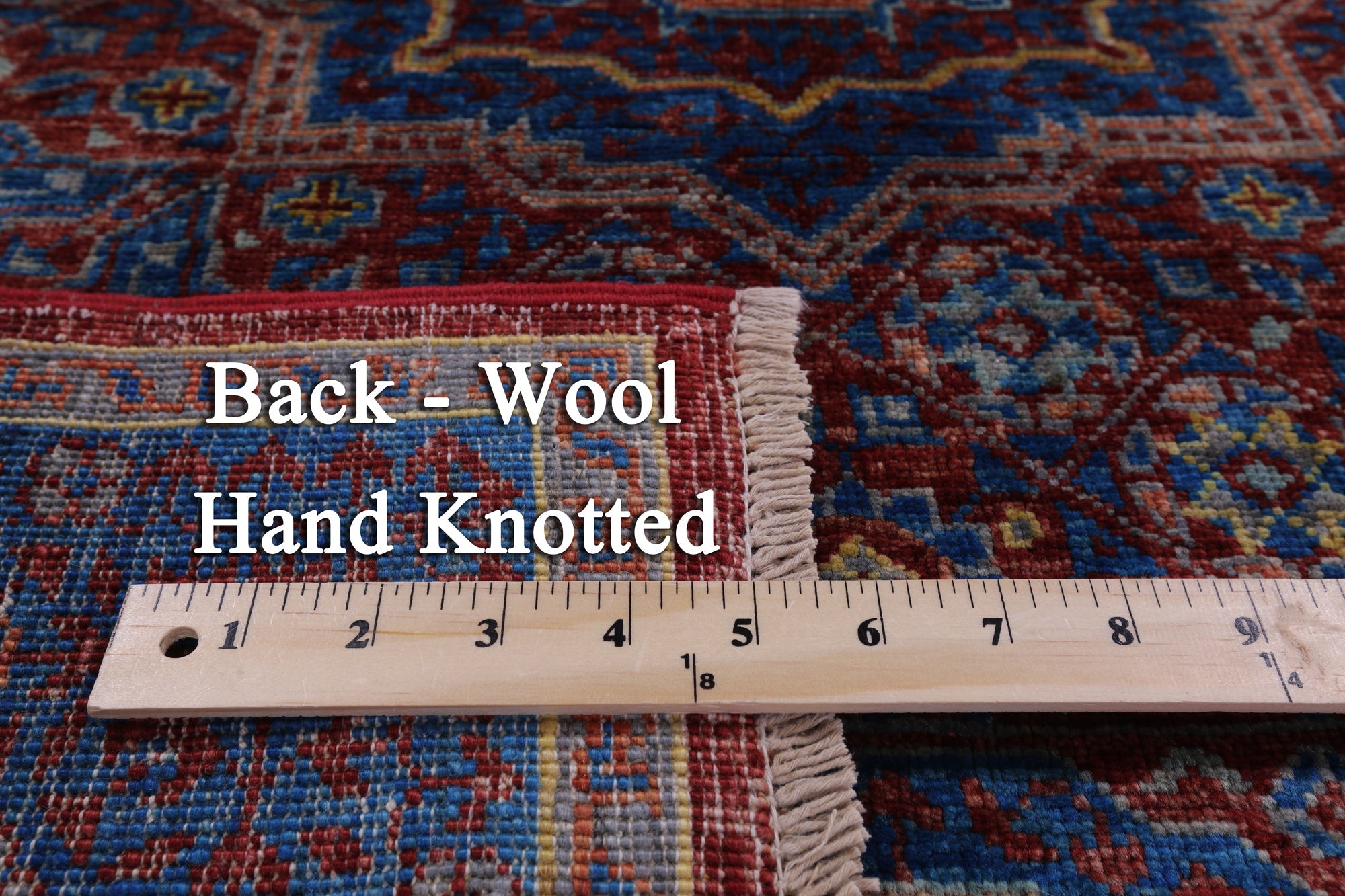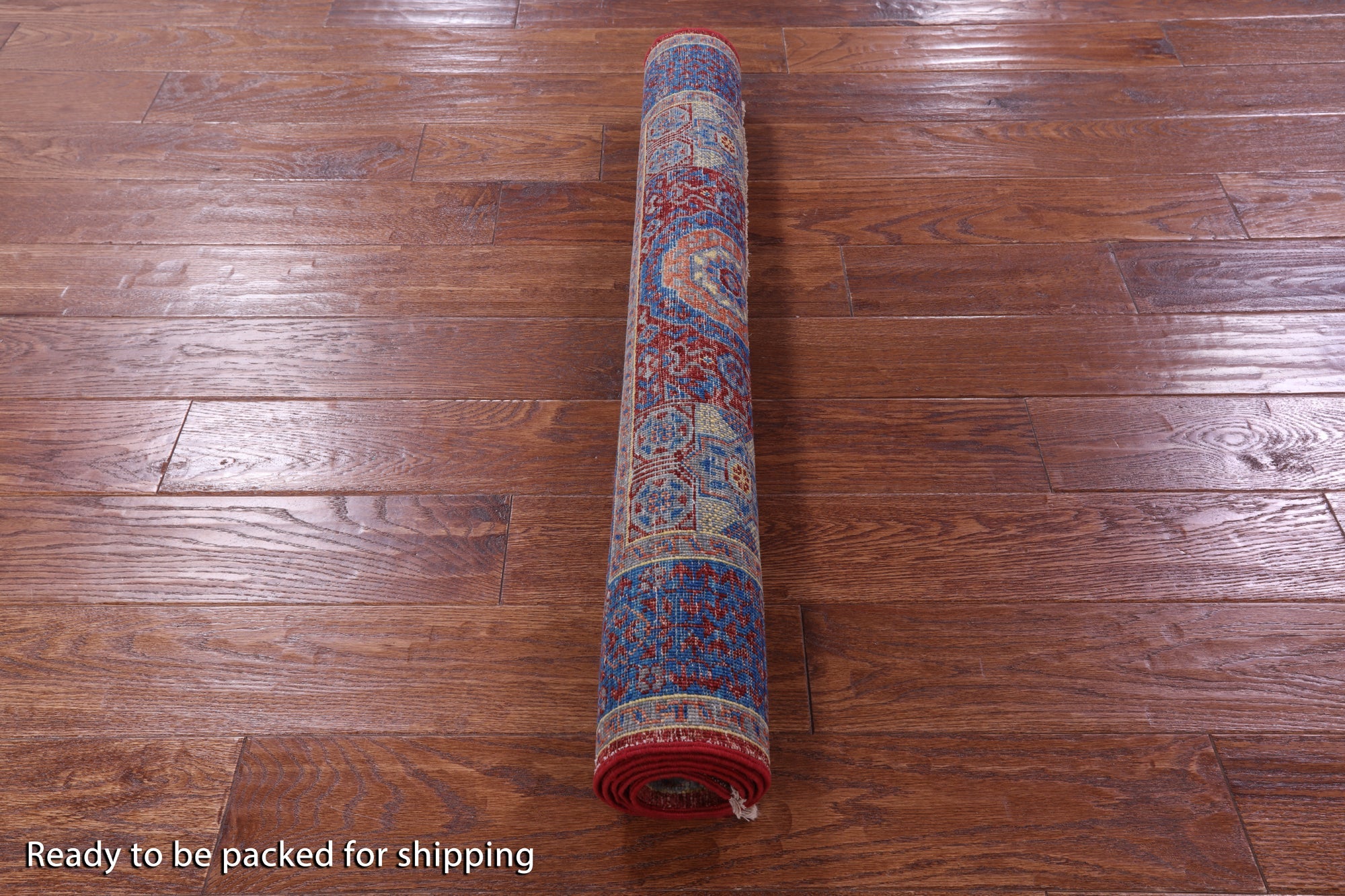 Red 3' 4" X 4' 8" Hand-Knotted Mamluk Geometric Wool Rug - Q14124 is backordered and will ship as soon as it is back in stock.