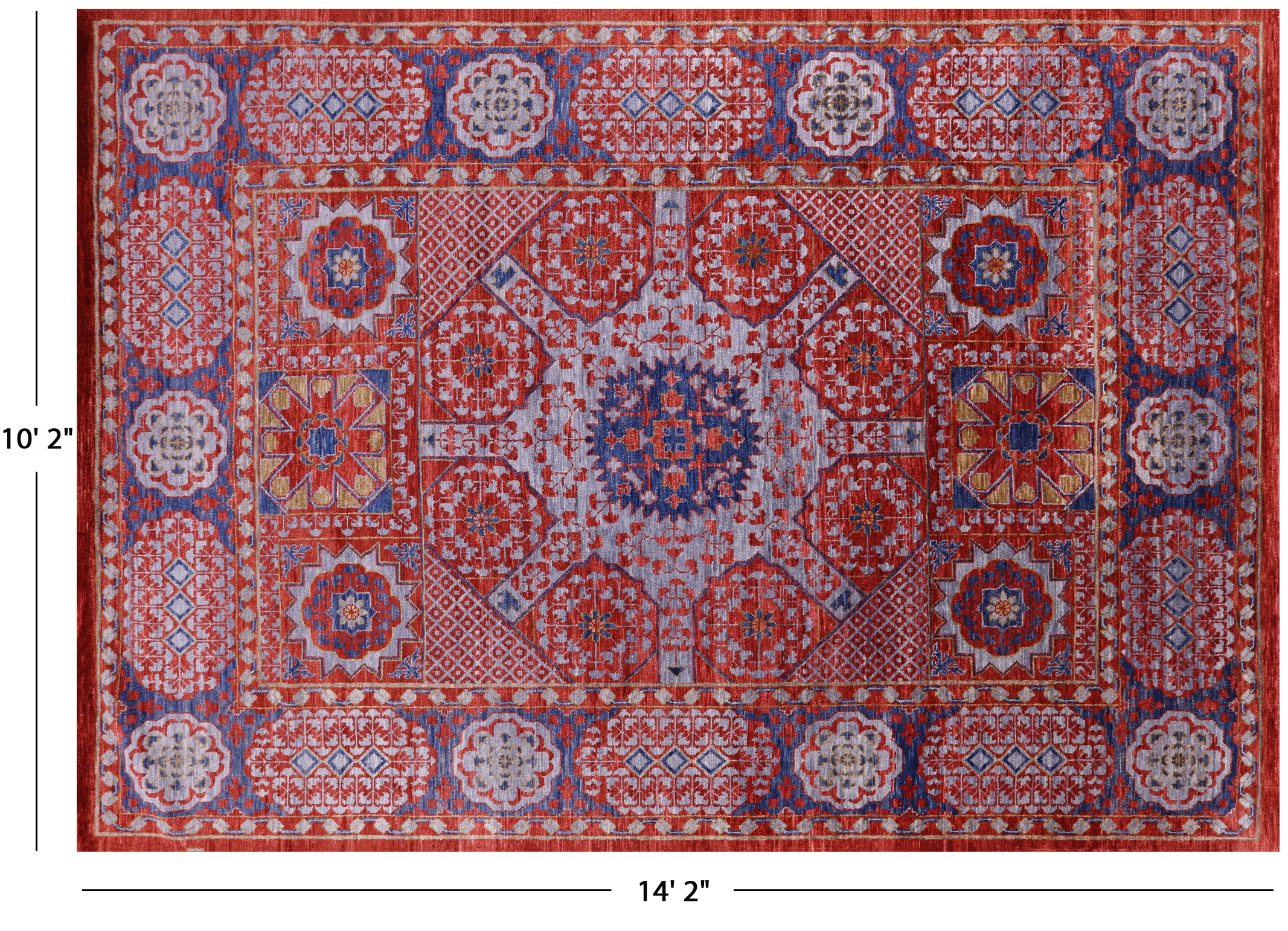 Red 10' 2" X 14' 2" Handmade Mamluk Wool Rug - Q6927