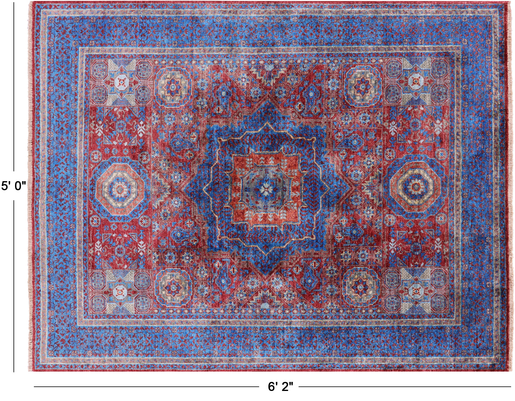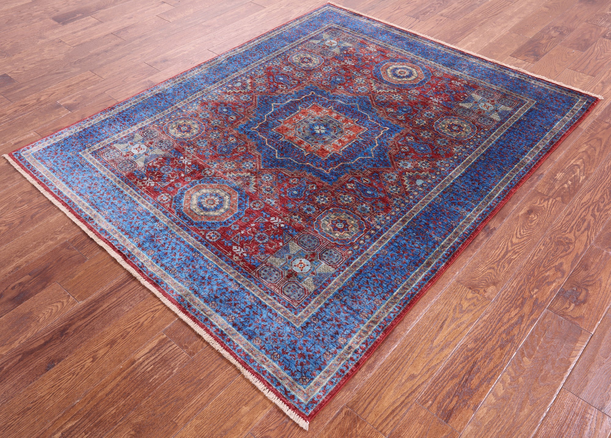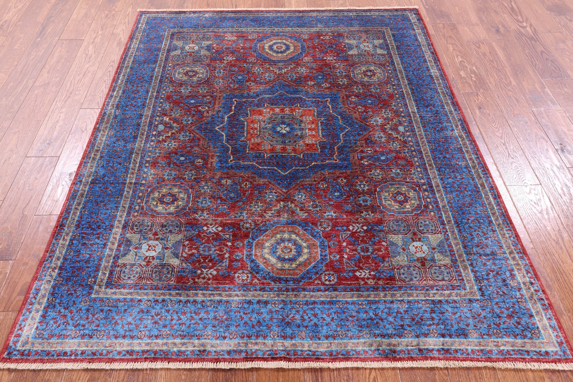 Red 5' 0" X 6' 2" Mamluk Handmade Wool Rug - Q13982