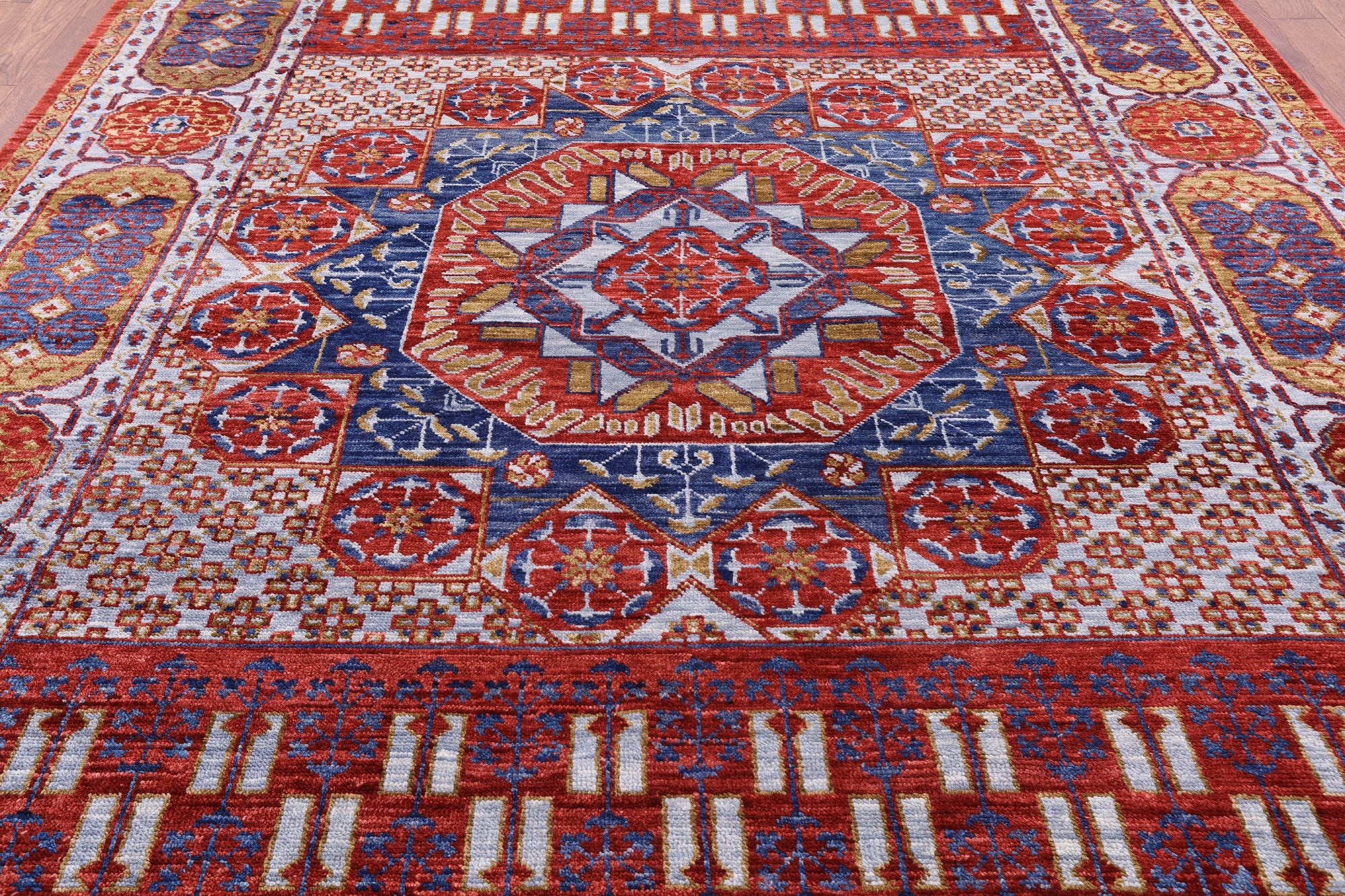 Originating in Cairo, Egypt, Mamluk rugs are prominent for their amazing ability to have extremely symmetrical designs. This creates a splendid mirror-like effect. The medallions can be seen as interlacing stars and polygons, with other geometric patterns surrounding. The colors commonly used for these traditional rugs are blues, rich reds, ivory, and greens.