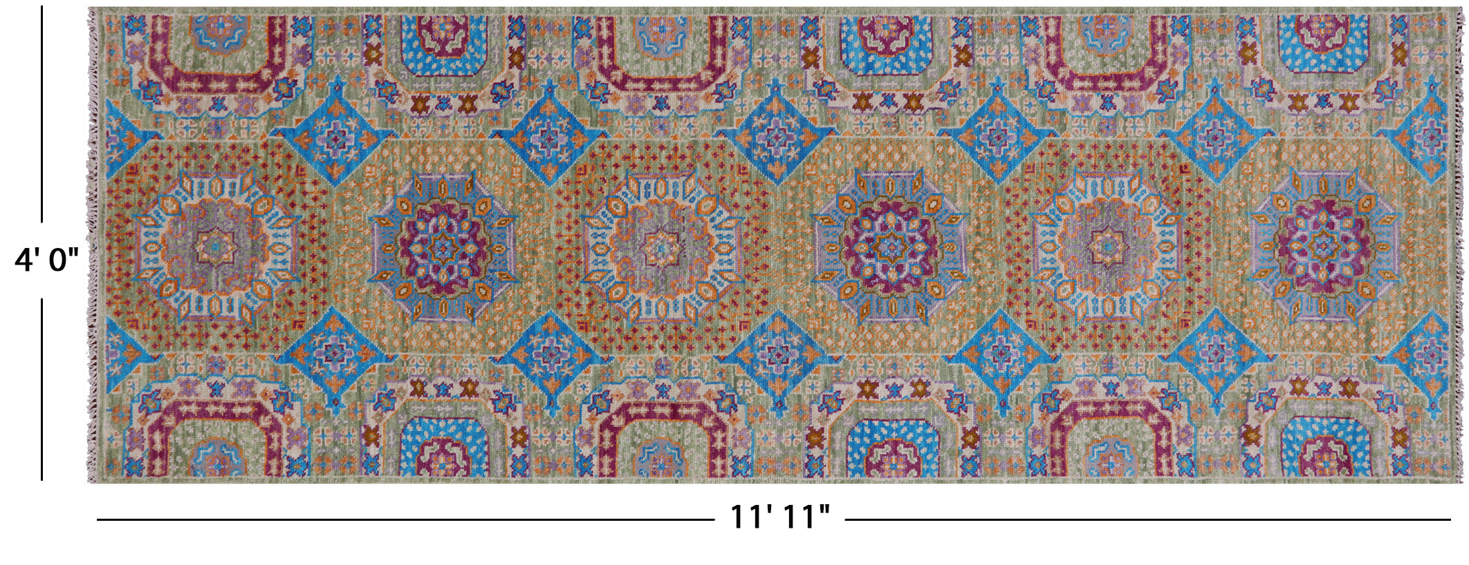 4' 0" X 11' 11" Runner Mamluk Hand Knotted Wool Rug - Q20277