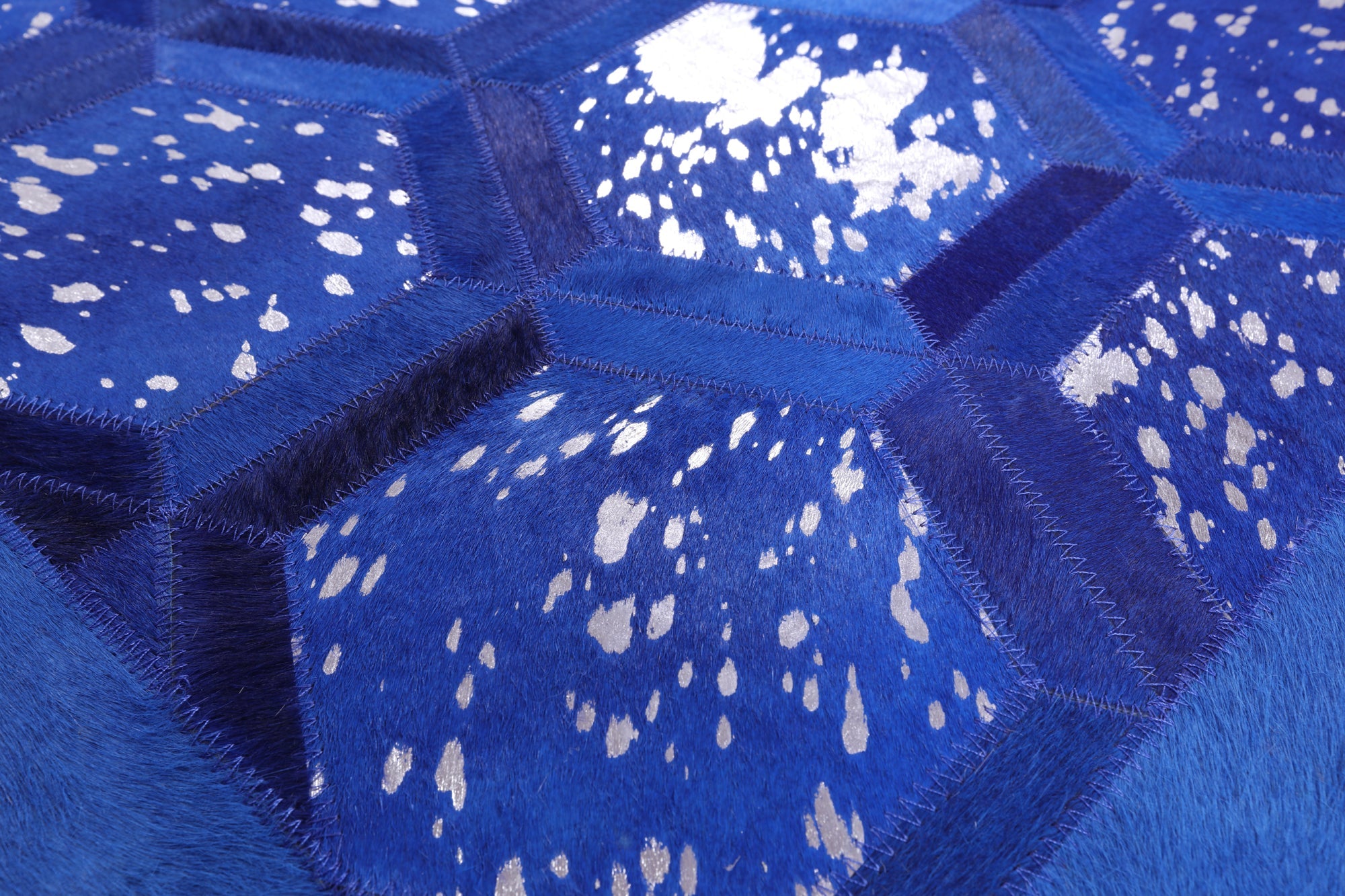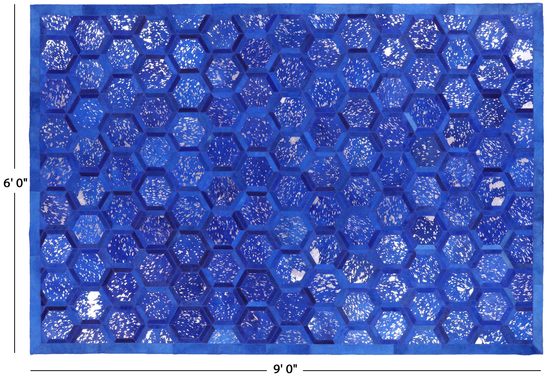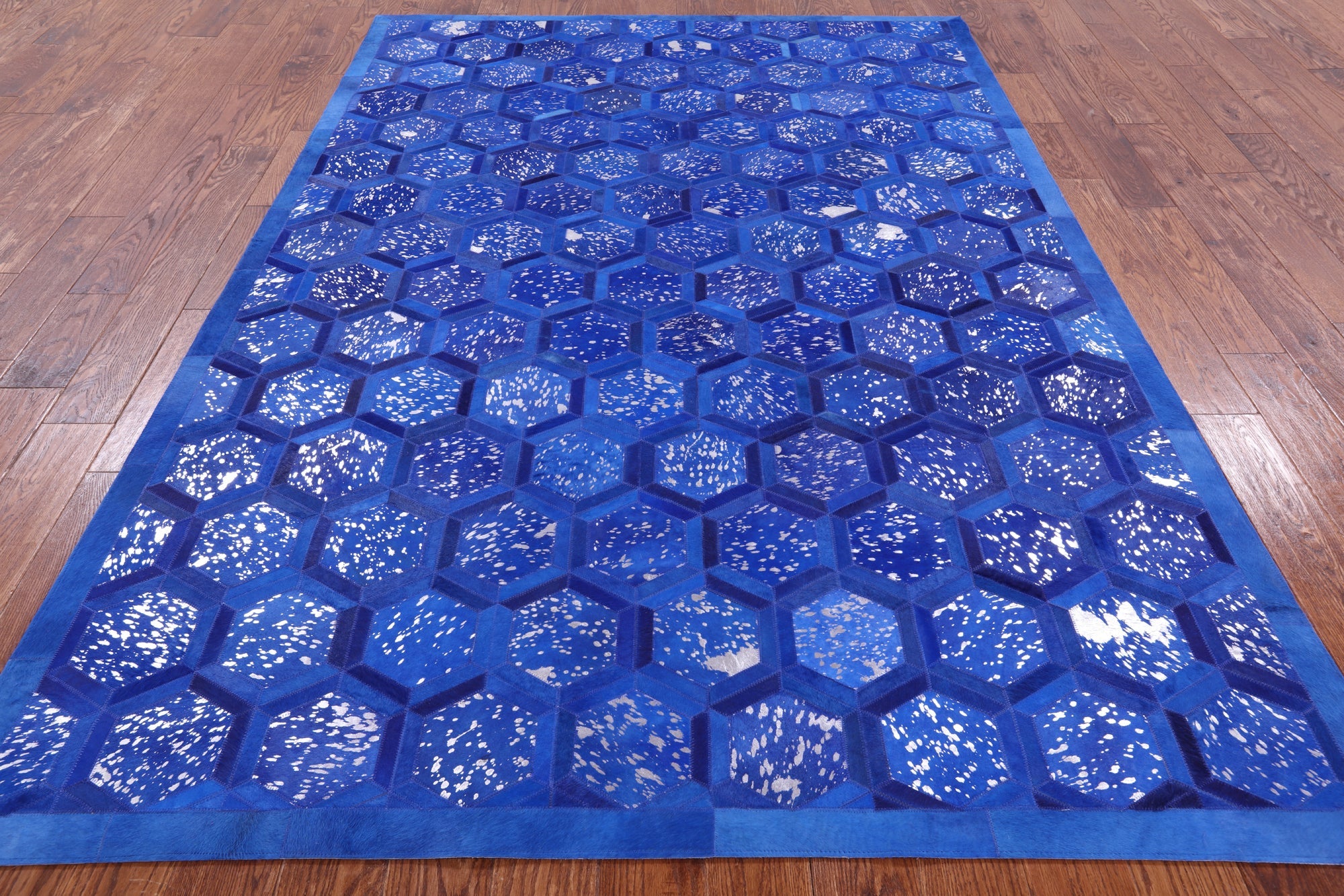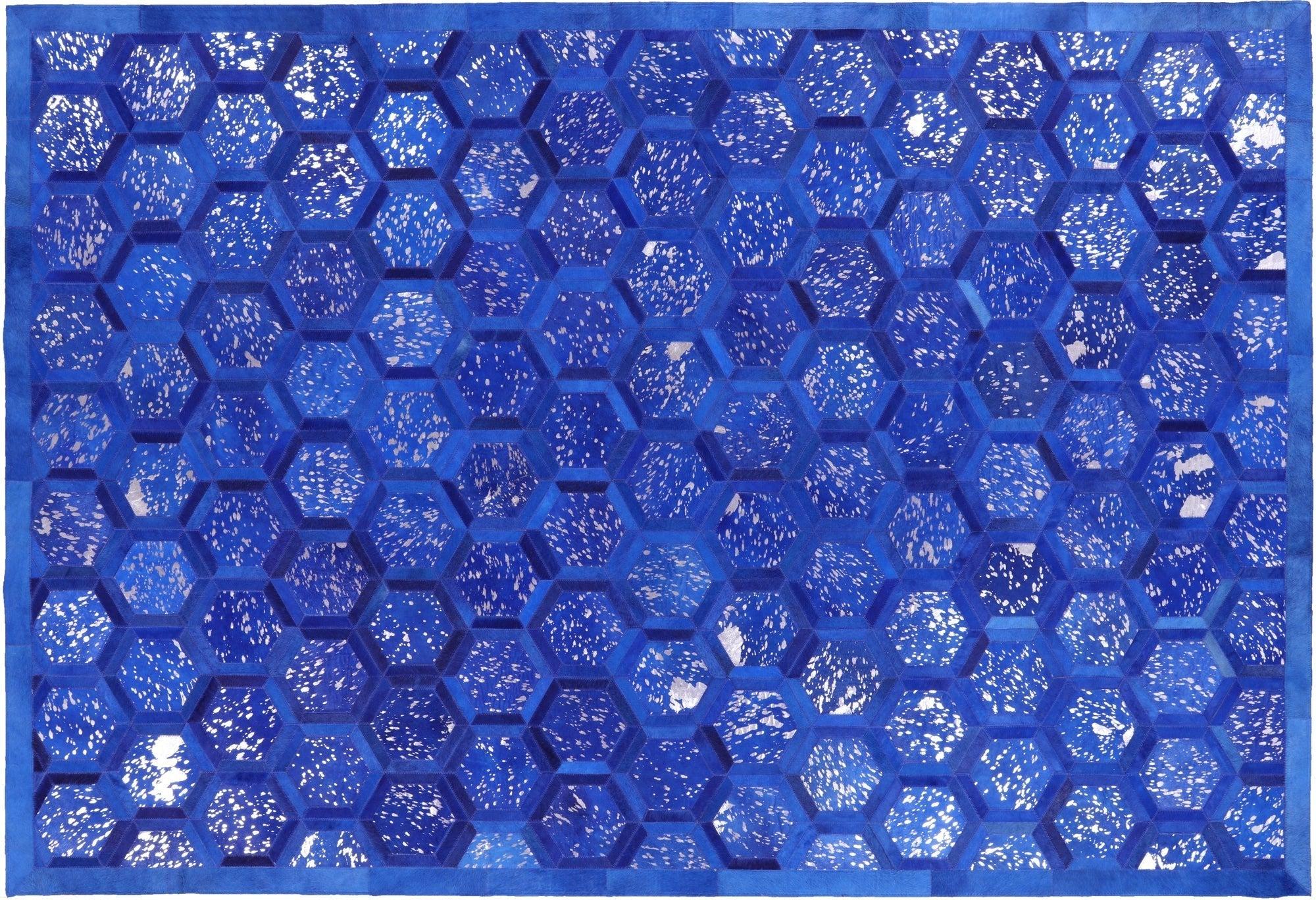 Blue Overdyed Metallic Silver On Blue Cowhide Hand Stitched Area Rug 6' 0" X 9' 0" - Q2644
