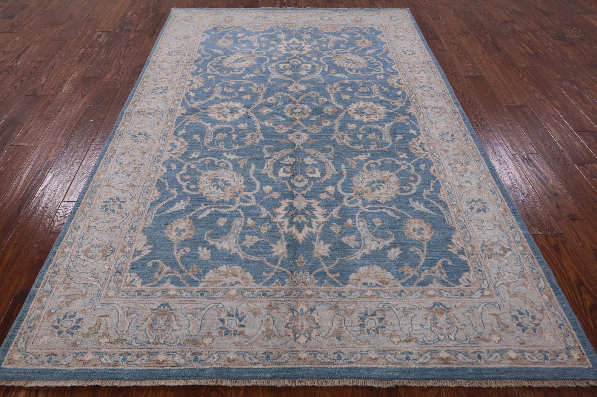 Blue 6' 1" X 9' 1" Turkish Oushak Hand Knotted Area Rug - P4597 is backordered and will ship as soon as it is back in stock.
