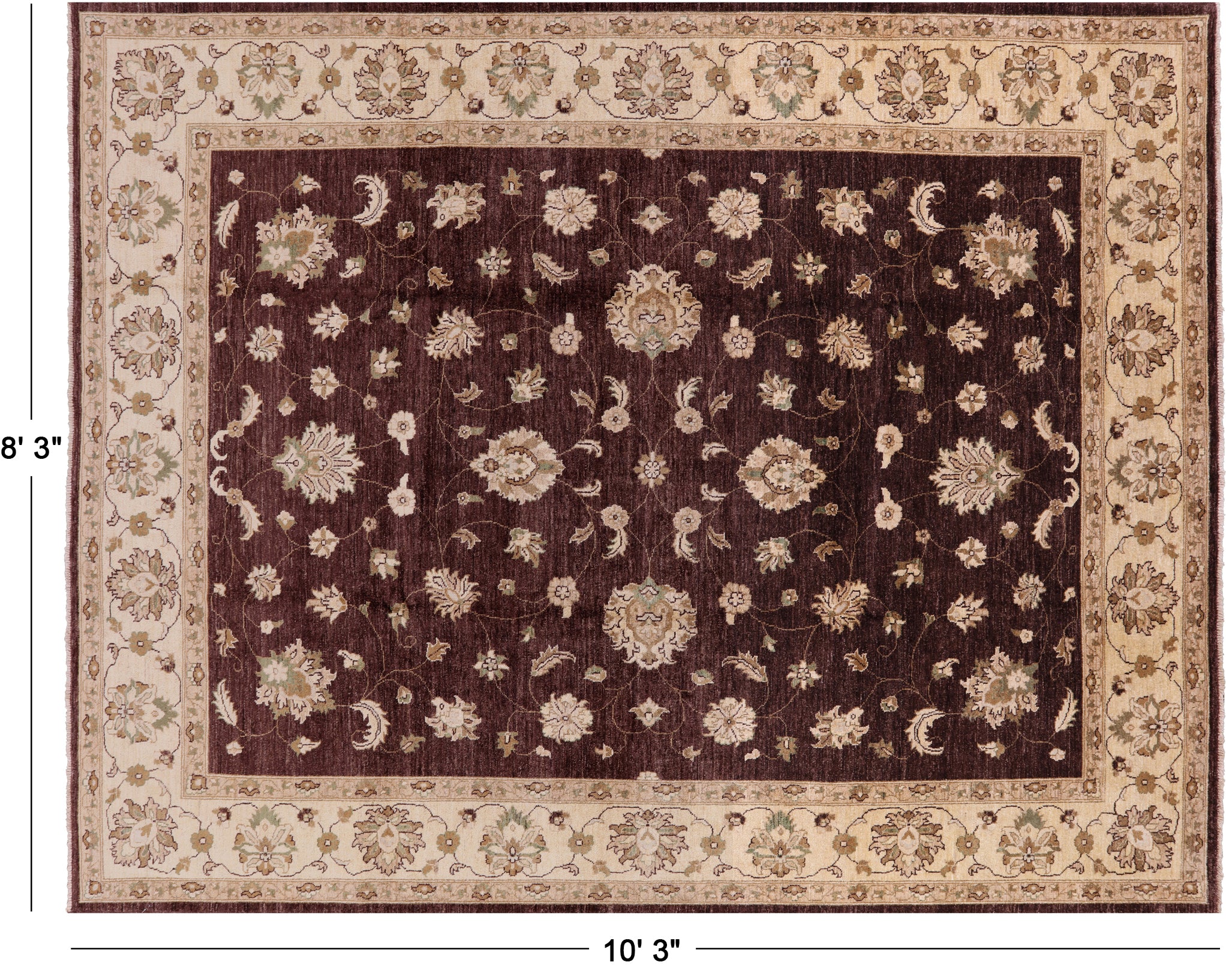 Brown 8' 3" x 10' 3" Peshawar Hand Knotted Wool Rug - H9383